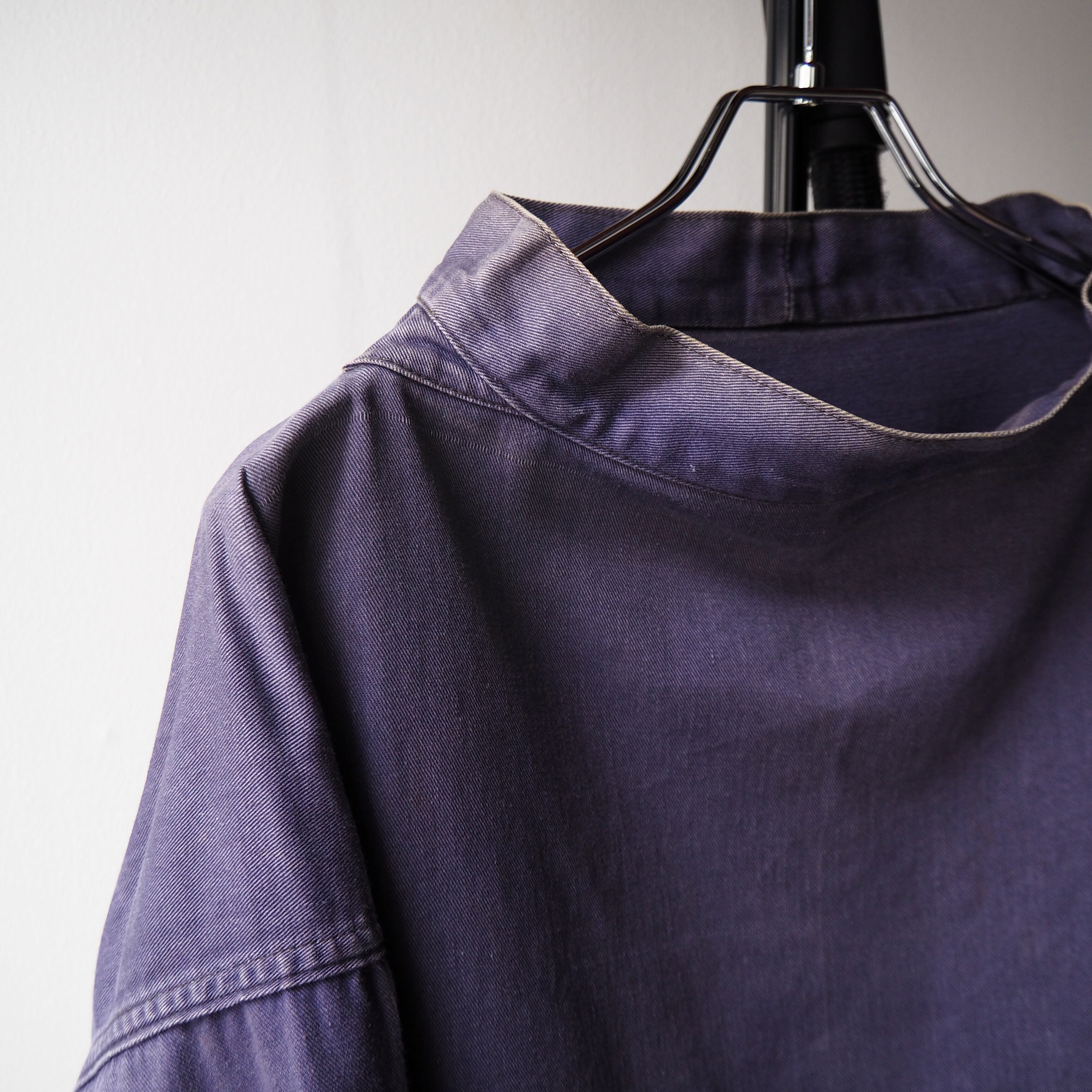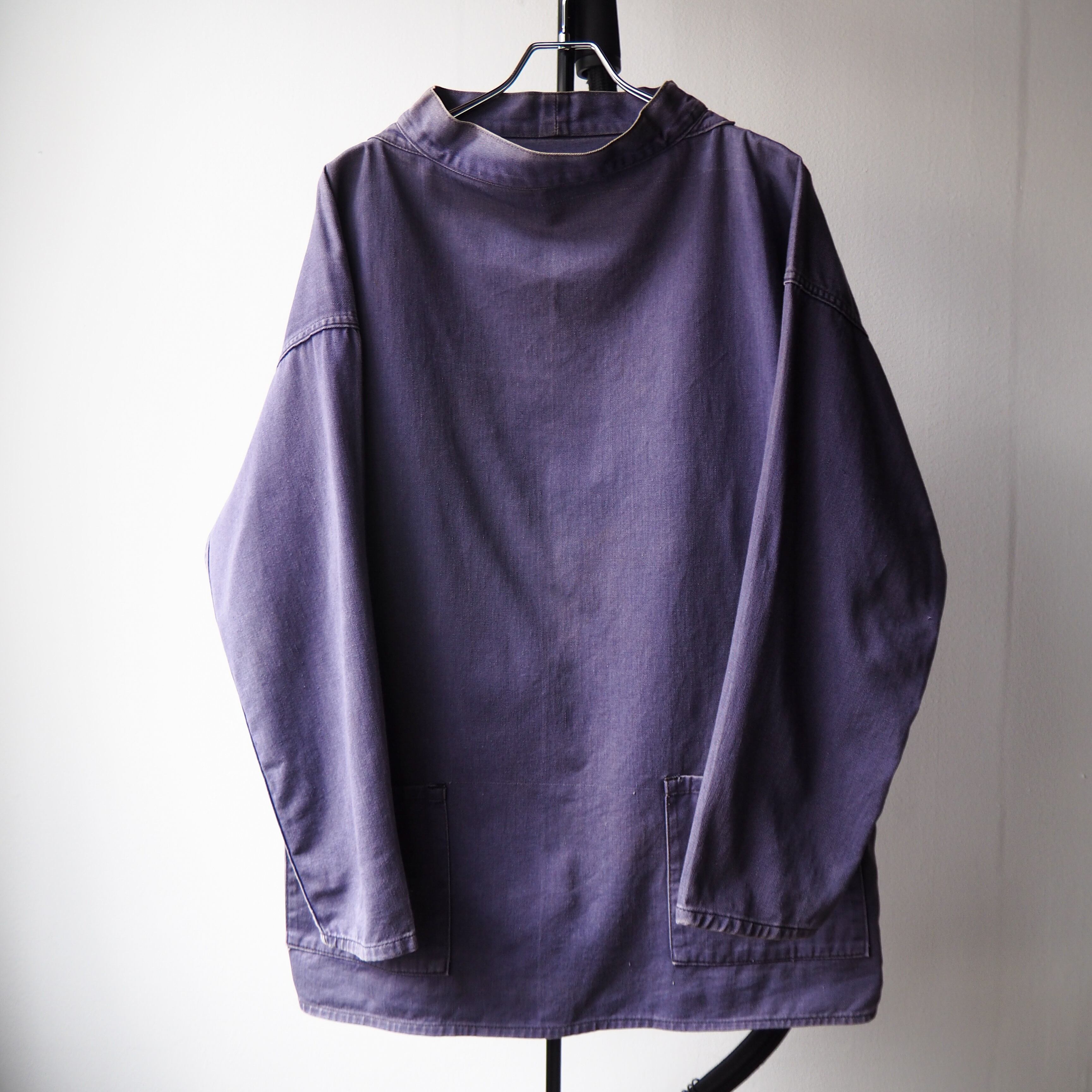 モックネック仕様の首周りに前見頃と後ろ見頃が均等に寸断、構築されるこちらのスモックは元々イギリス海軍に着用されていたスモックではございましたが、ウェールズなどの漁業が盛んな沿岸部では漁師、フィッシャーマンたちのワークウェアとして古くから親しまれてきた歴史を持ちます。