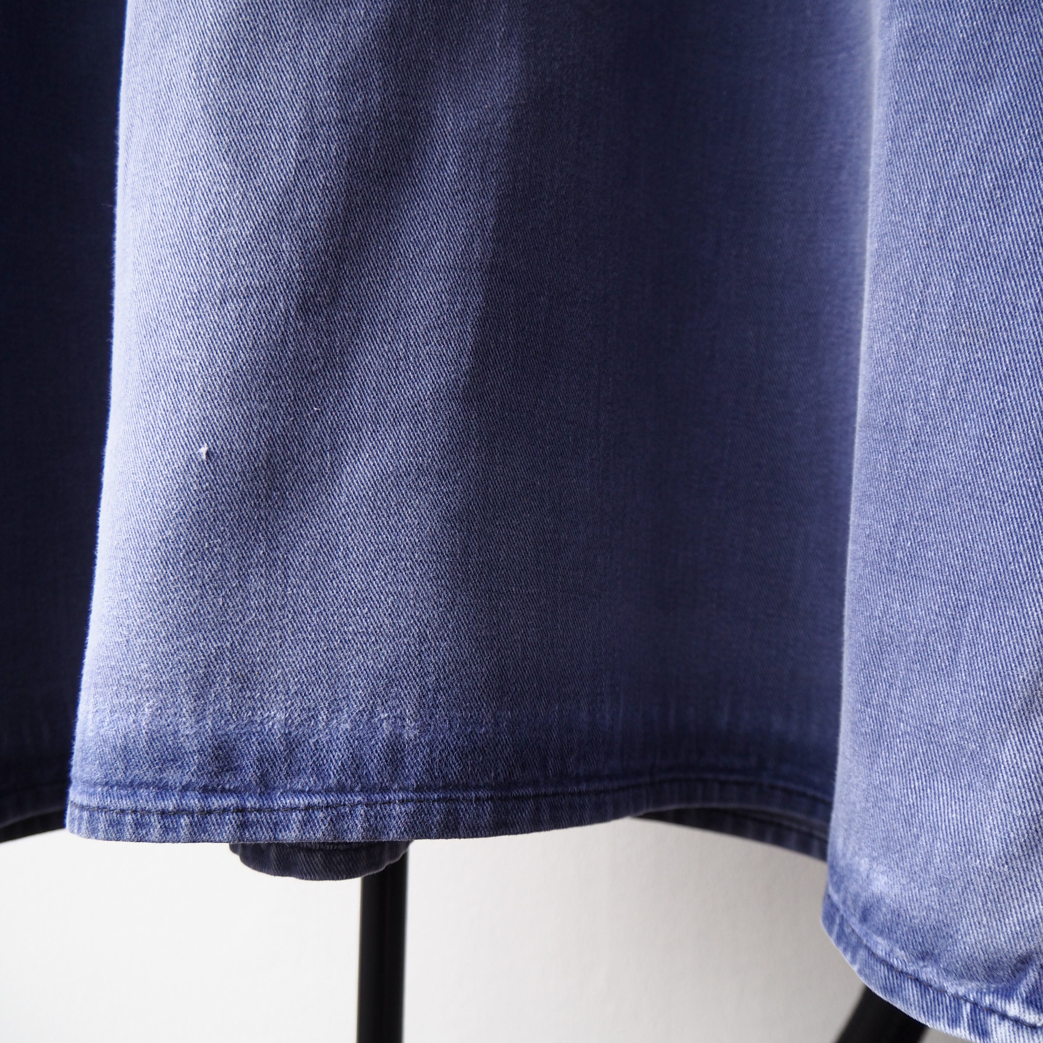 ボディにはやや起毛がかった、ふわふわと心地のいい肌触りのコットン100%のデニム生地を採用。裾部分の経年によるコントラストが絶妙です。