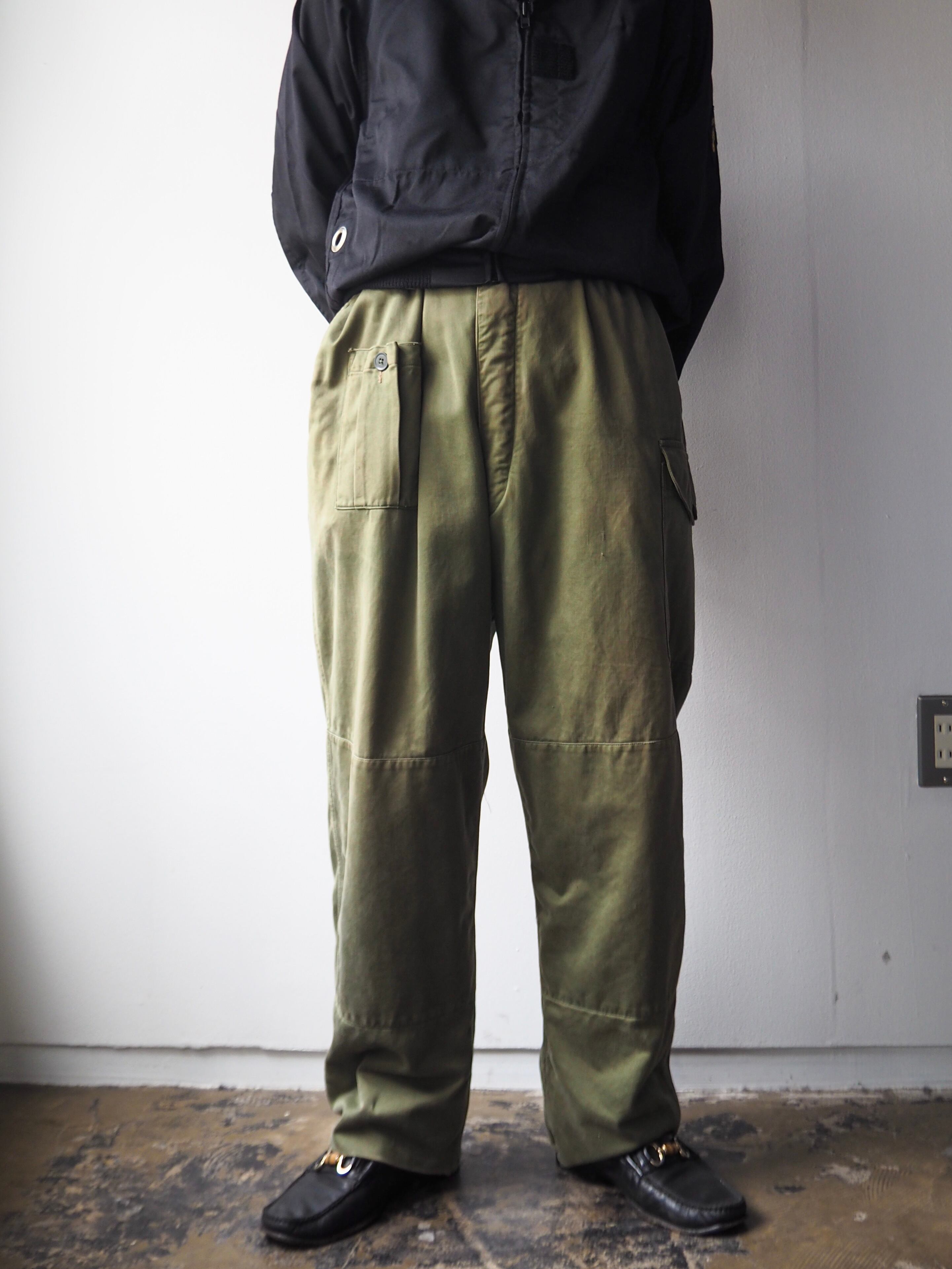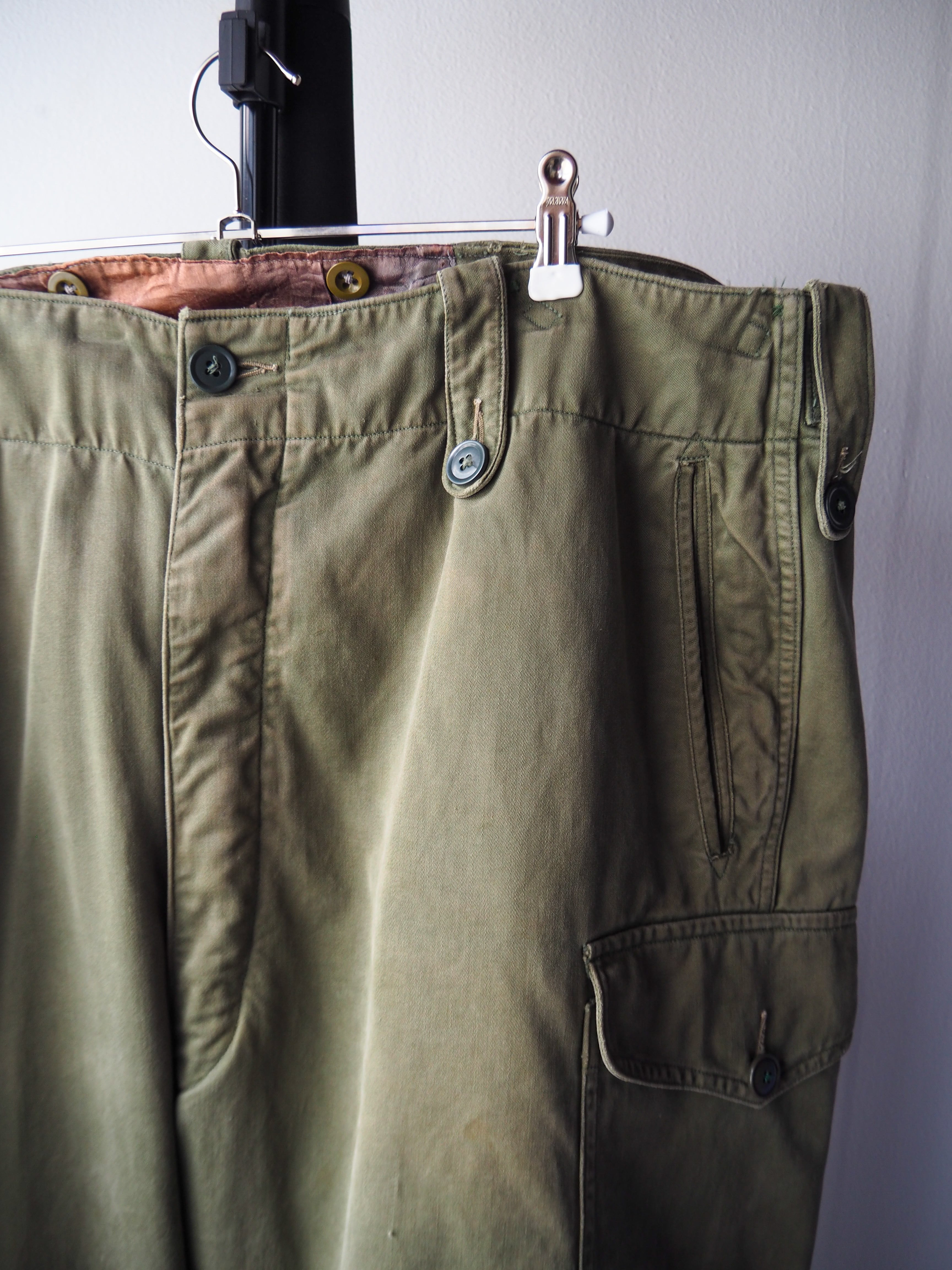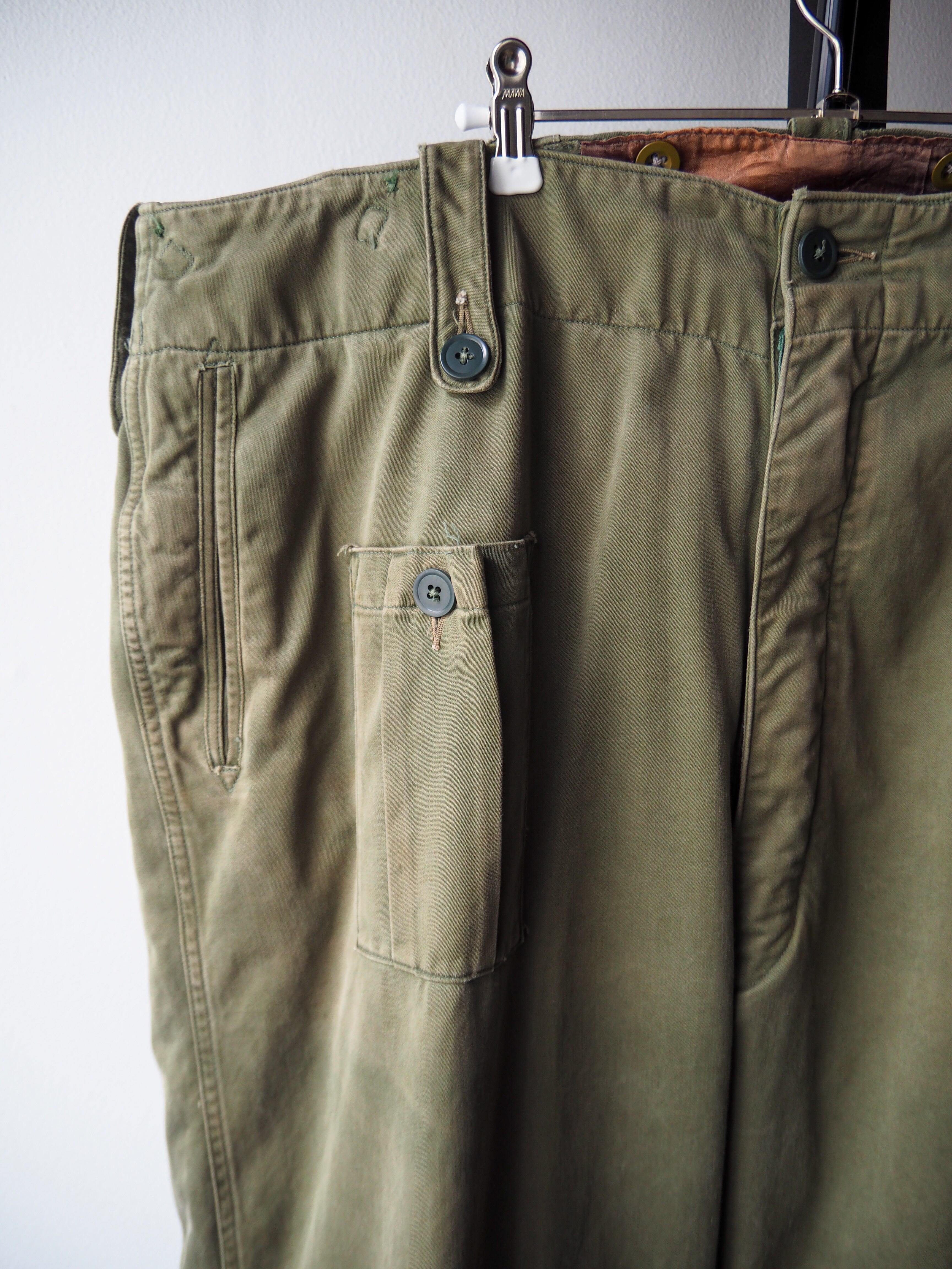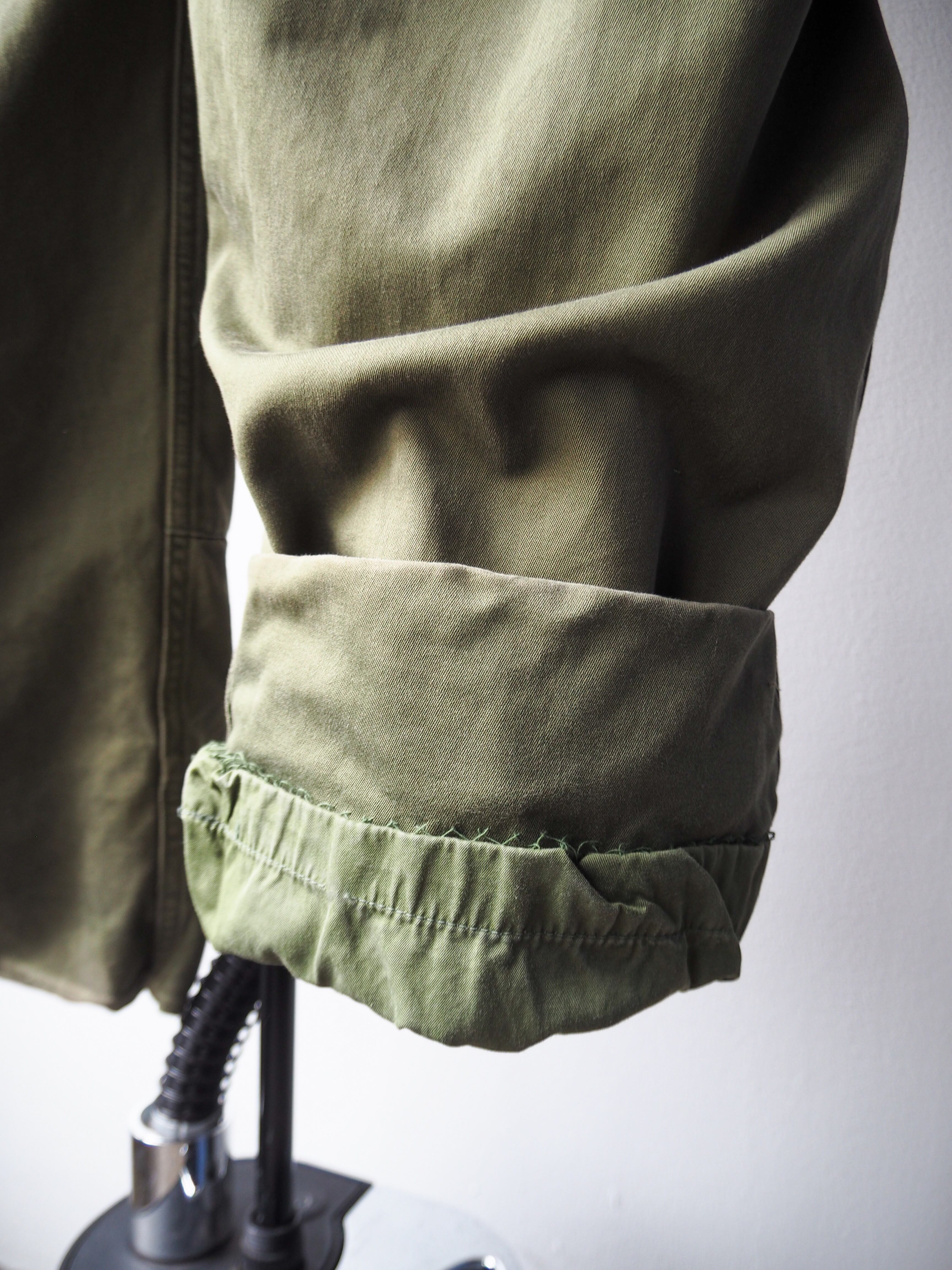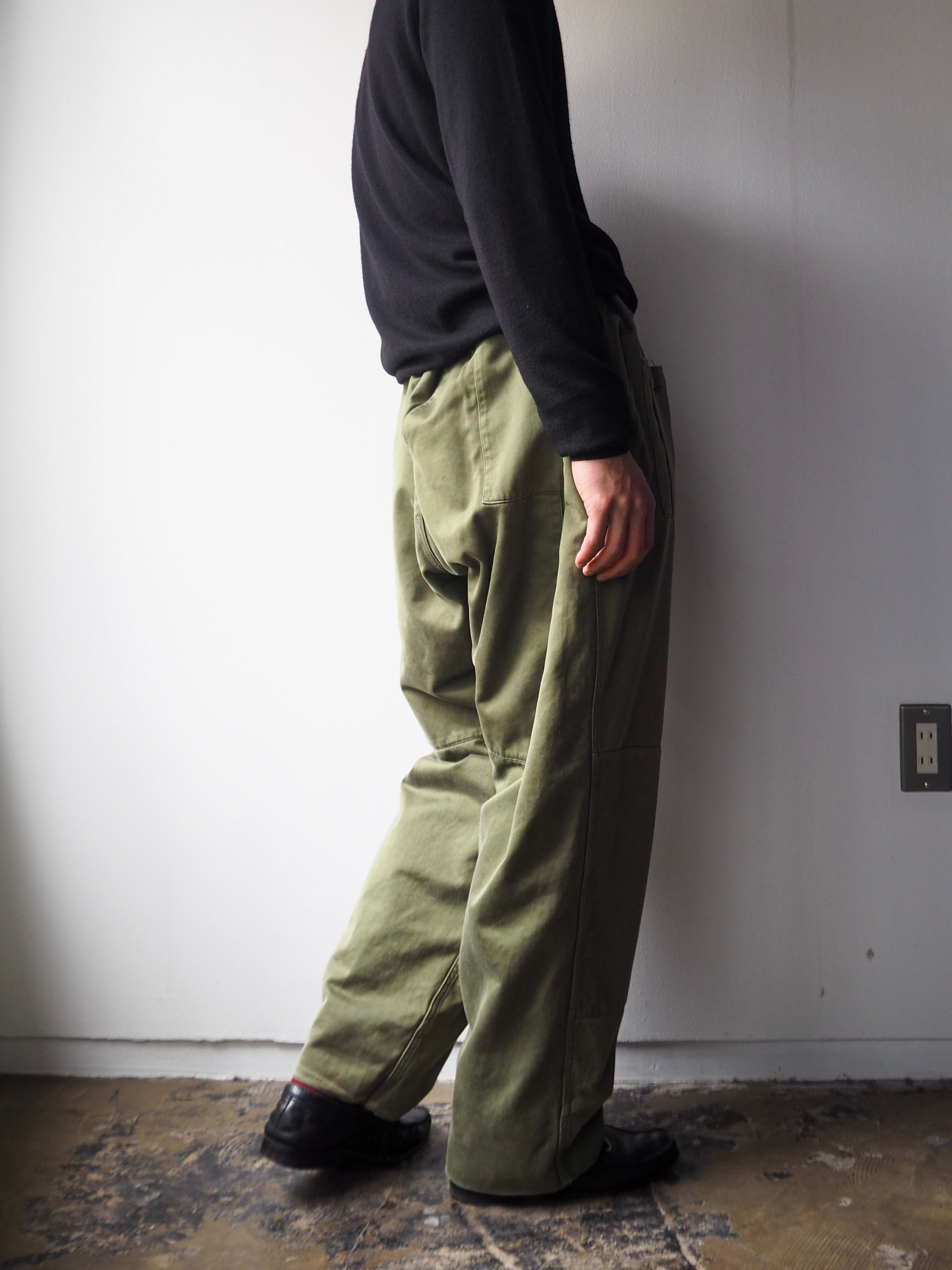 裾先にかけてややテーパードのかかるシルエットライン。軍モノならではのラギッドな着合わせは勿論、紺ブレやテーラードジャケットなどフォーマルな合わせも抜群にハマる優秀な一本です。