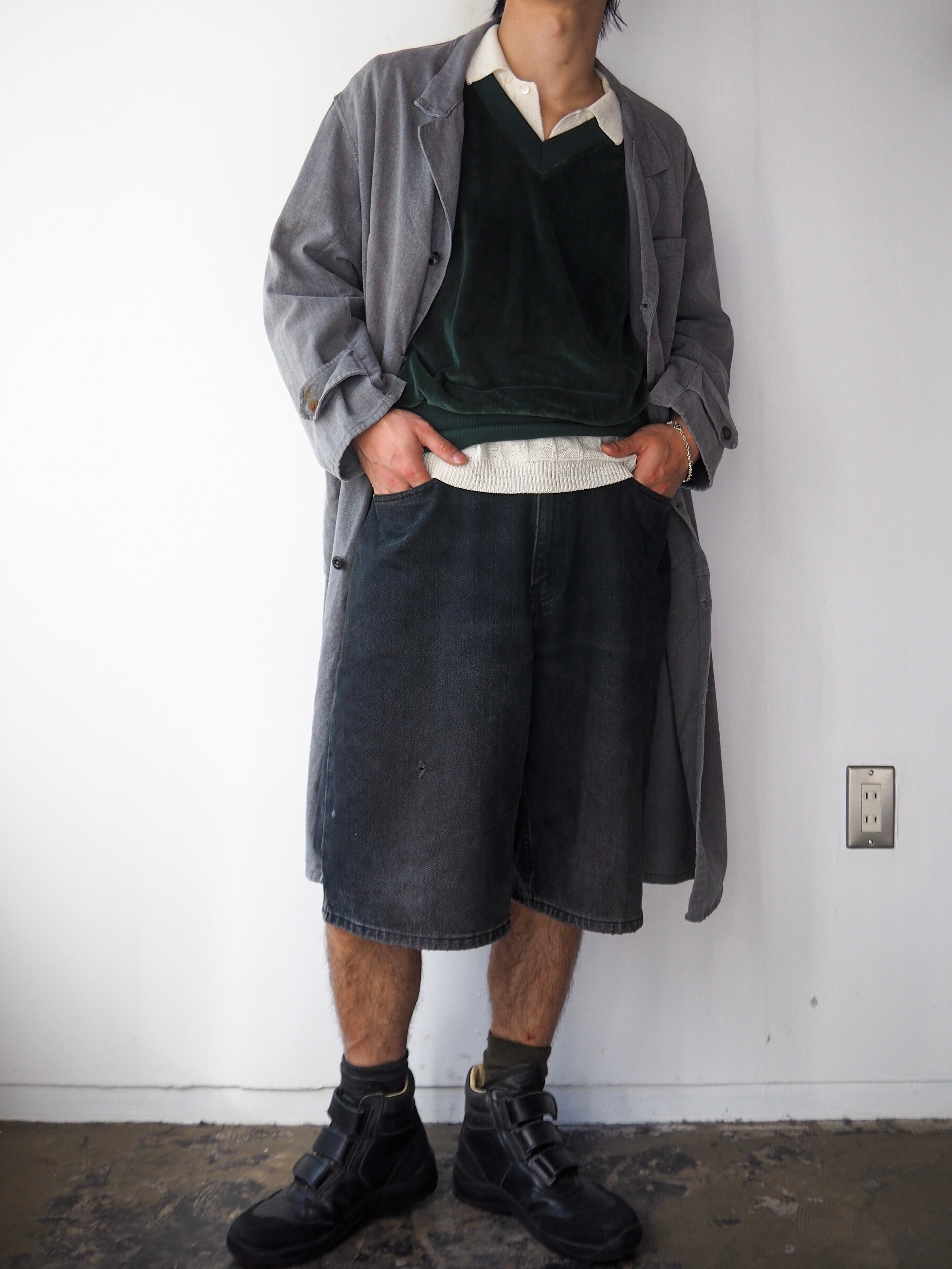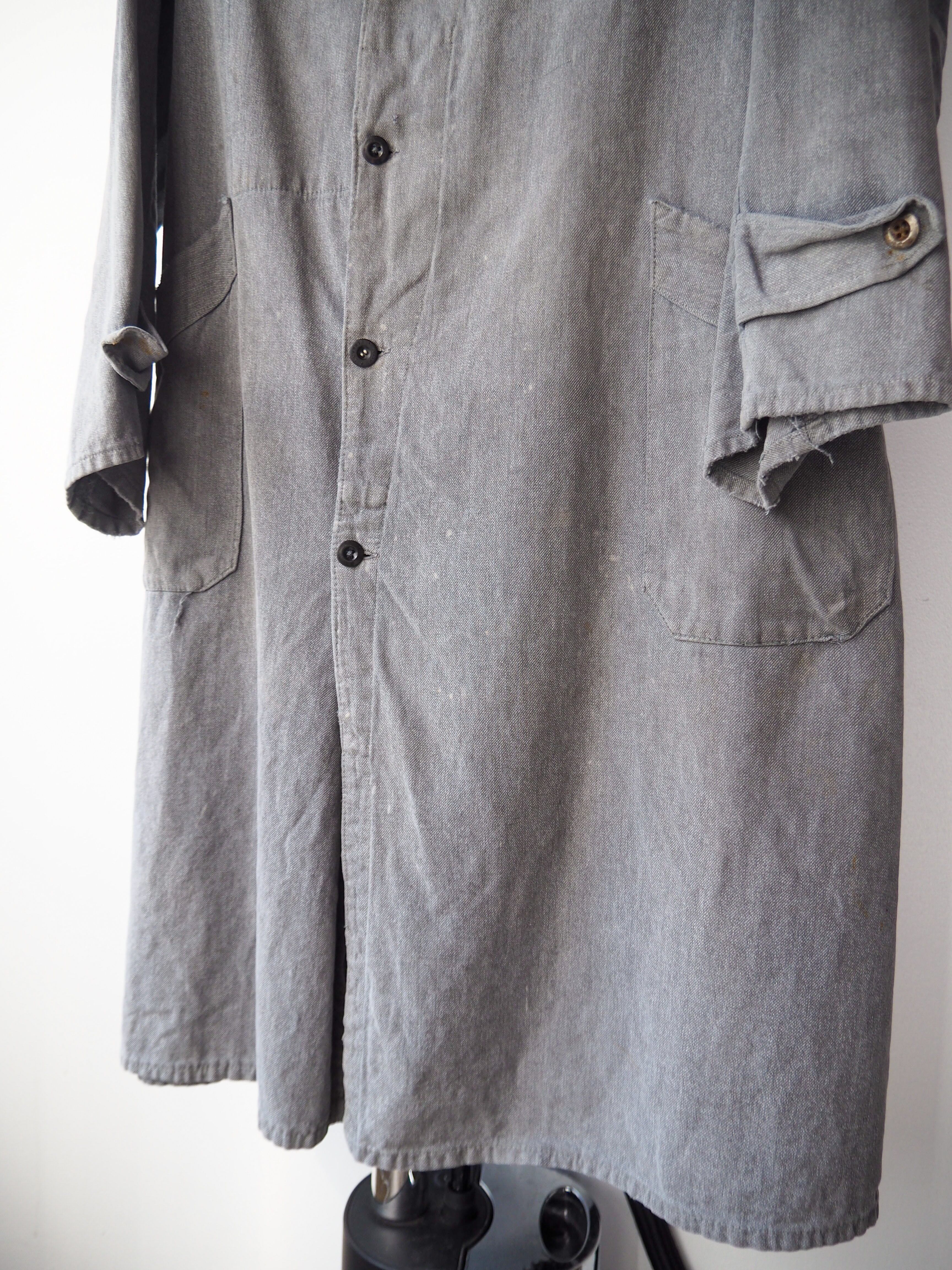 フロントを右にずらしたオフセット仕様の前合わせが珍しく、各所の手仕事によるダーニング、袖ベルトに付属するメタルボタンもまたヴィンテージ好きの心を躍らせるディティールですね。