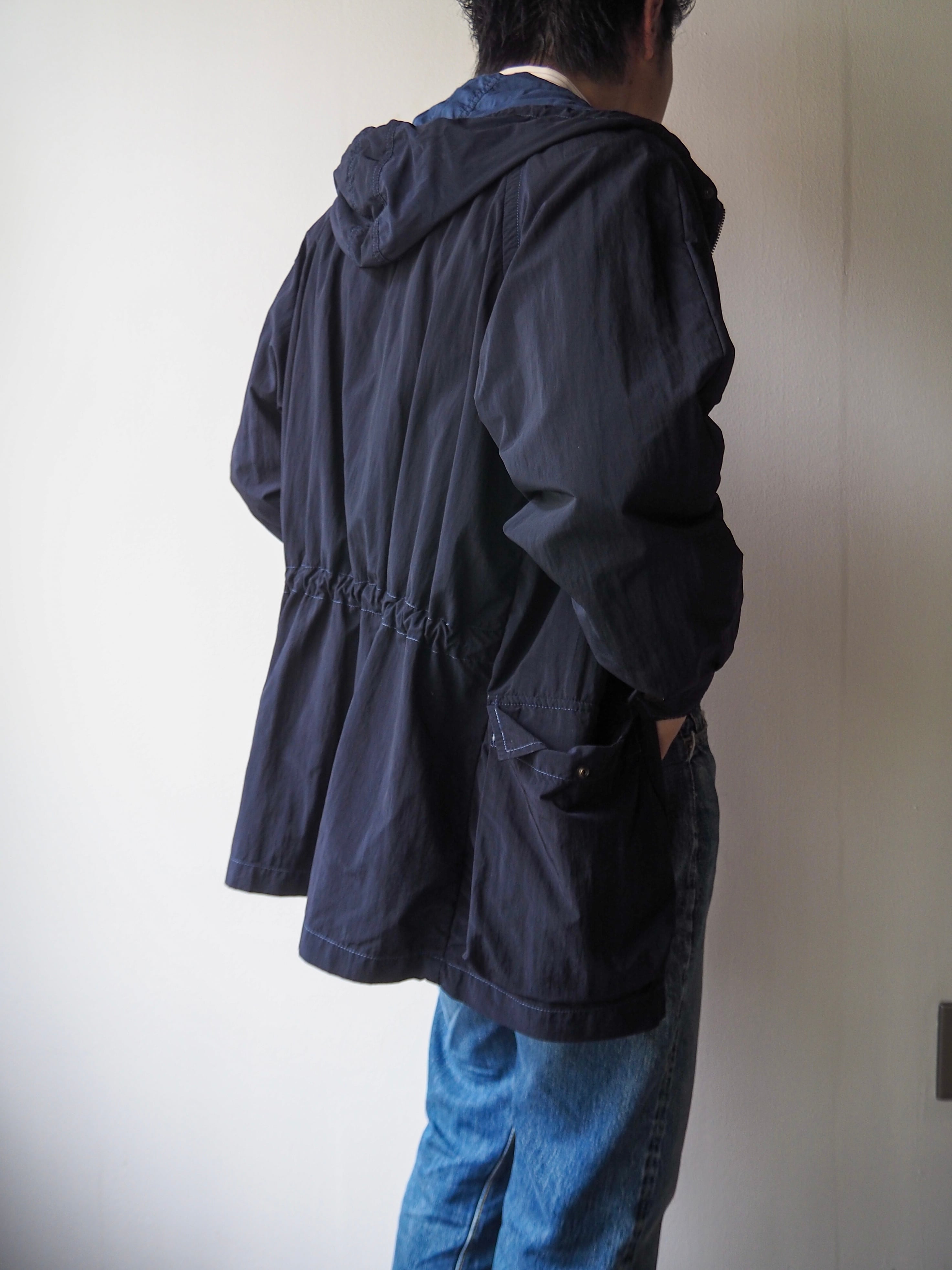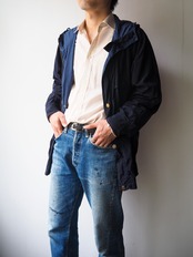 フィニッシュのガーメントダイがもたらす艶やかでしっとりとした質感に表地と裏地のい素材間のコントラストが最高にクール。