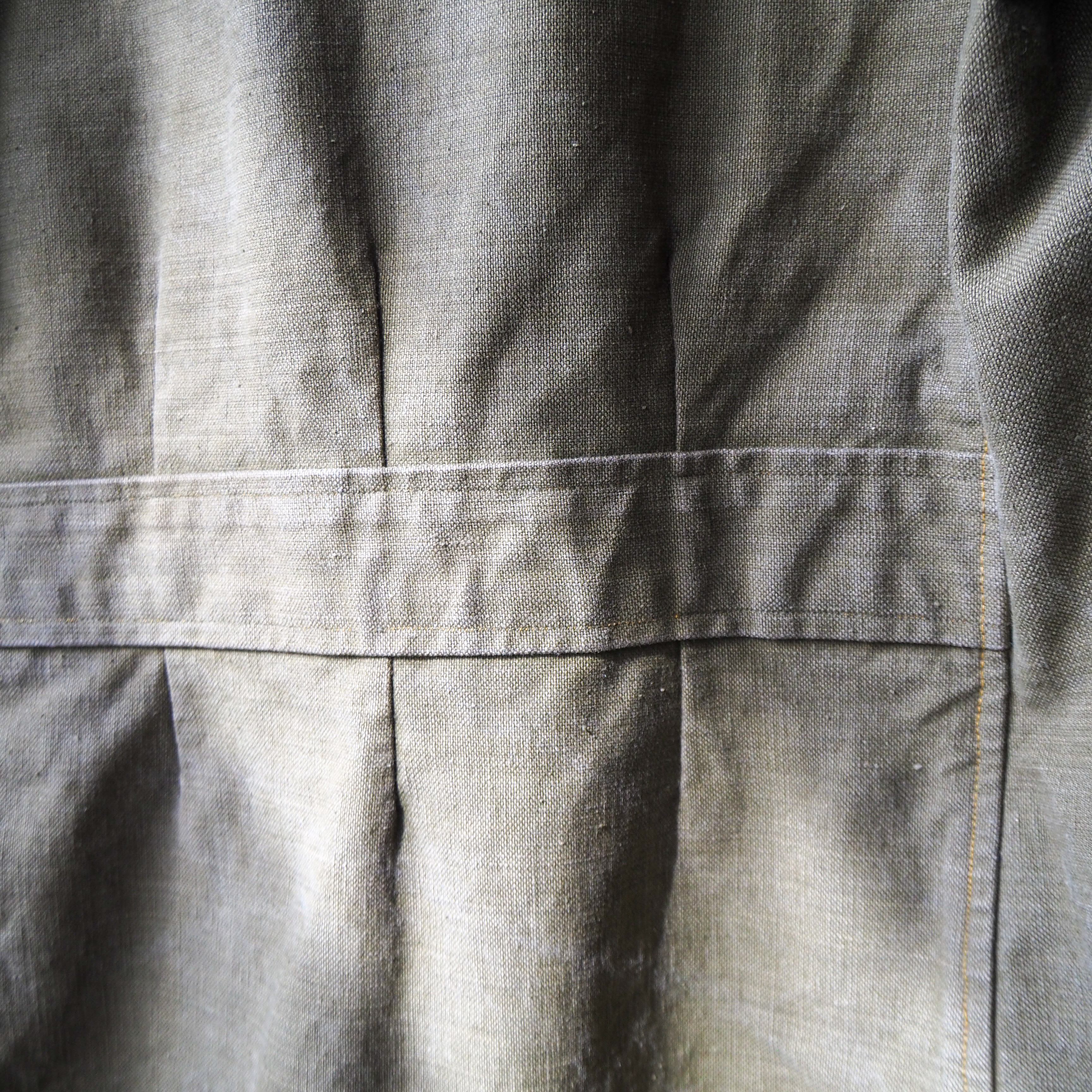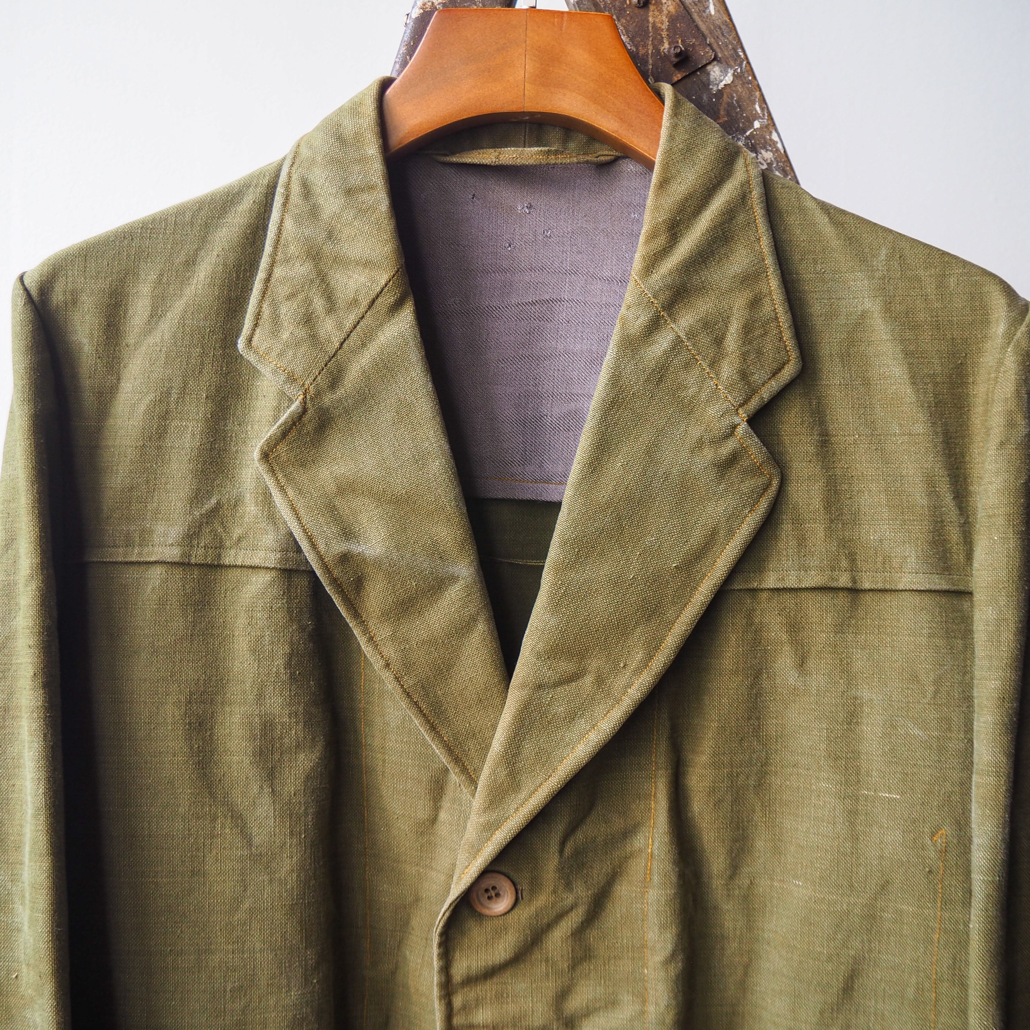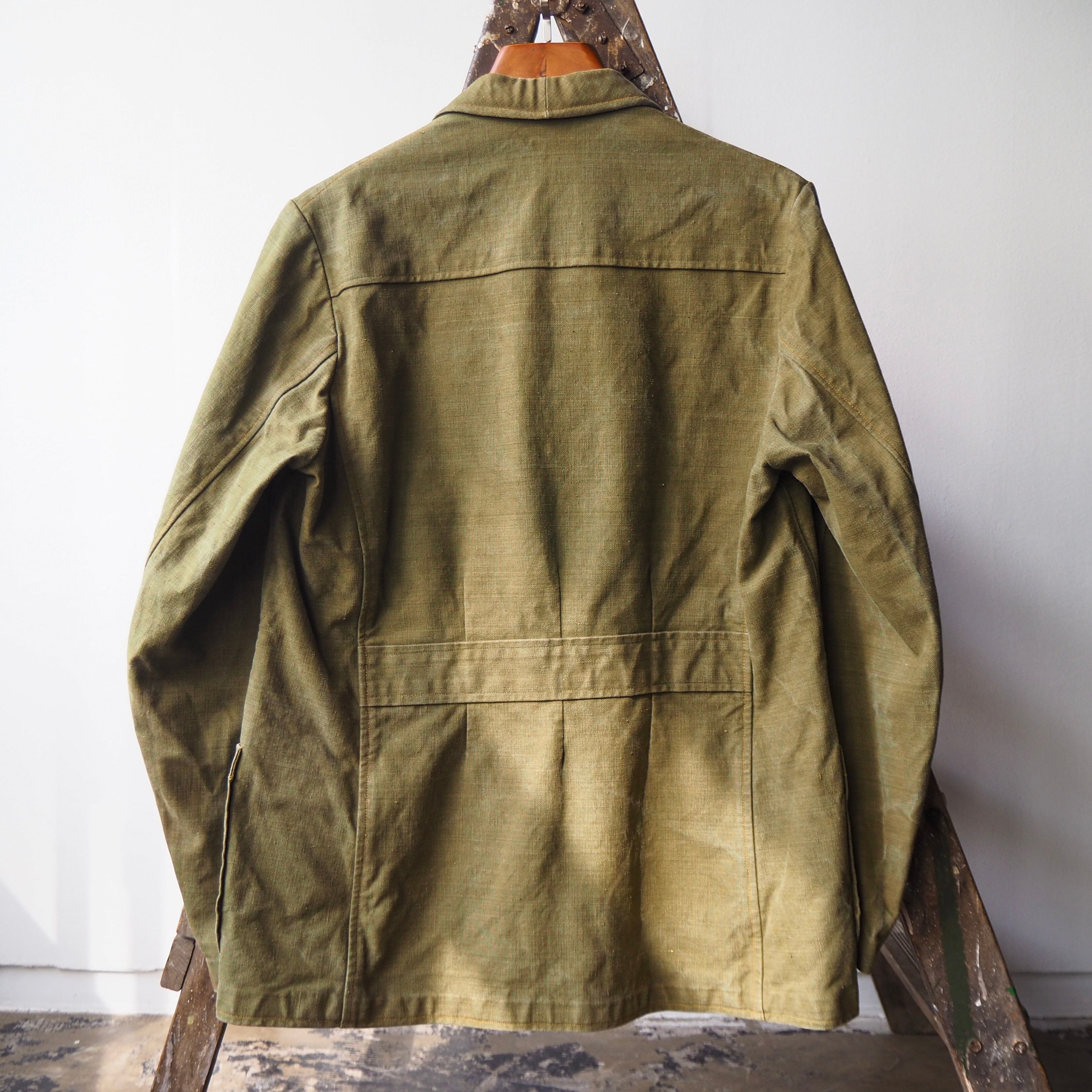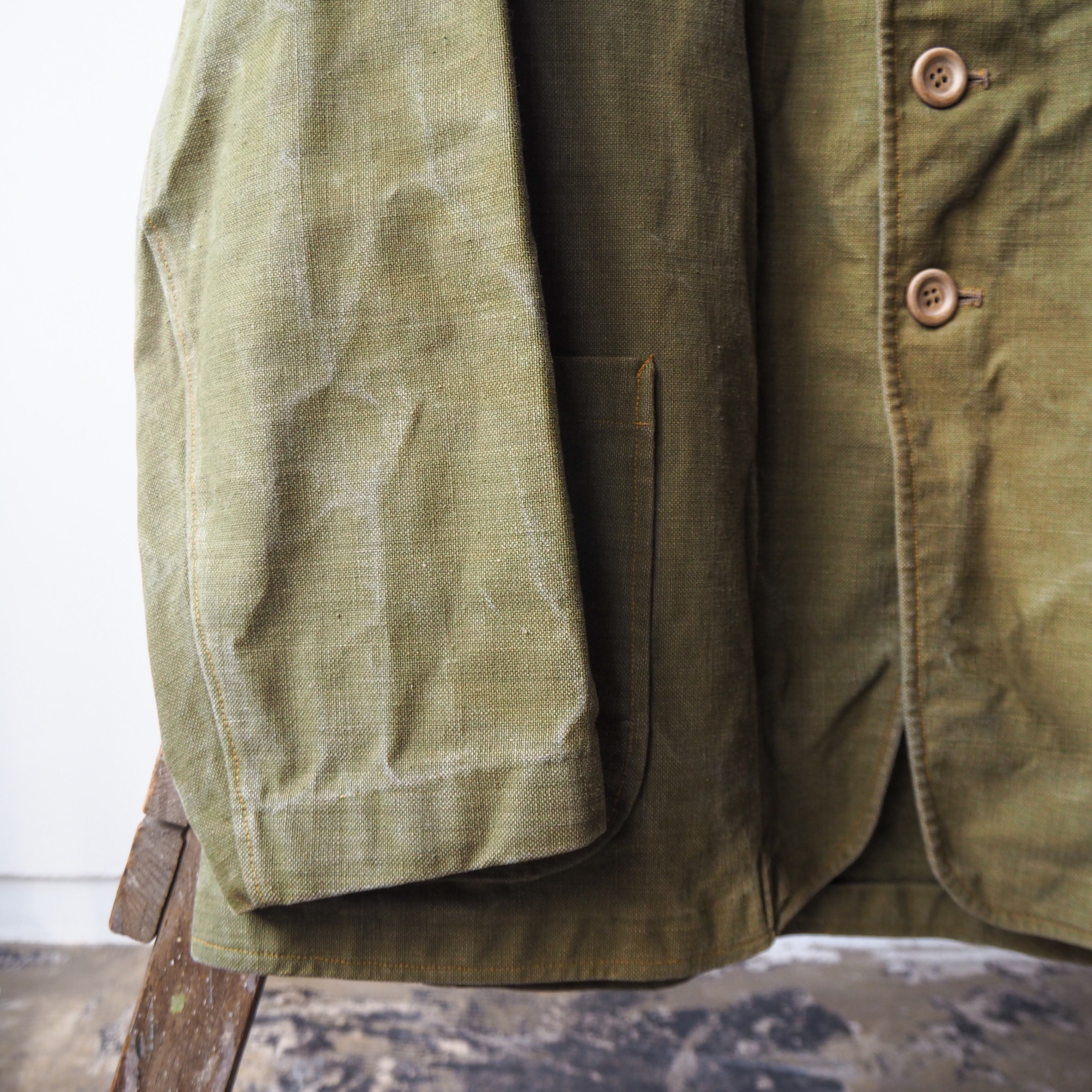 良い塩梅にアタリの出たガッシリと頑強なキャンバス生地にフレンチテーラリングの意匠。良いですね。これから着用していくに従って更に経年変化が増していくと思います。