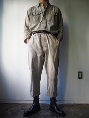 通常やや起毛感のある厚手のコットン素材が使用される"M-35"シャツですがこちらはハリのある質感の薄手の平織りコットン素材が採用されたかなりの変わり種。