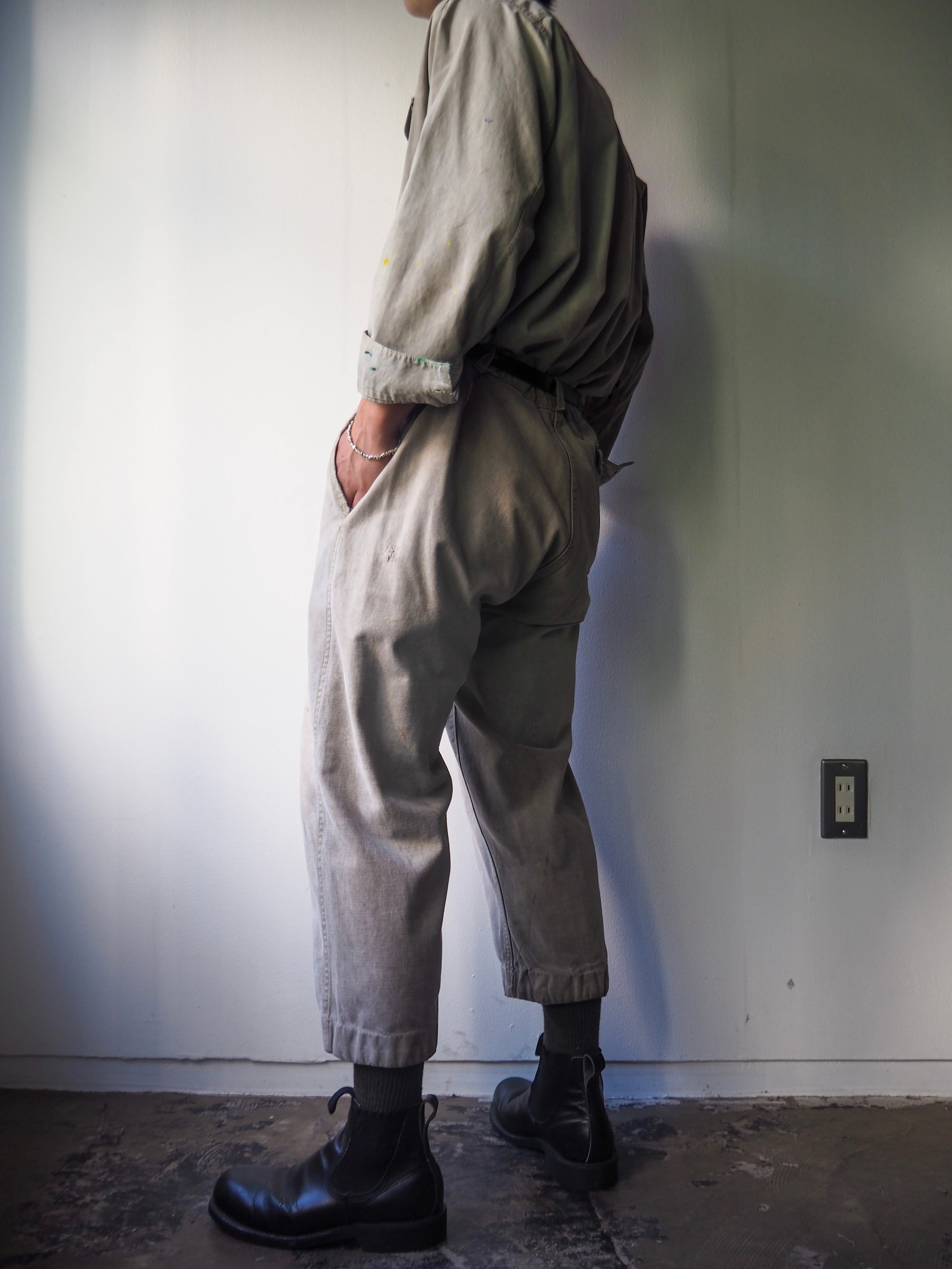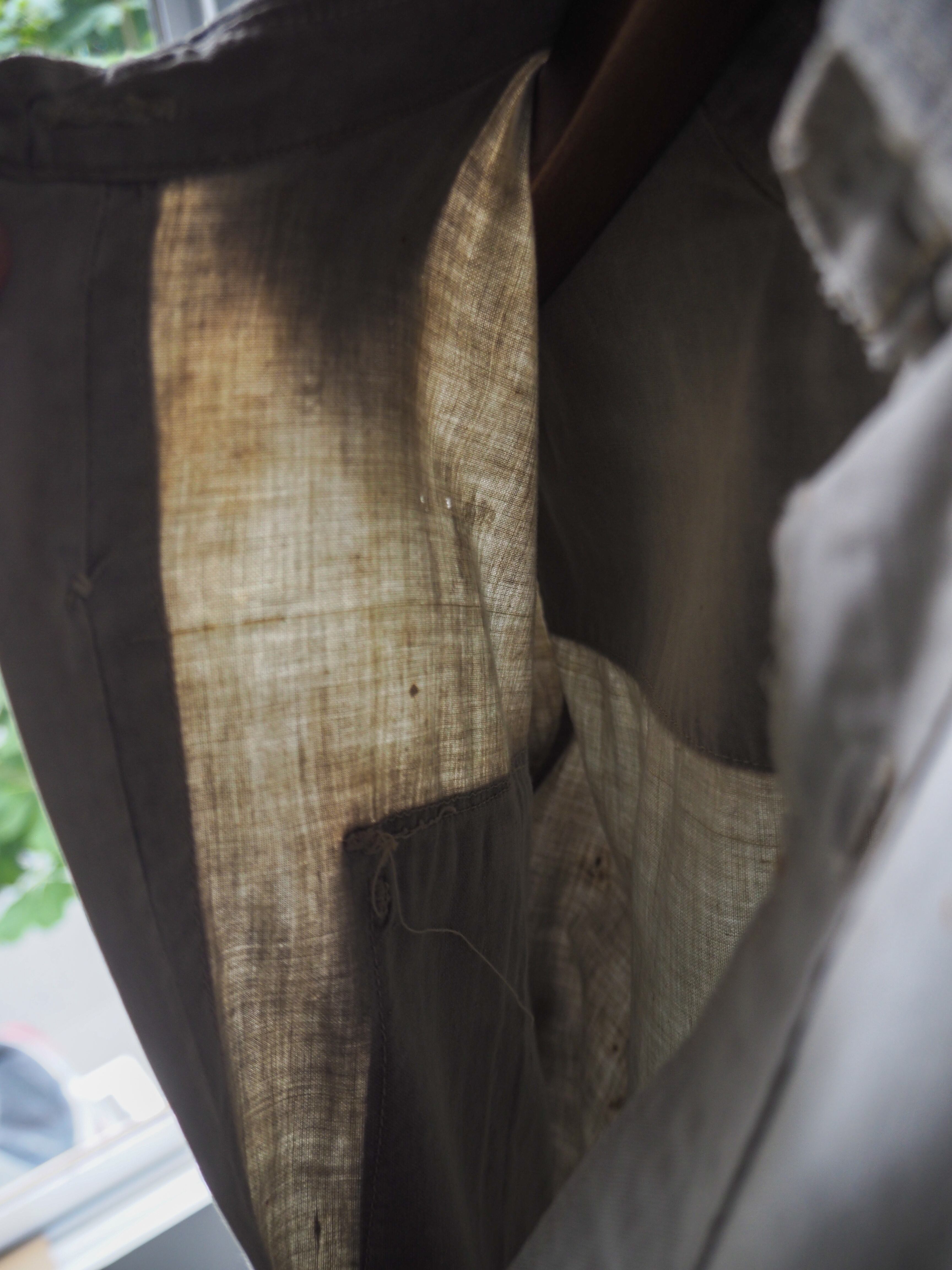 特に、タックインされていたであろう箇所と露出していた箇所の色残りのコントラストが強烈でたいへんにアルチザンで、モードな表情。