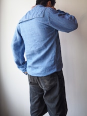 ボディにはリネンの中でも特に繊維が太くハリのある質感が特徴のラミーリネンファブリックを採用。リネン素材特有の熱伝導率の高さから真夏でもヒンヤリと涼しくご着用して頂けます。