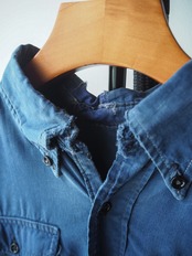 鮮やかに染め上げられたインディゴブルーが美しく、襟裏の継ぎ、経年によるヤレ、淡く退色した感じもたいへん素敵です。