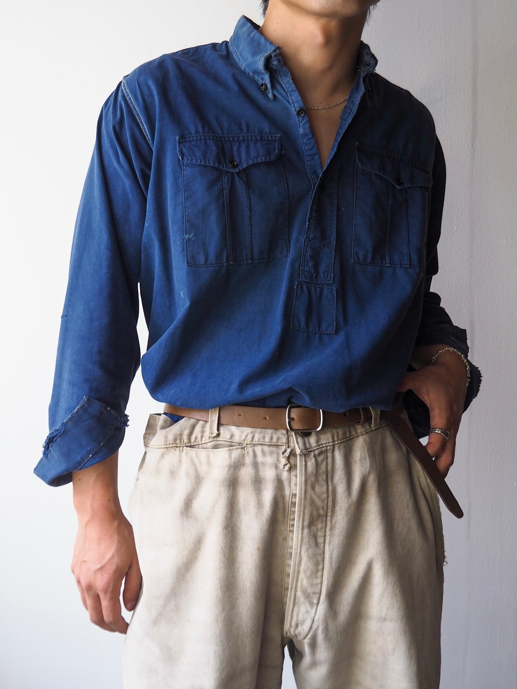 1930s French Civilian Army Indigo Blue "M-35"type Pullover Shirts