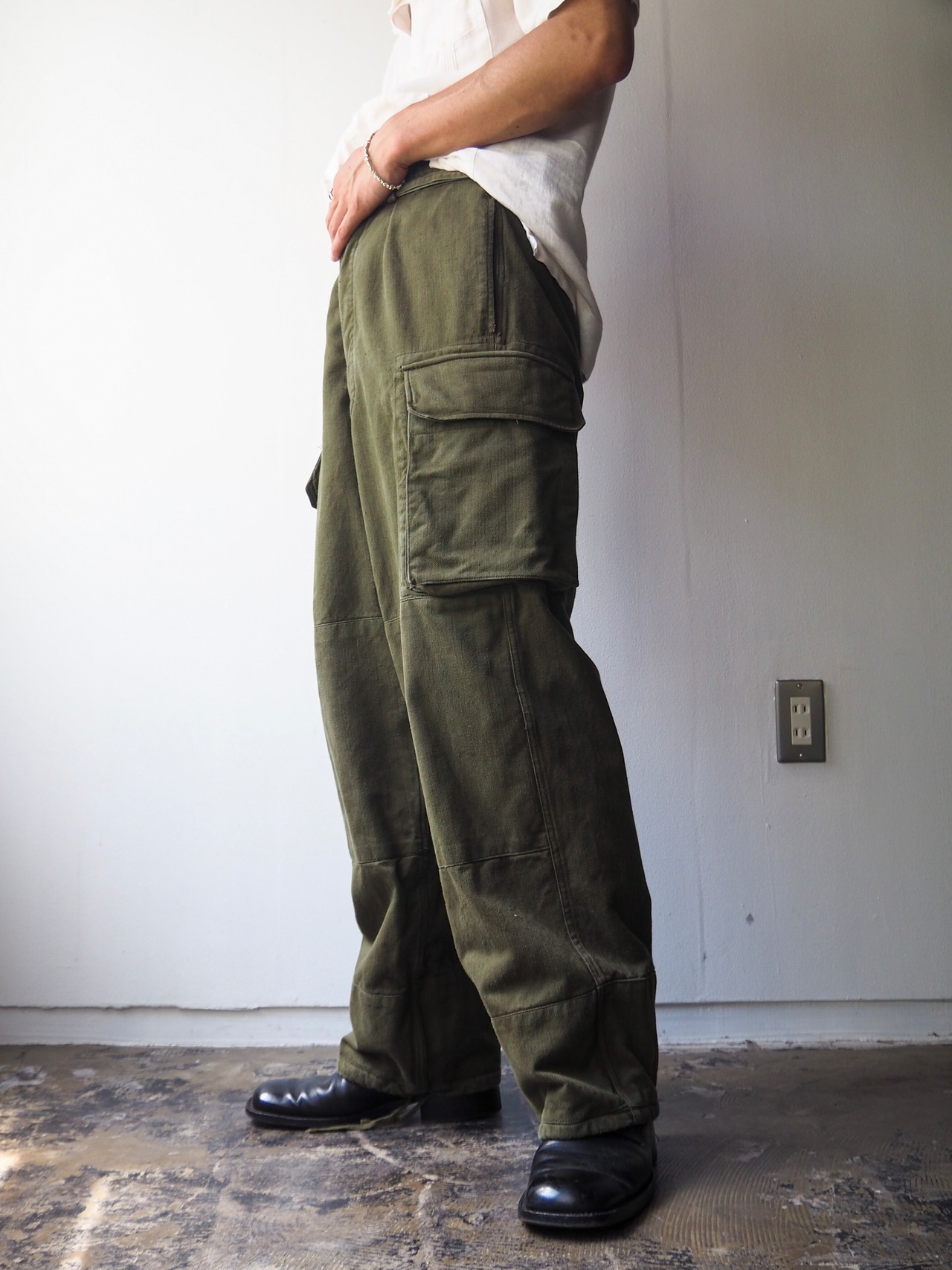 1960年代頃に西ドイツ軍 "Bundeswehr" に支給されていたカーゴパンツ。希少なデッドストックコンディション、初見のベルト付きで見つかりました。