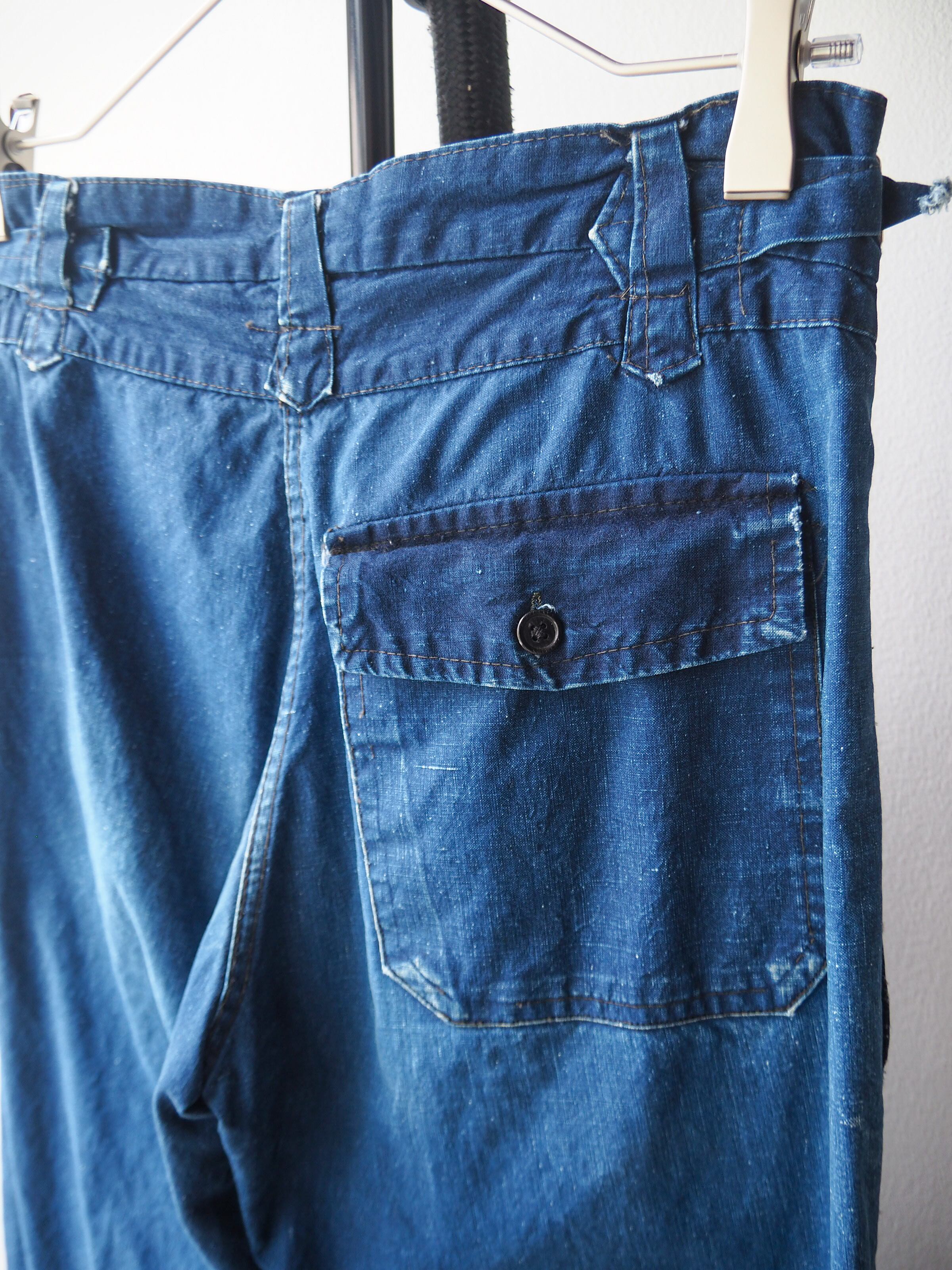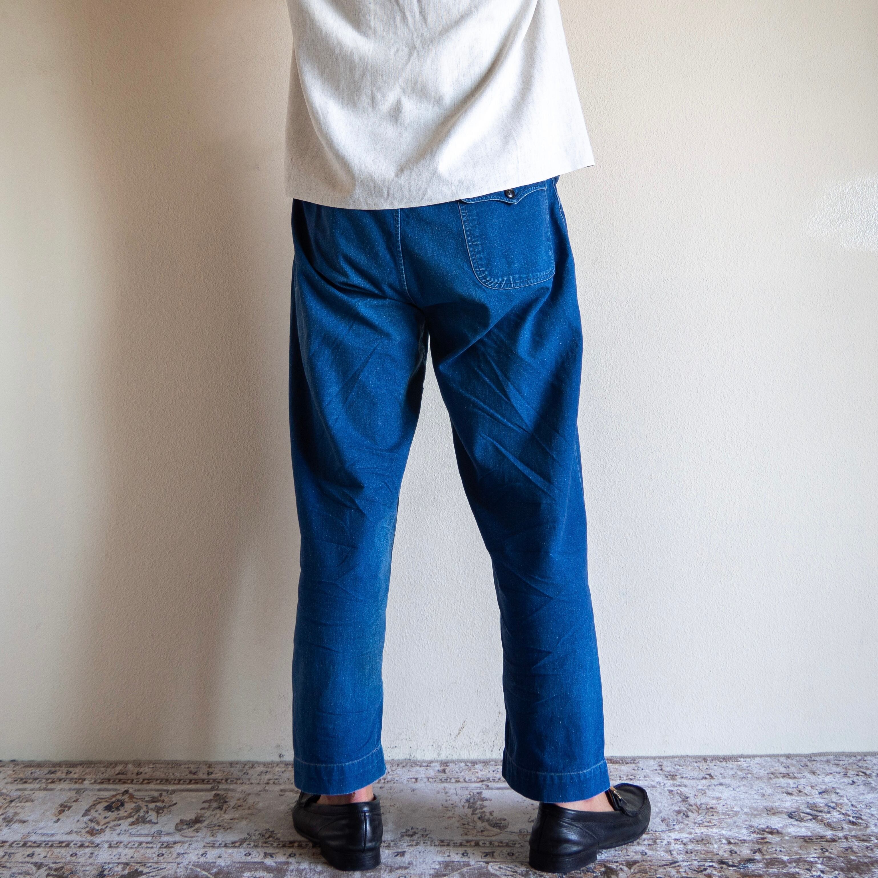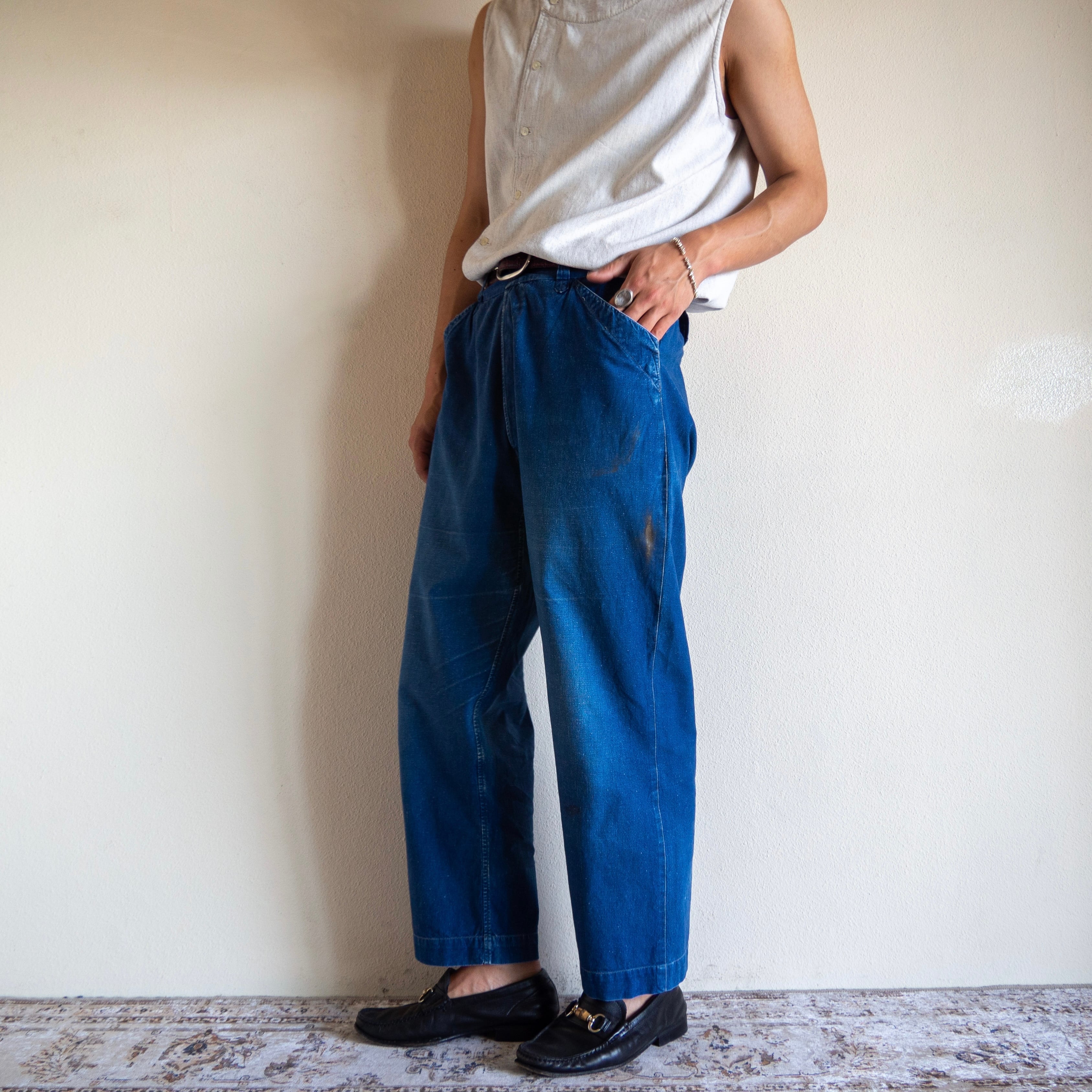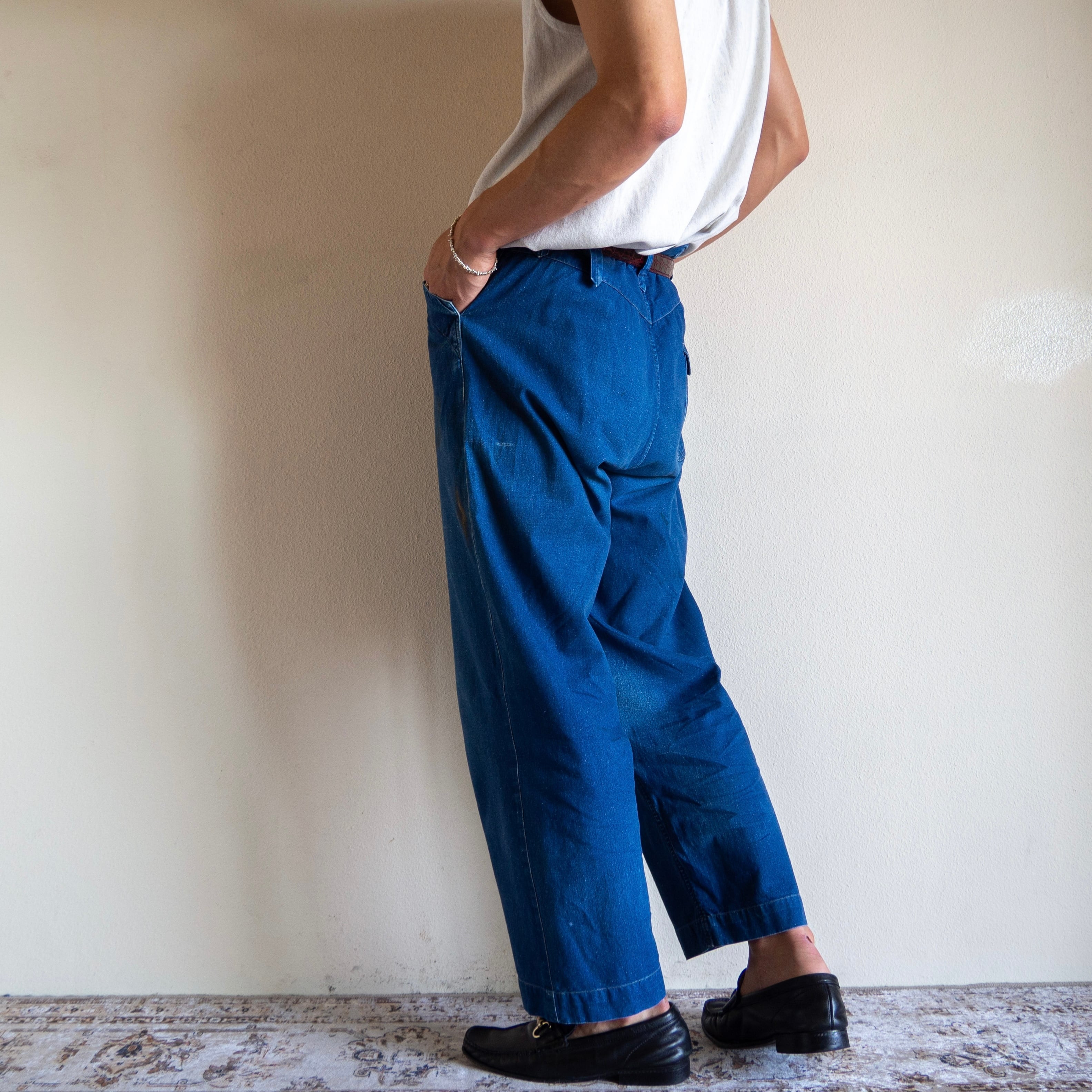 1960-70年代頃にフランスで着用されていた、鮮やかなインディゴブルーが目を惹くワークトラウザーズのご紹介です。