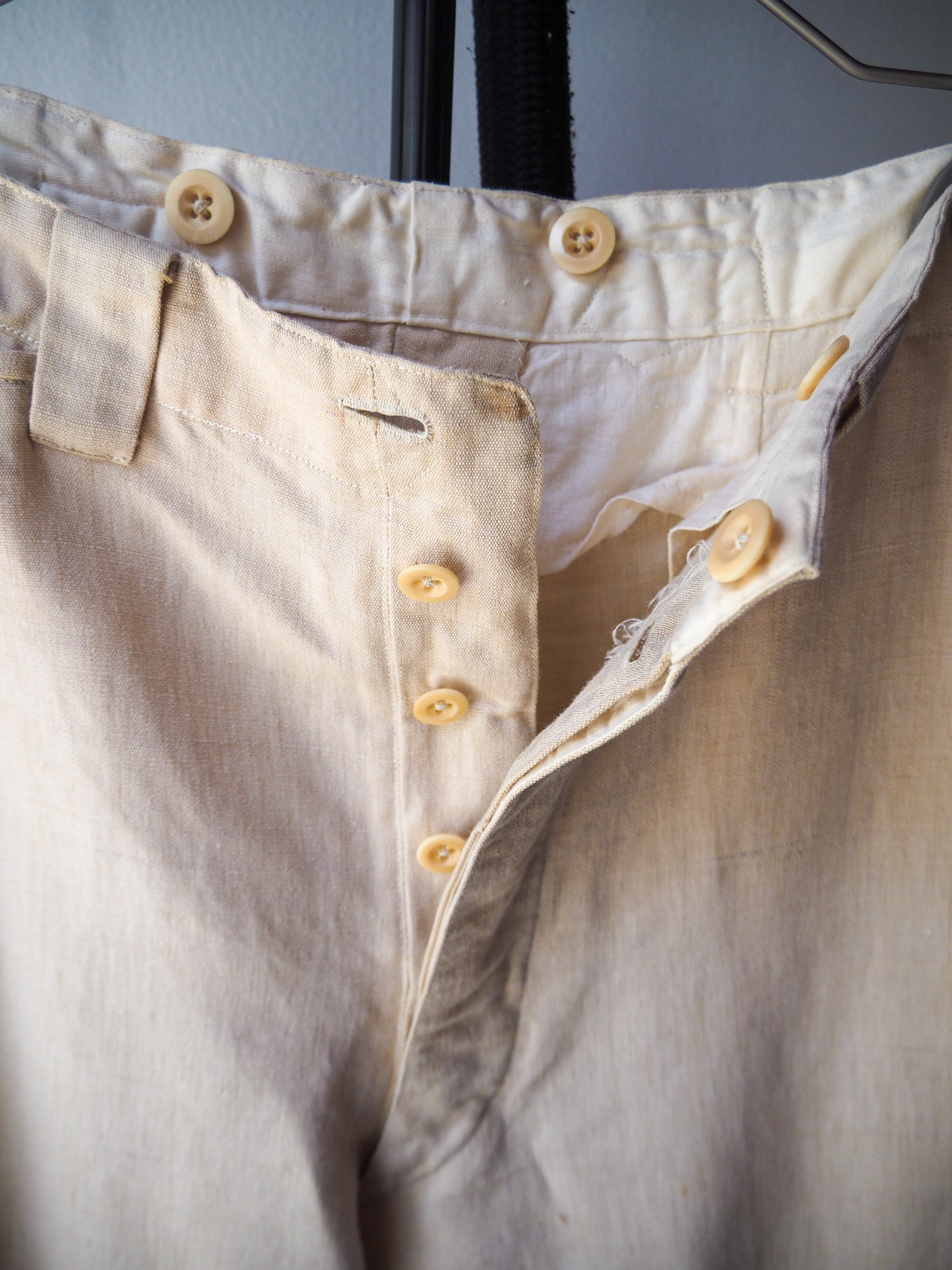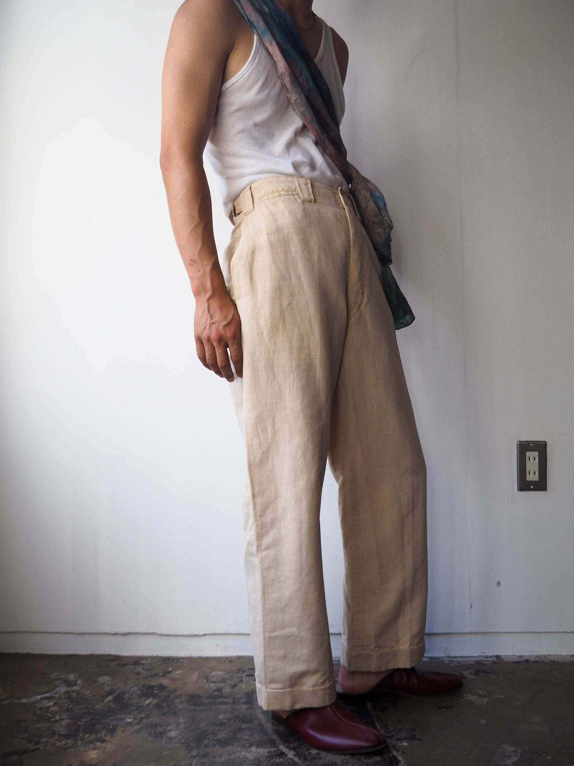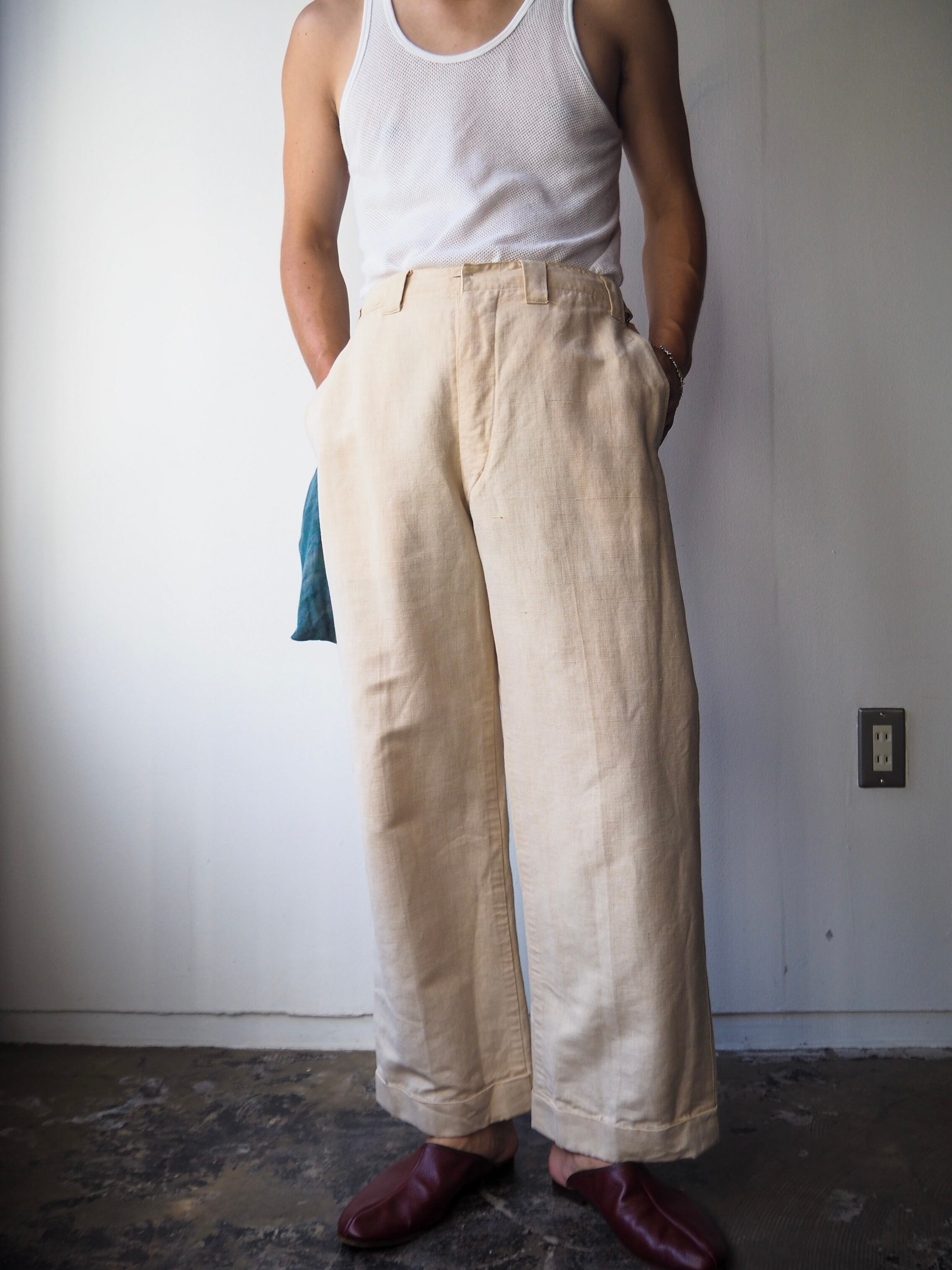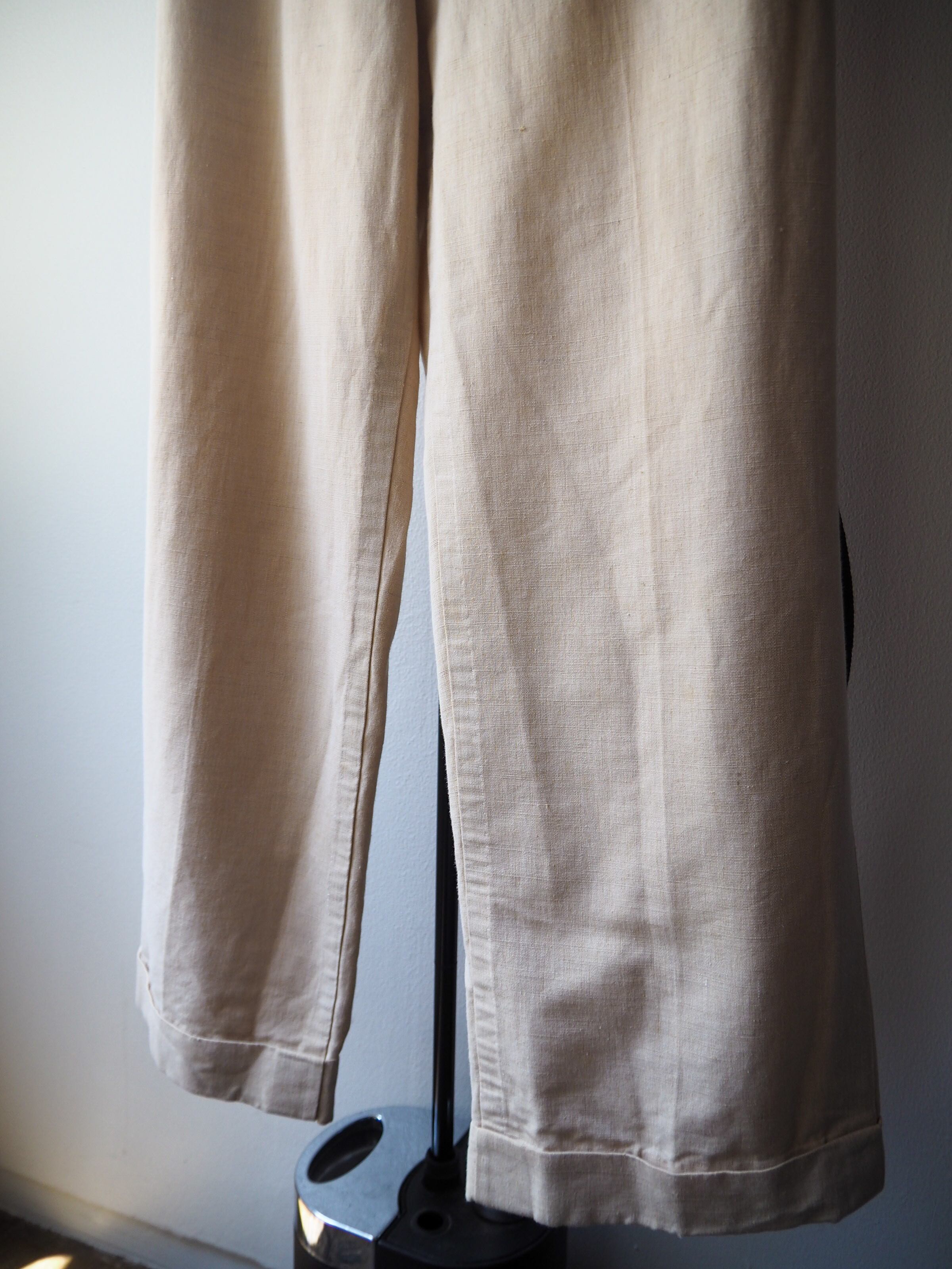 1950年代頃にドイツで着用されていたリネンワークトラウザーズ。今回は希少なデッドストックコンディションで入荷することができました。