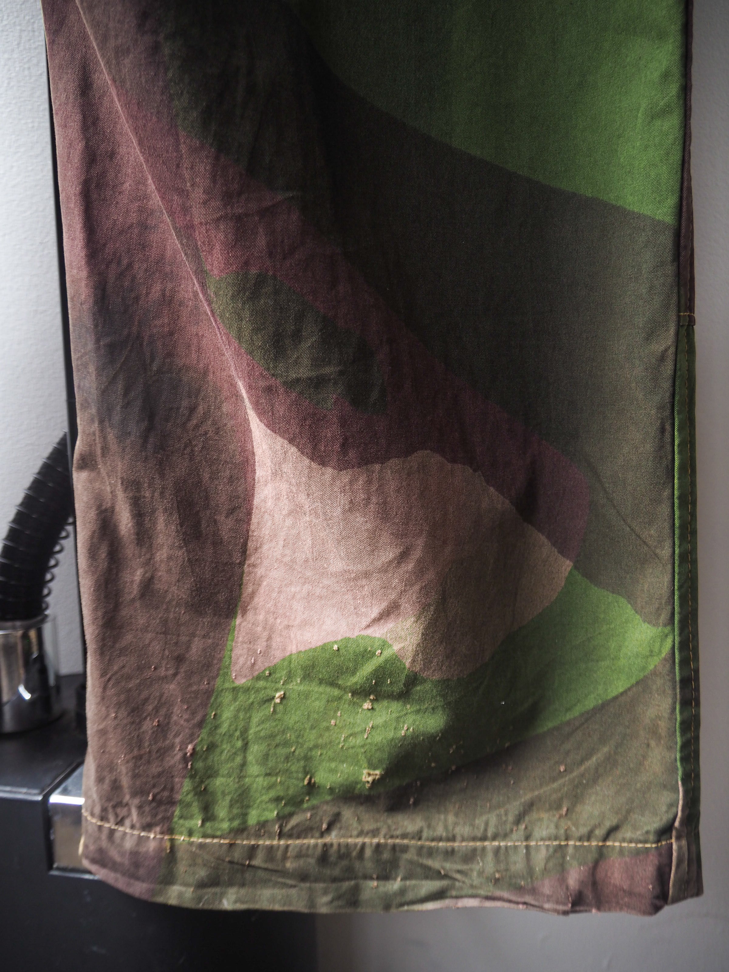 薄手ながらも高密度に織り込まれたベンタイルコットンに読んで字の如く筆でザッと描いたような迷彩柄が特徴の”ブラッシュストロークカモ”が目を惹く一本。