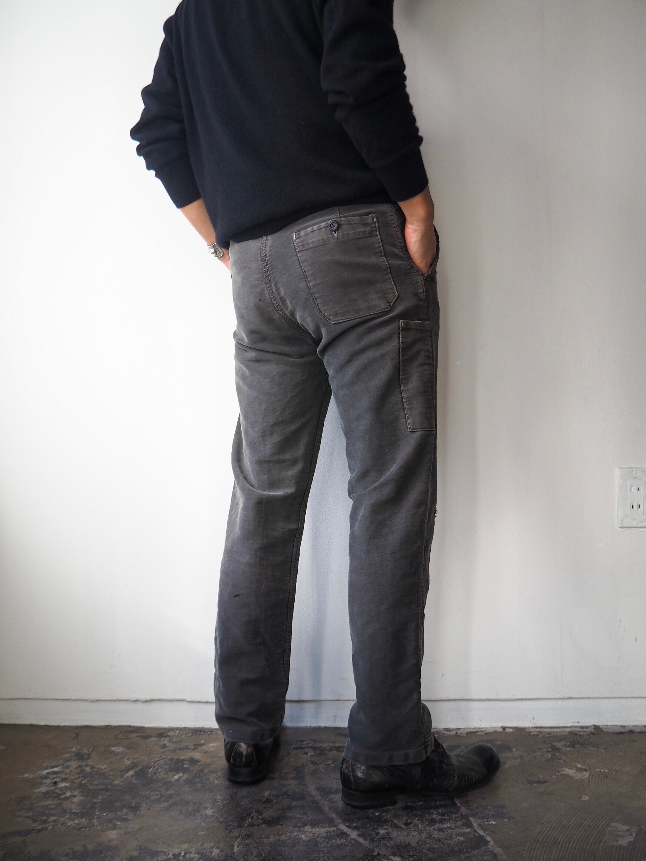 1950年代ごろにフランスで着用されていたブラックモールスキン素材のワークトラウザーのご紹介です。