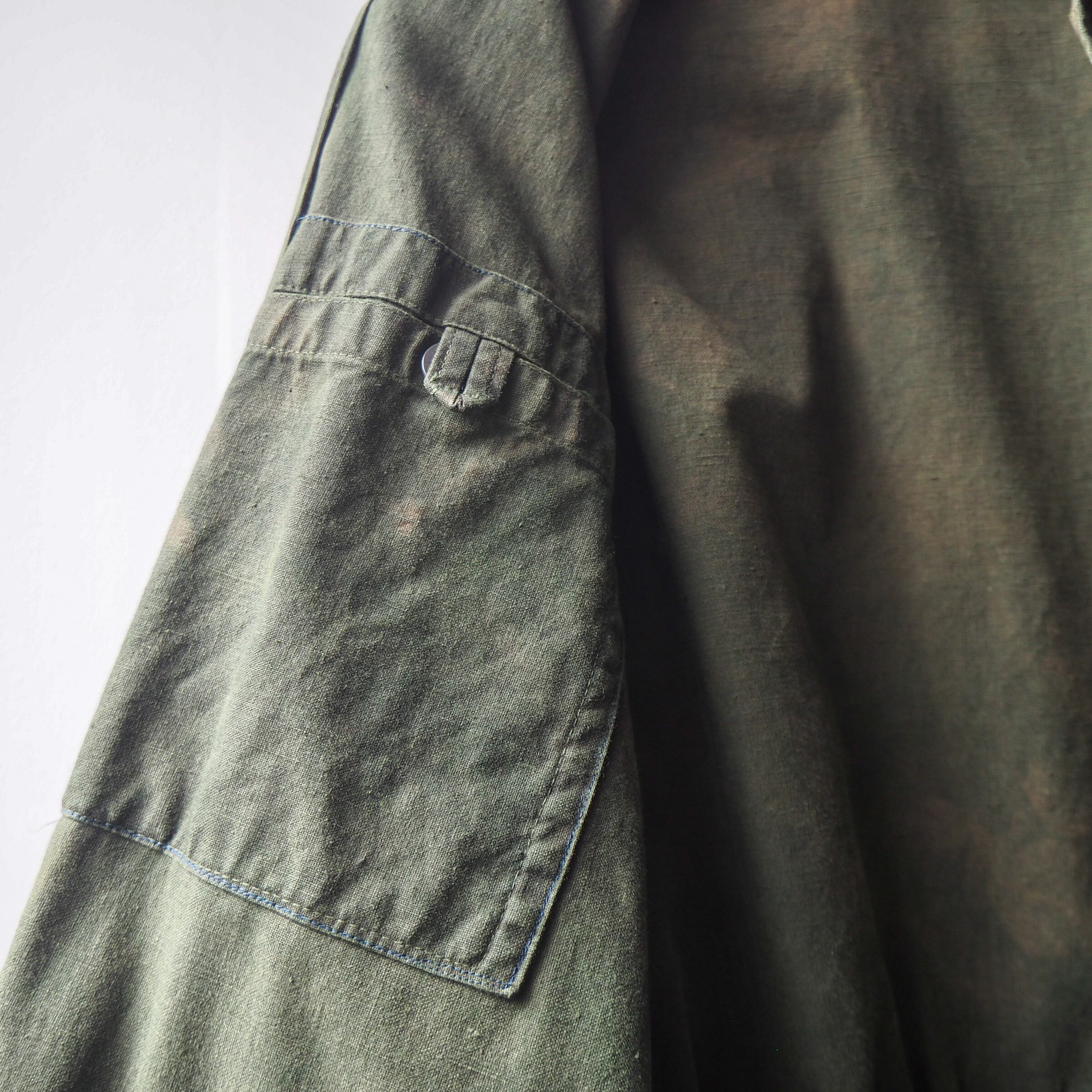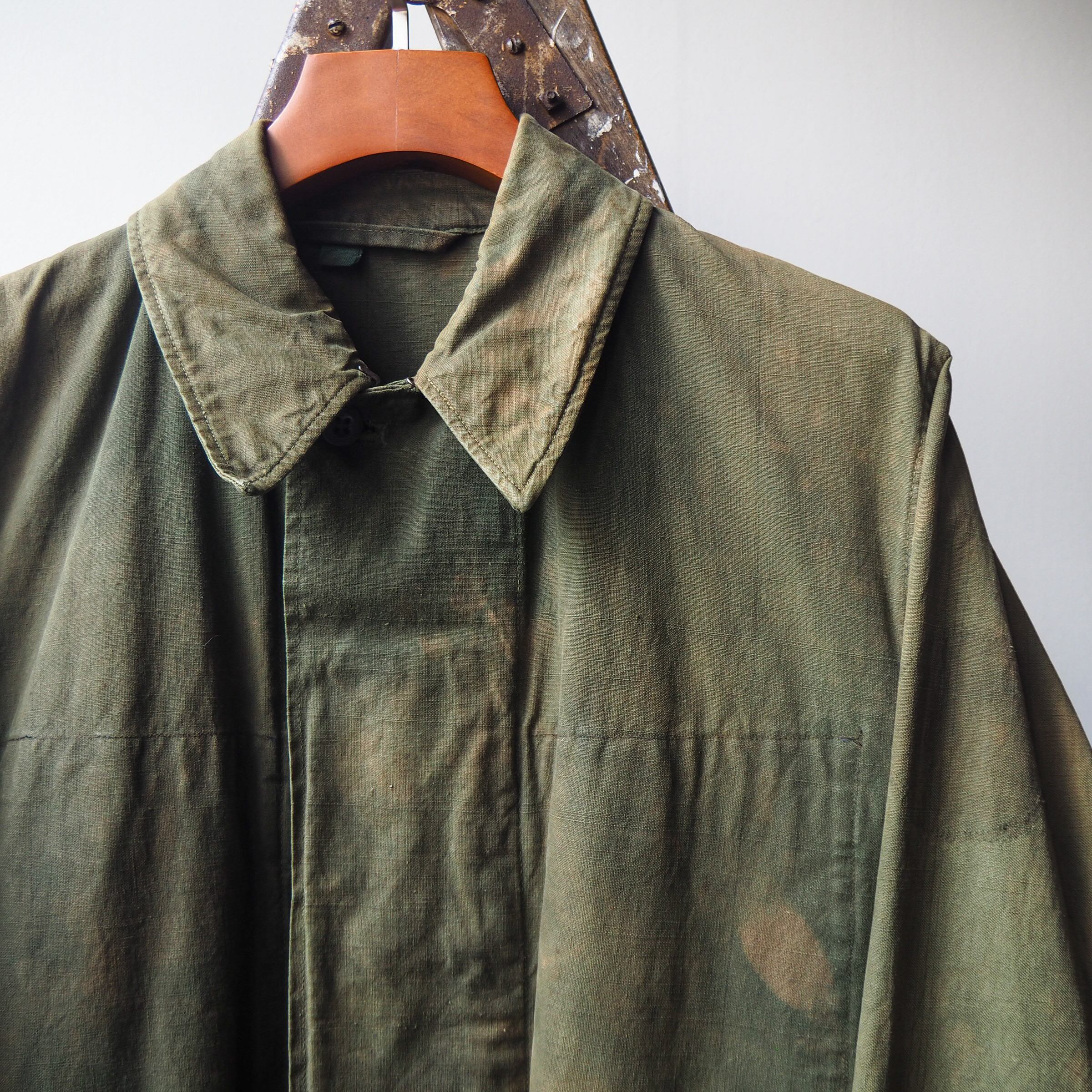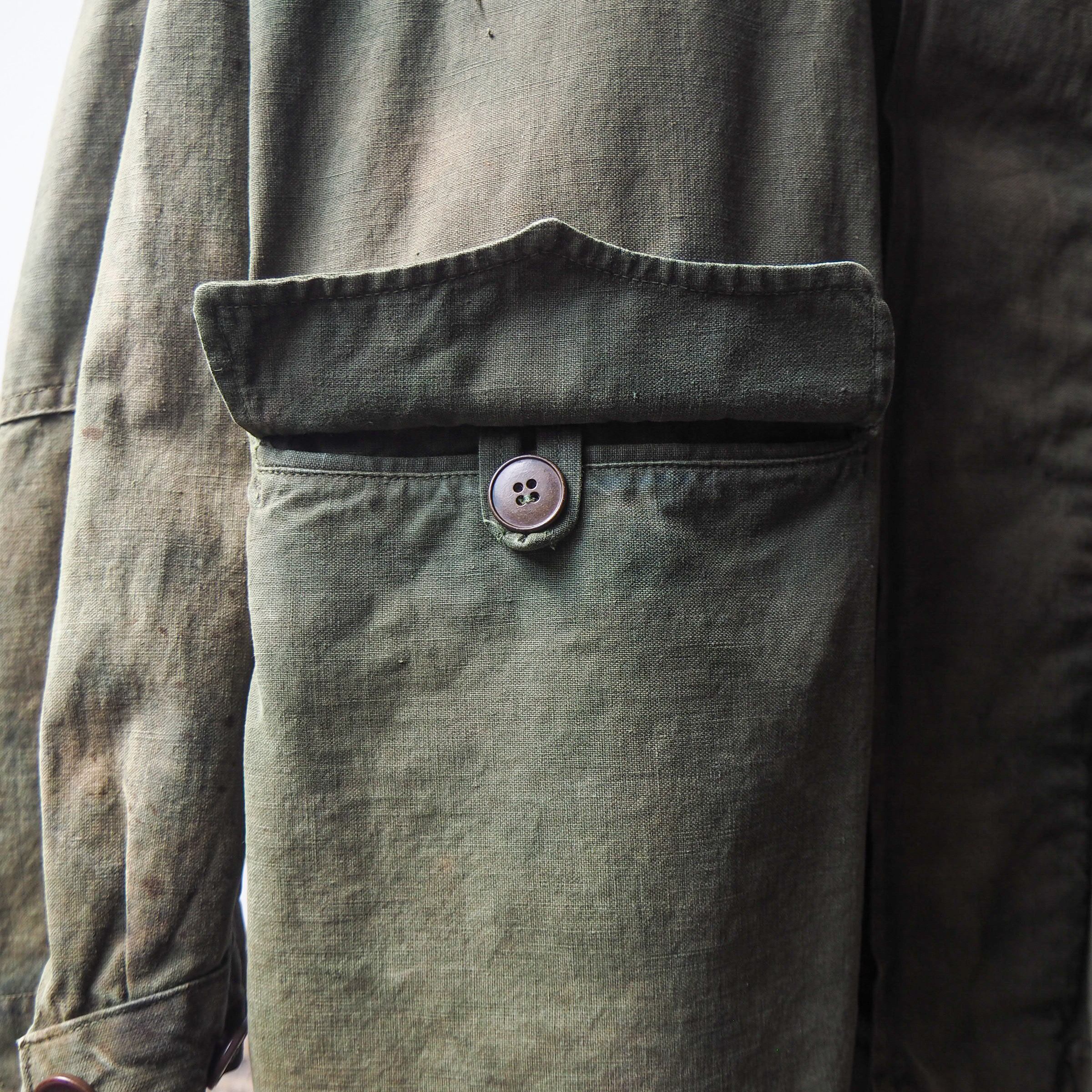 ポケットの形状、ボタンから恐らく1950年代ごろのフランス軍。平地戦というよりも深い森や沼地近くで使用されていた感じがします。