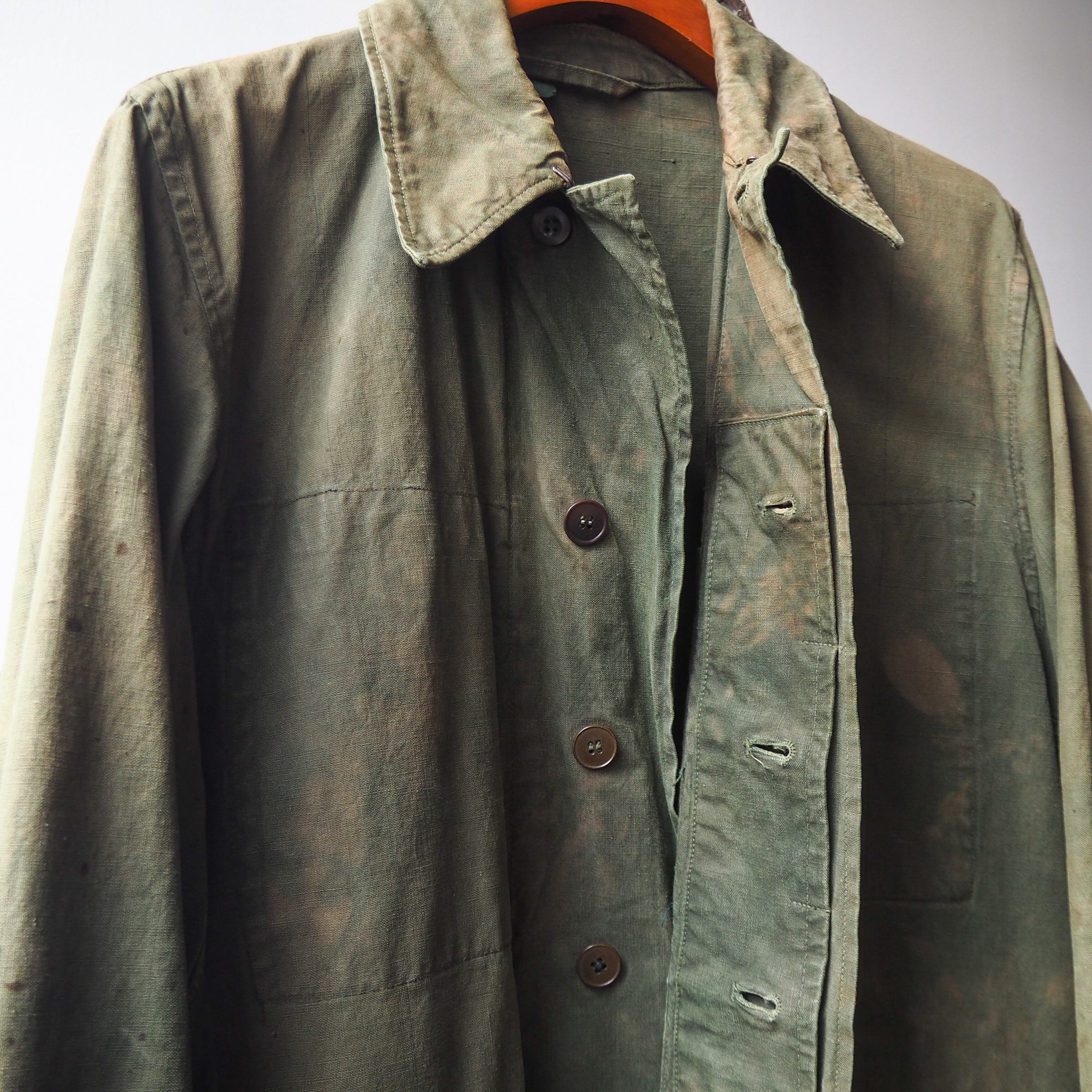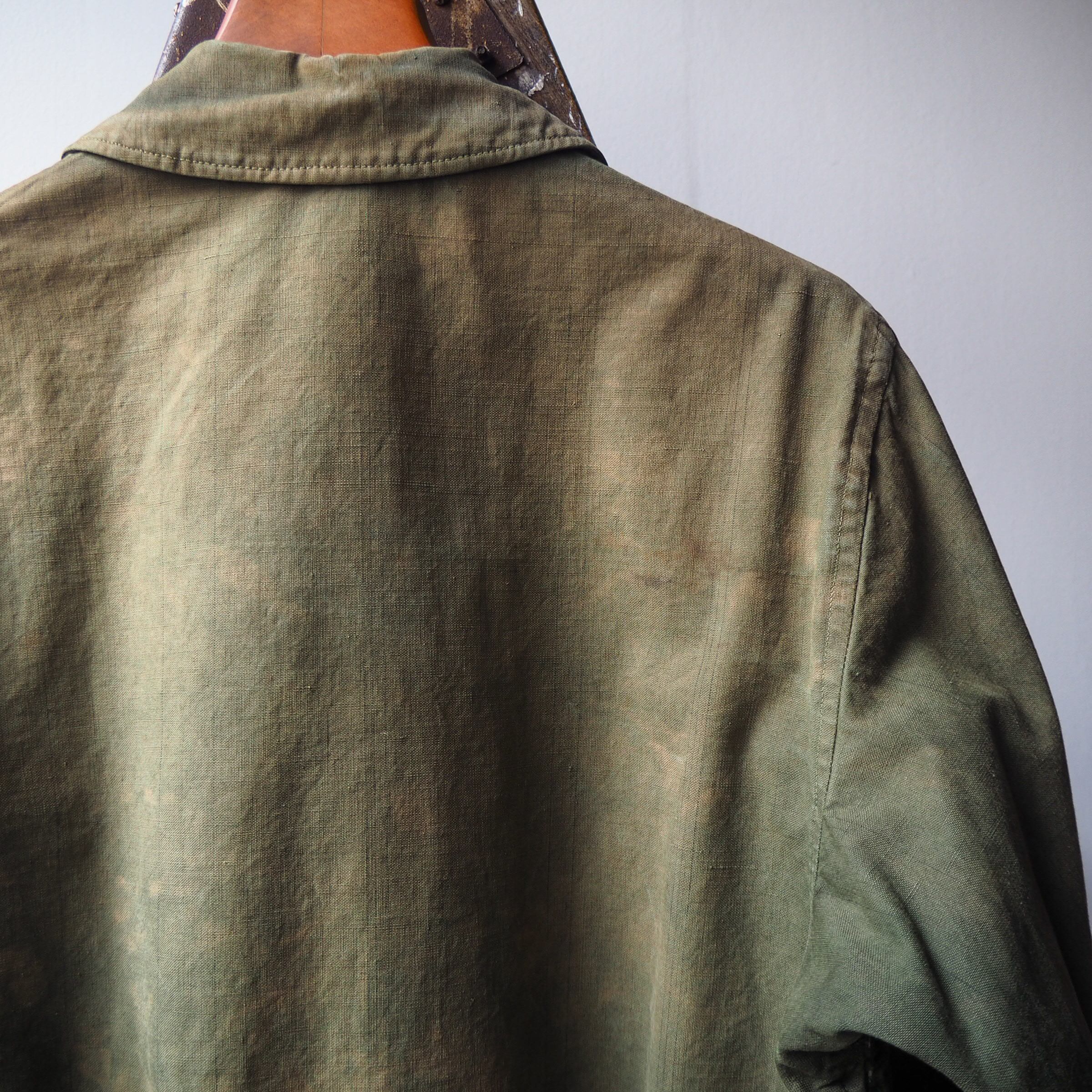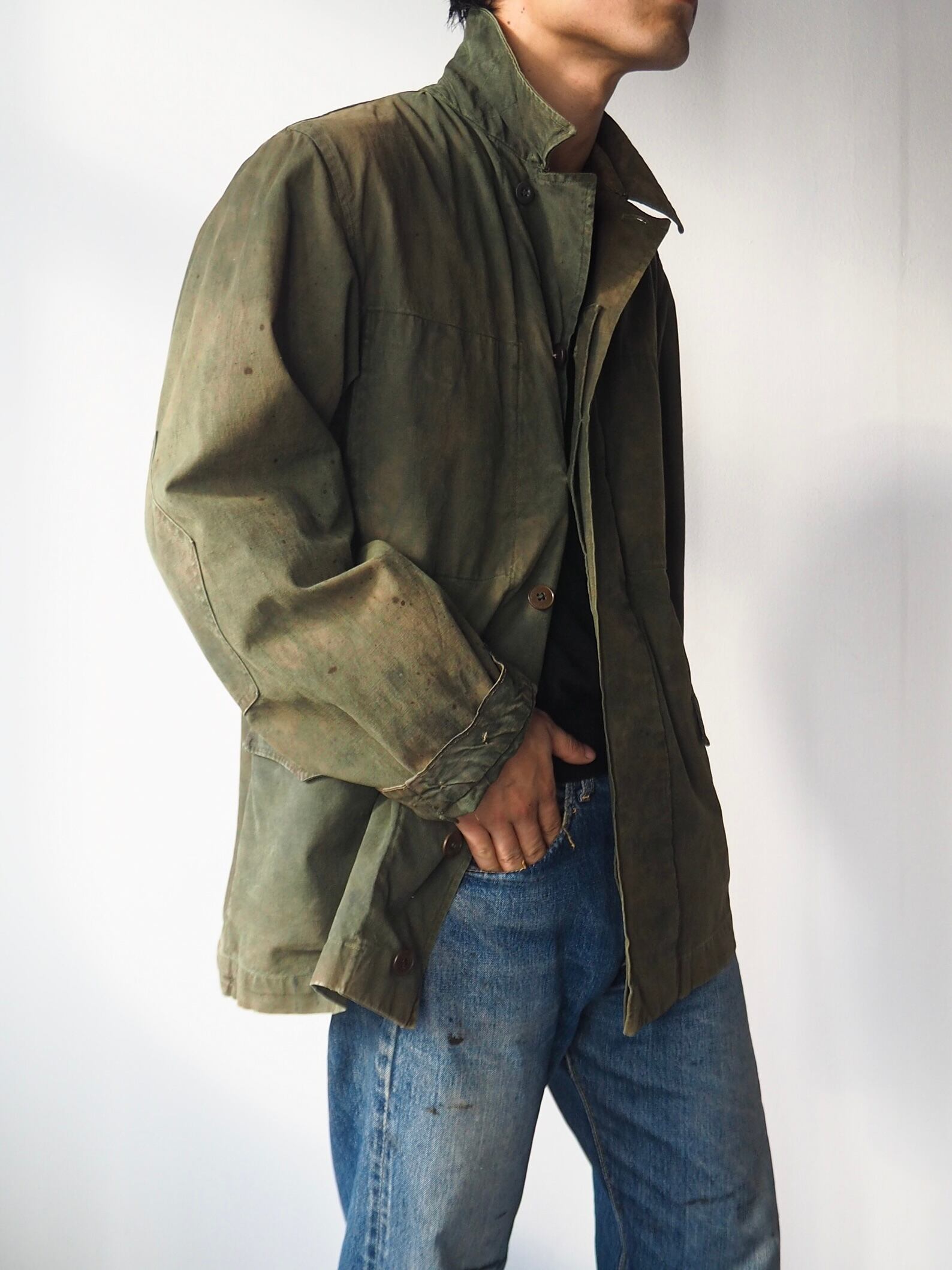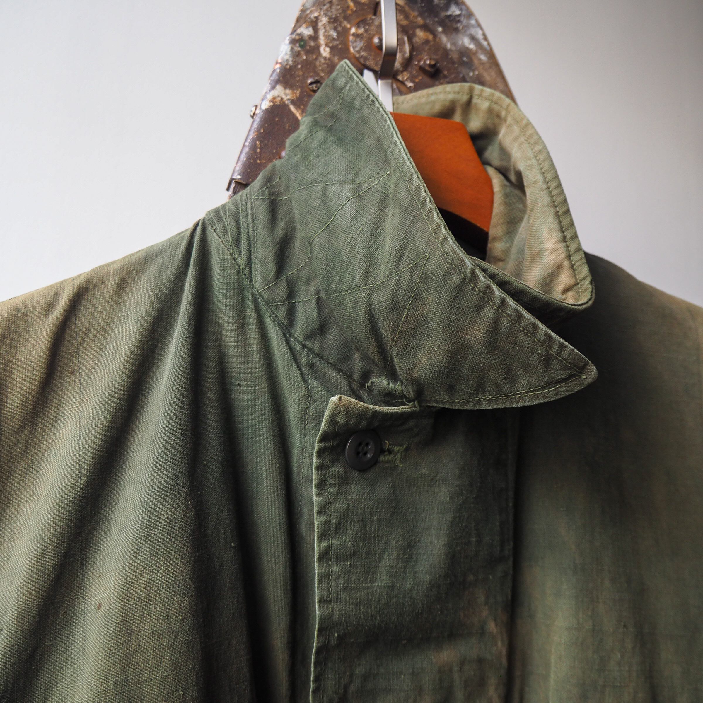 ポケットの形状、ボタンから恐らく1950年代ごろのフランス軍。平地戦というよりも深い森や沼地近くで使用されていた感じがします。