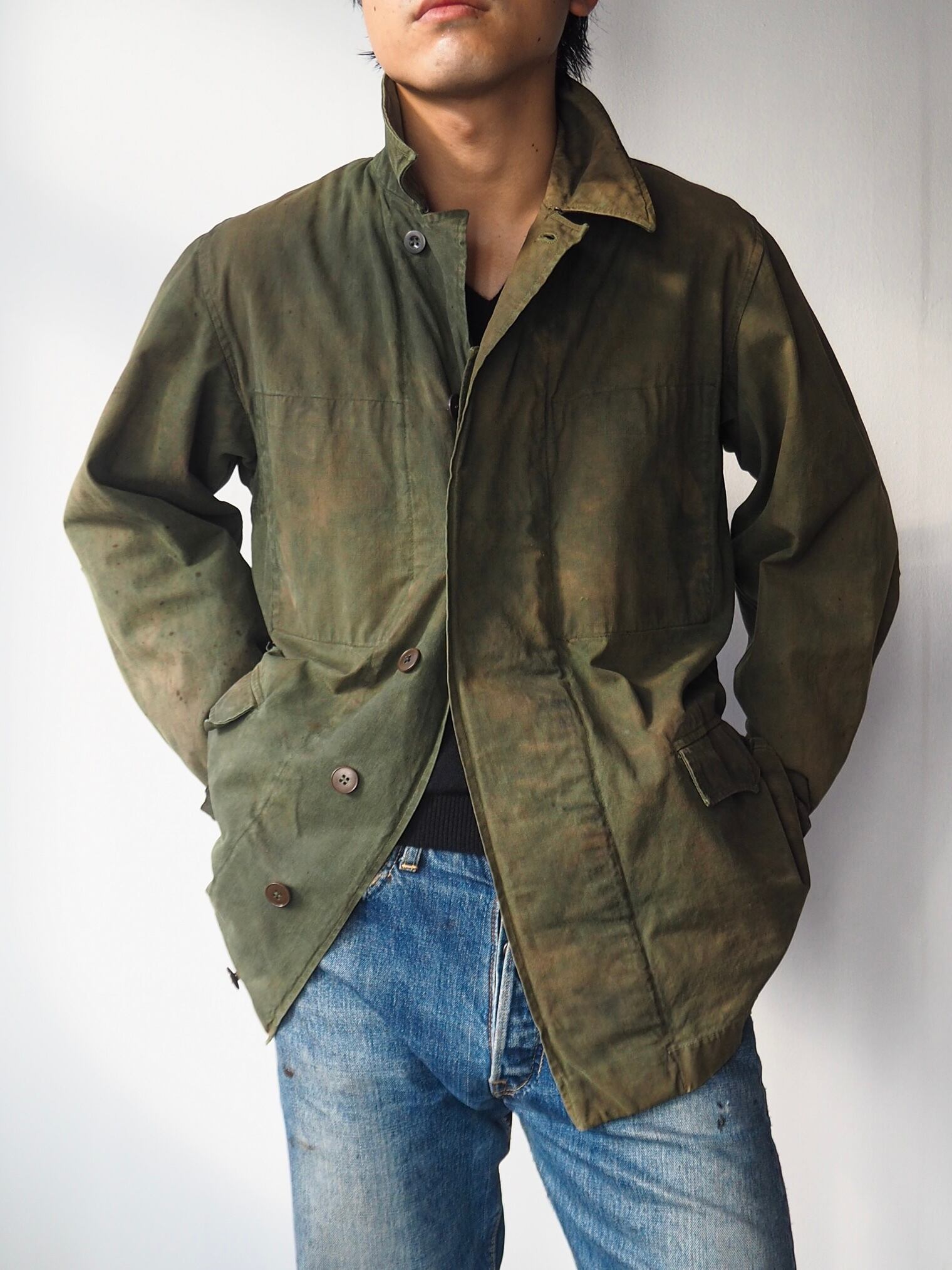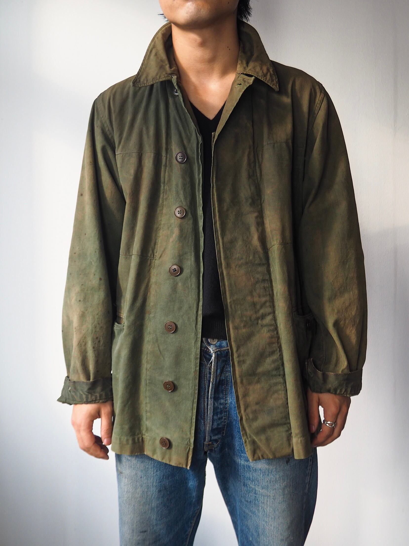 unknown 1950s Hand Camouflaged Cotton Canvas Field Jacket