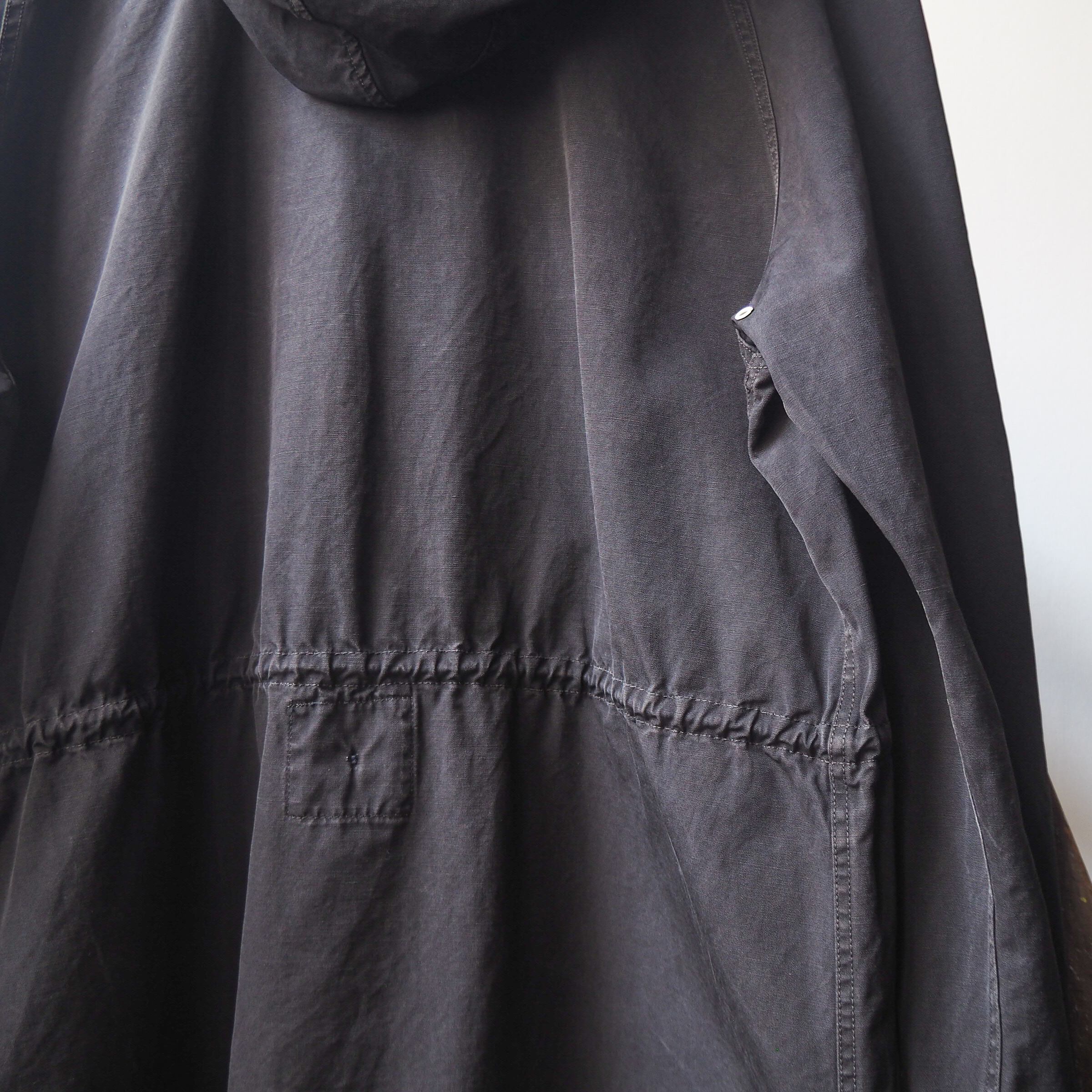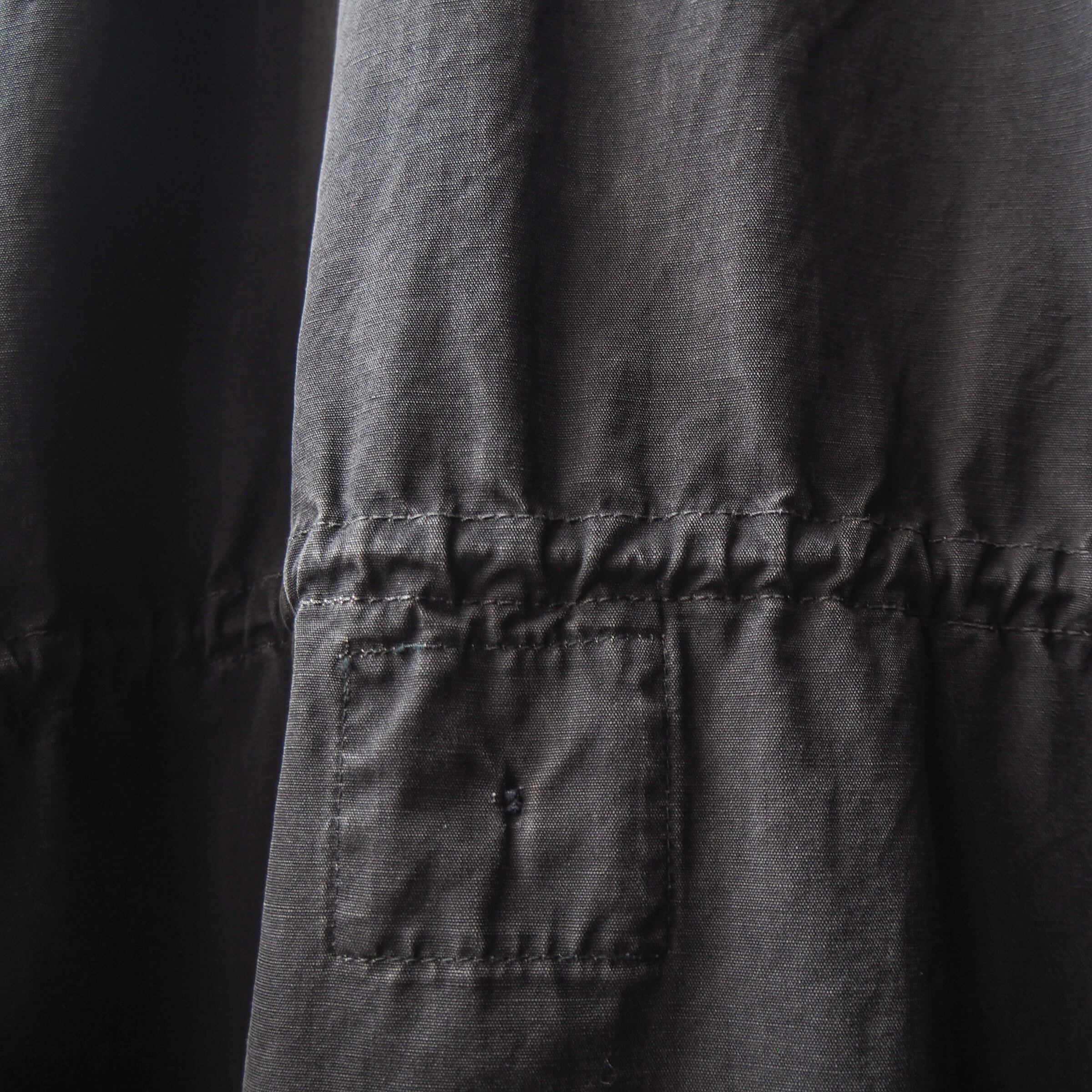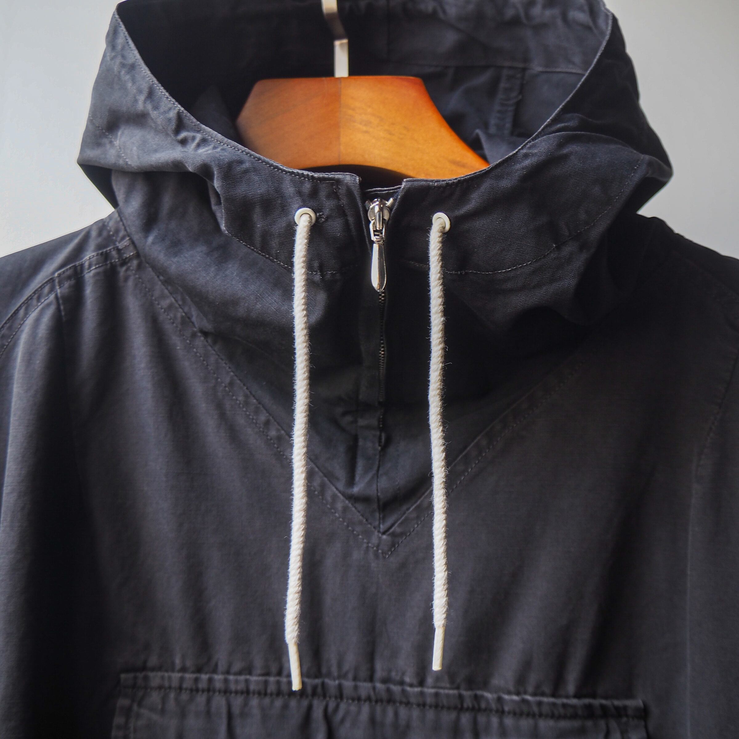 ボディは高番手の細いコットン繊維を使用した平織りのコットンファブリックを採用。マットなブラックに古い年代特有のスロウな質感がとてもクール。