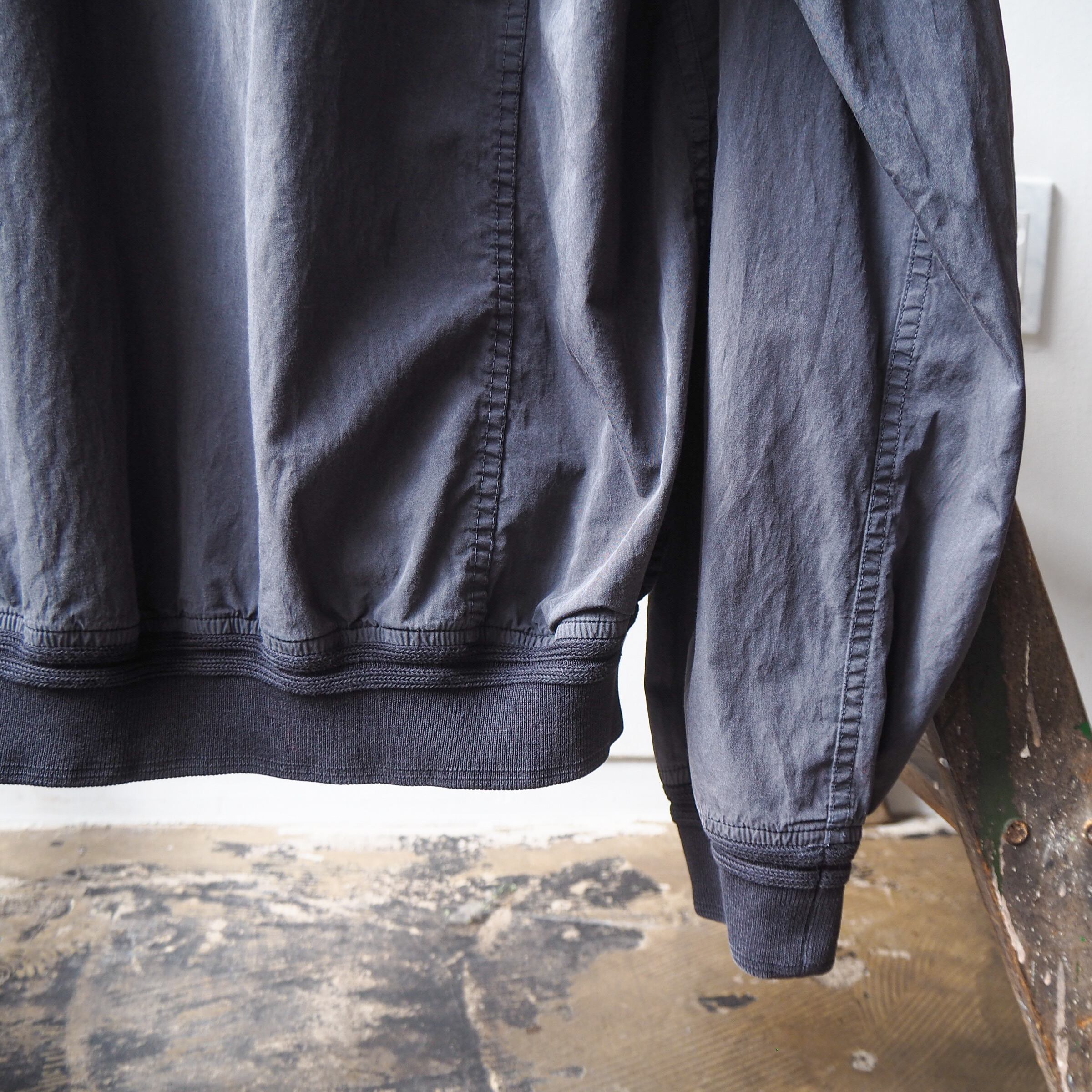 袖、ウエストはリブで溜まるため幅広い体型の方にサイズよくお召し頂けそうです。寒い時期にはインナーとして外套の中から覗かせていただくのも◎