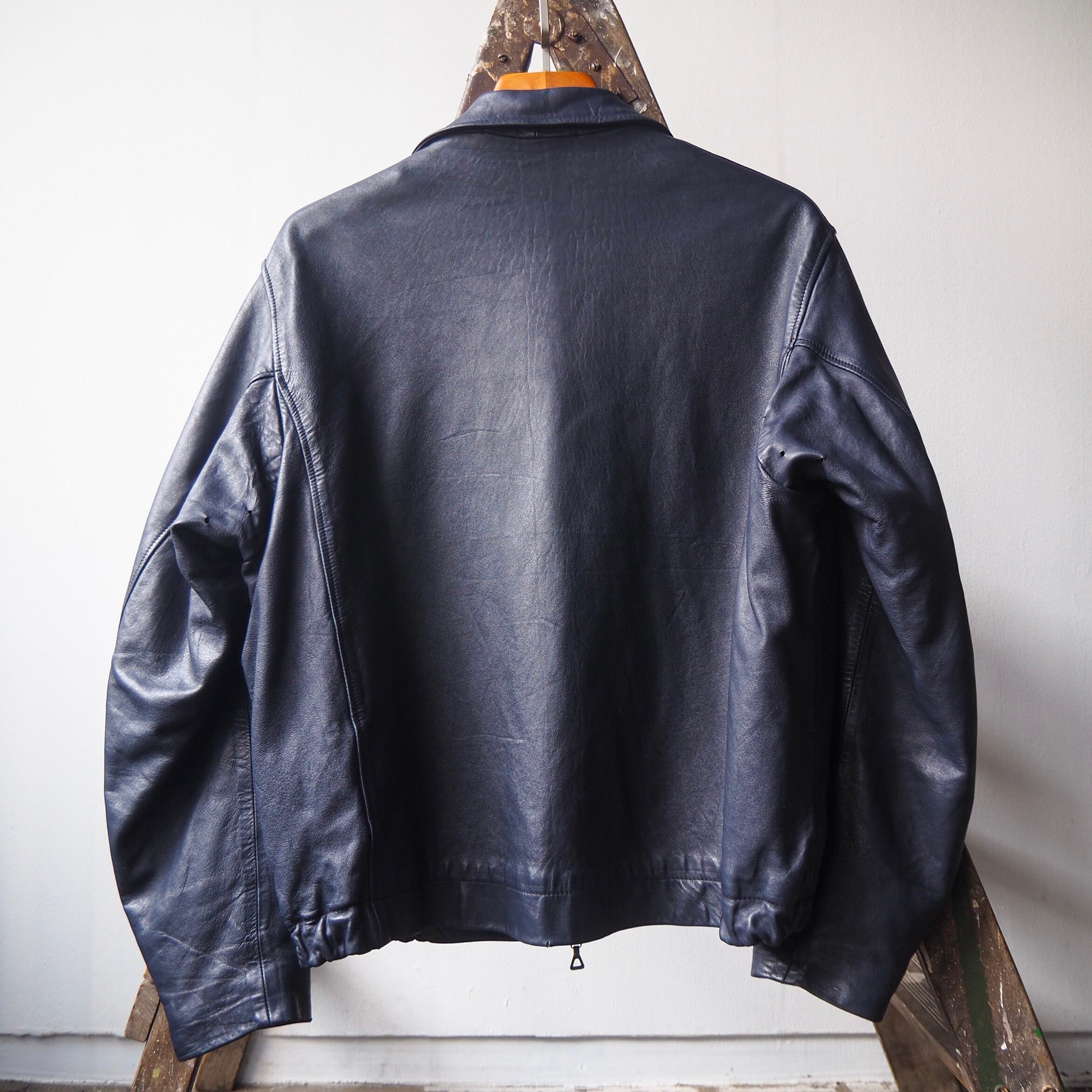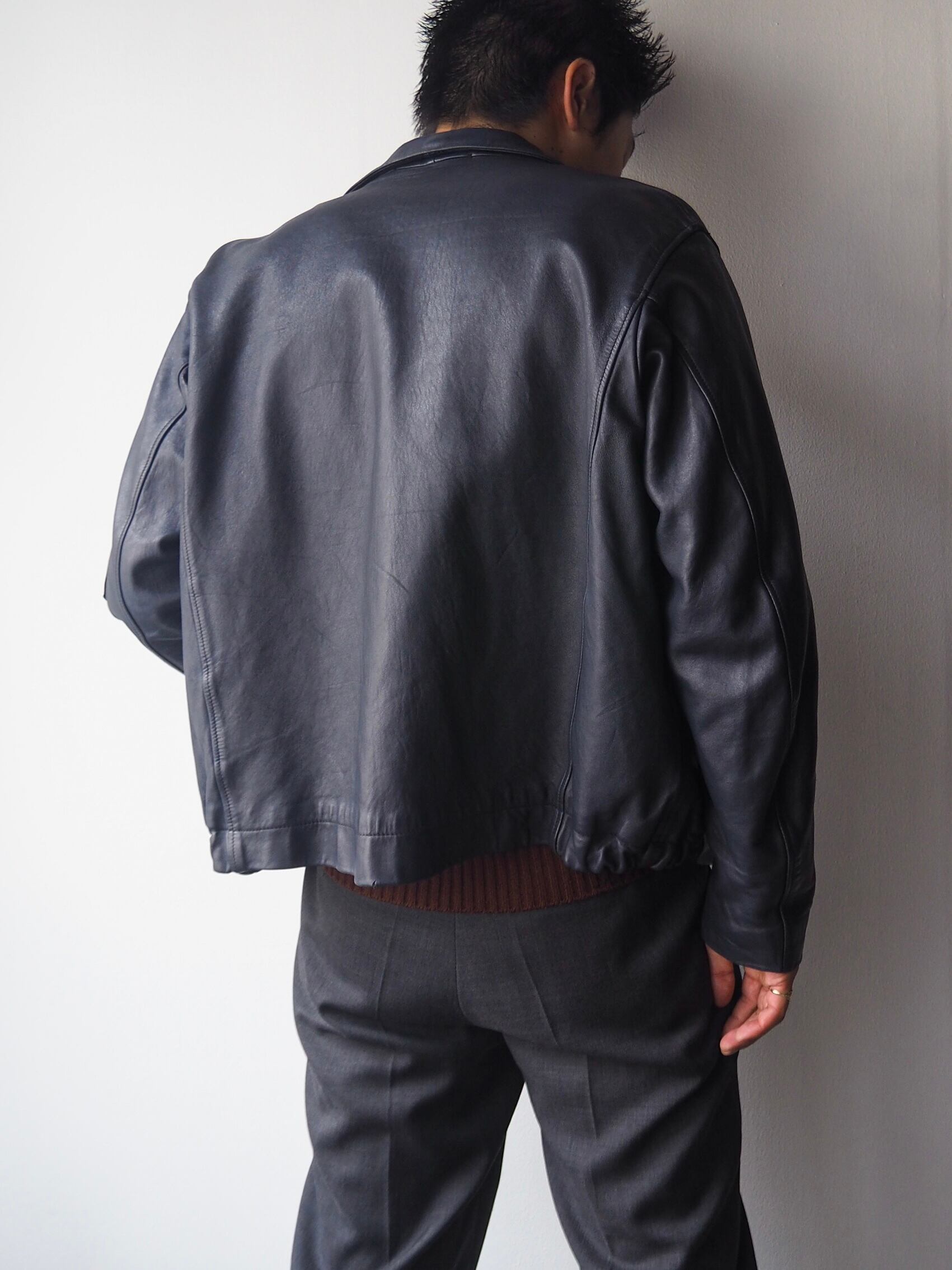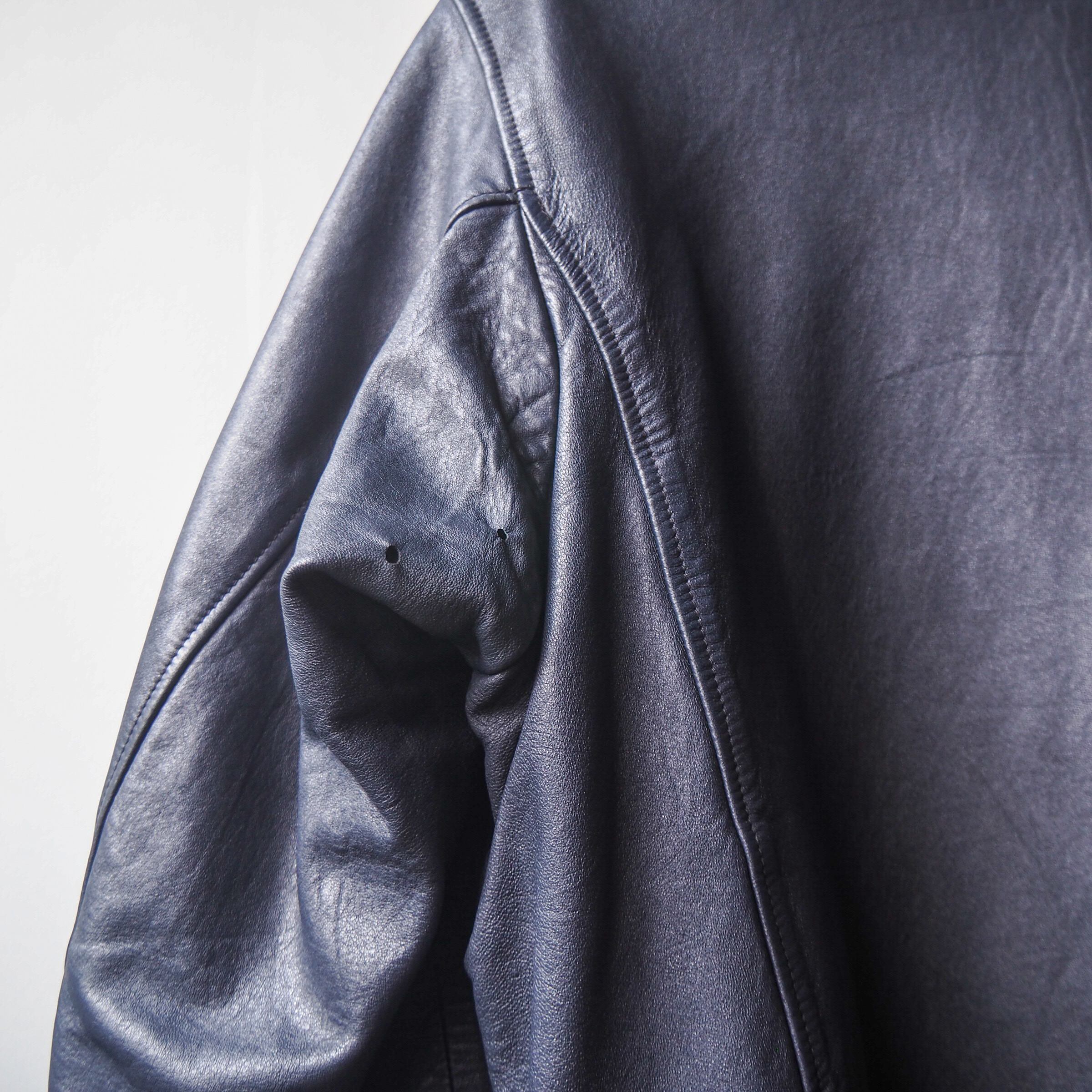 濃いインクブルーのクールな色味に、柔らかく体にフィッティングするもっちりとした生地感のシープスキンレザー。