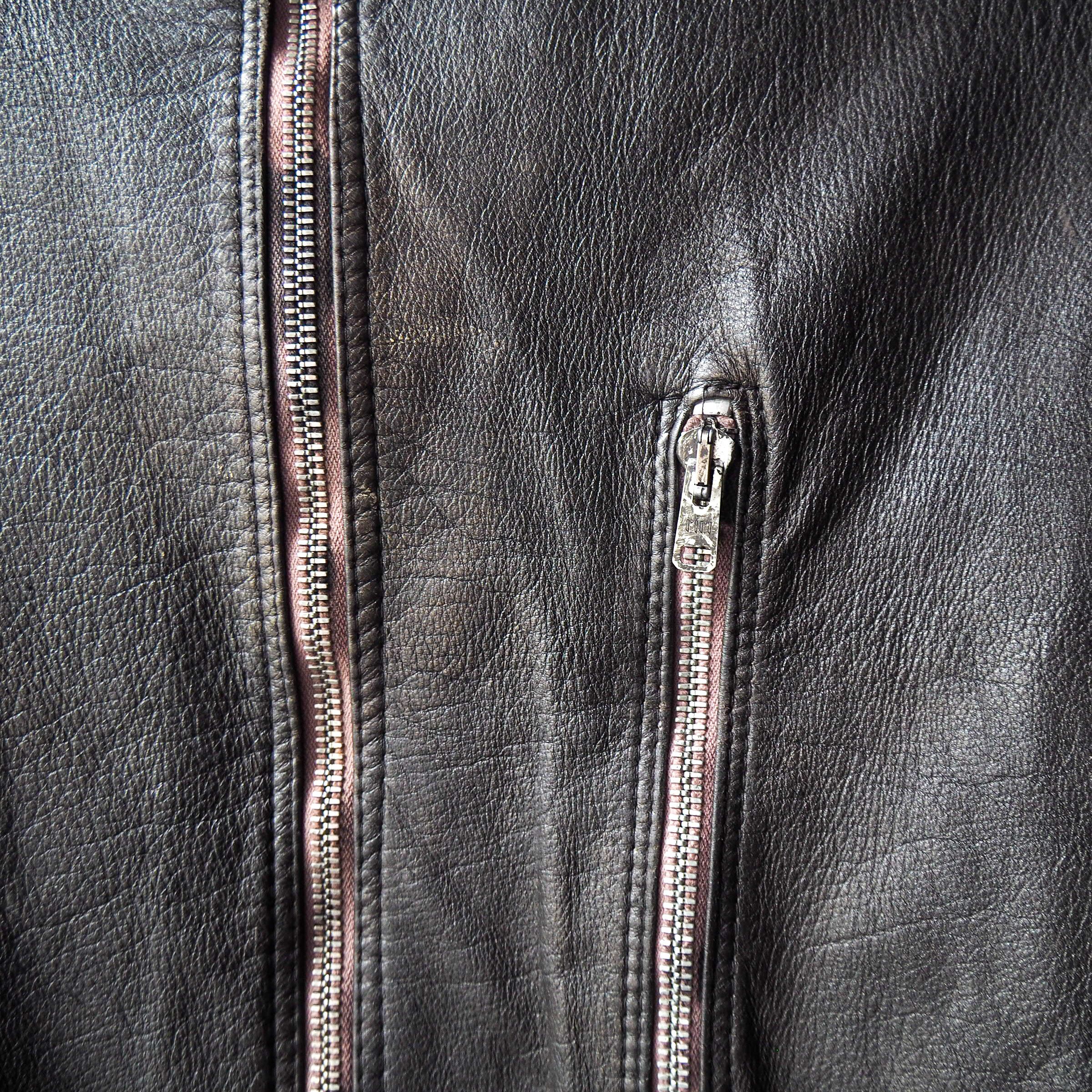 シボの効いたブラックレザーに古いアルミジッパーが映えます。