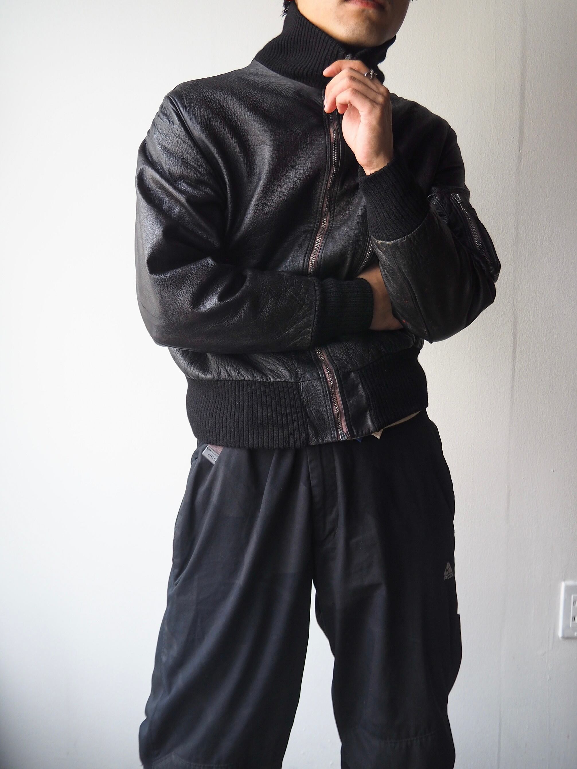 裾、袖、襟は風の侵入を防ぎ、保温性を高めるためのリブ仕様。レザージャケットでありながらスポーツジャケットのようなアクティブな着こなしも楽しんでいただけます。