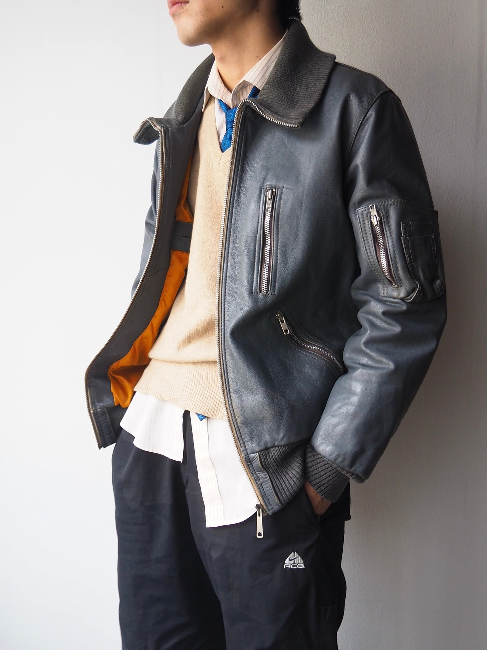 1950年頃から旧西ドイツ空軍パイロットに着用されていたレザーフライトジャケット。こちらは1980年代頃の民間モデル。