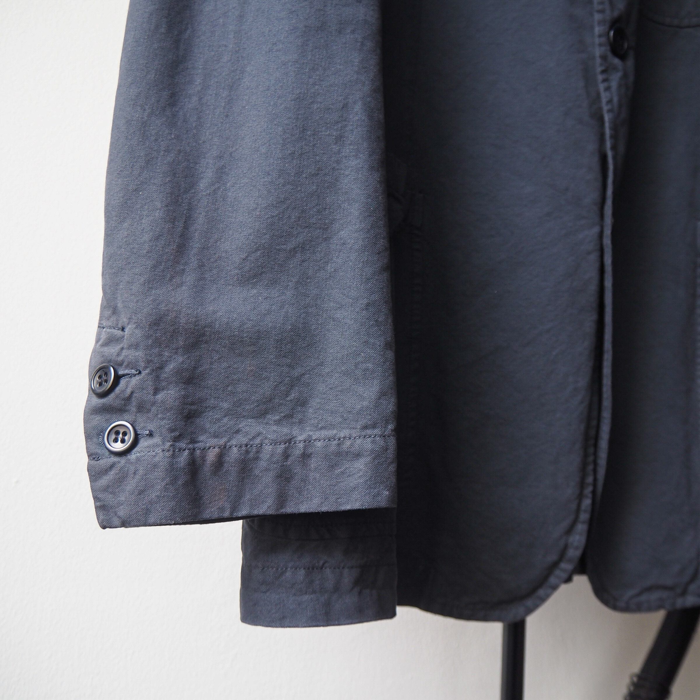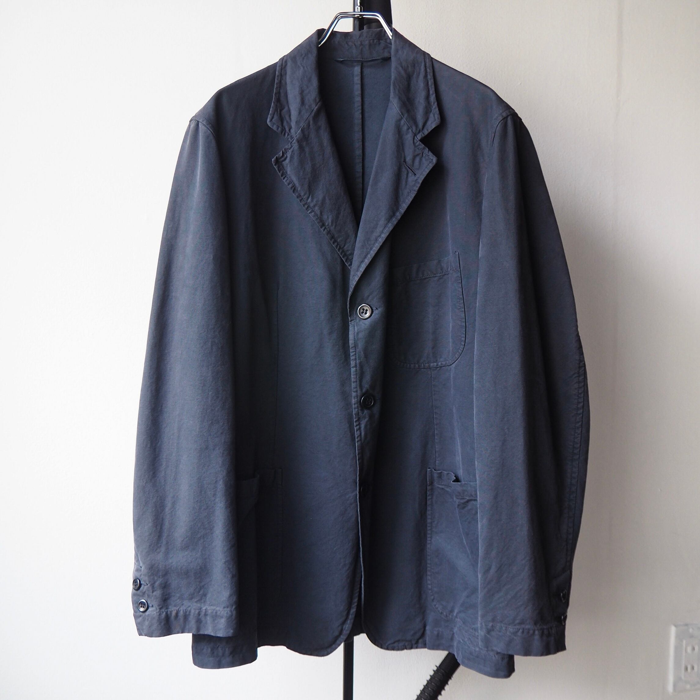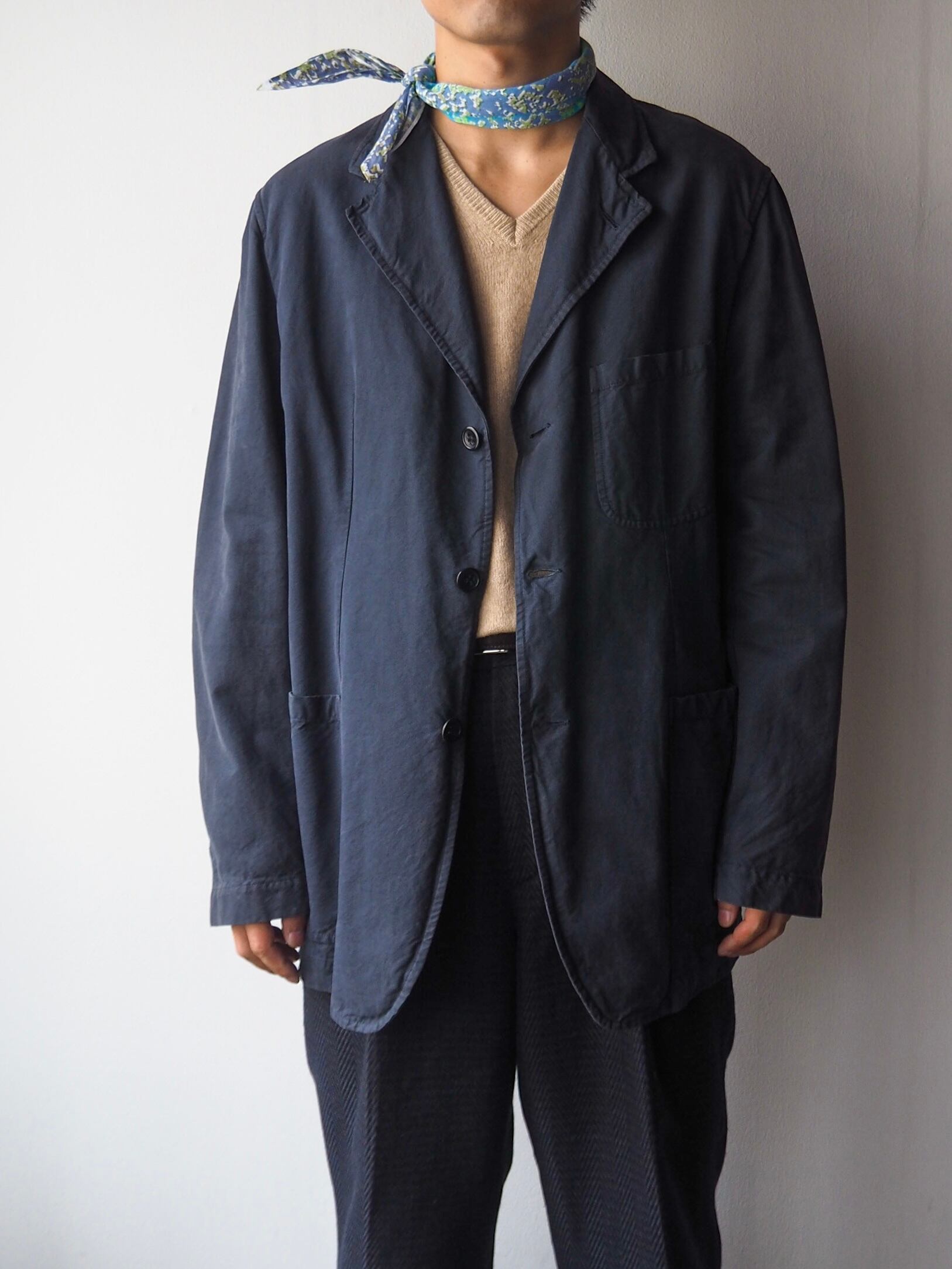 ボディは縫製後、製品染めが行われたガーメント・ダイドコットン。肩パッドや裏地が付属しないアンコン(Unconstructed)仕様のエレガンスでありながらも非常に軽やかでソフトな設計。