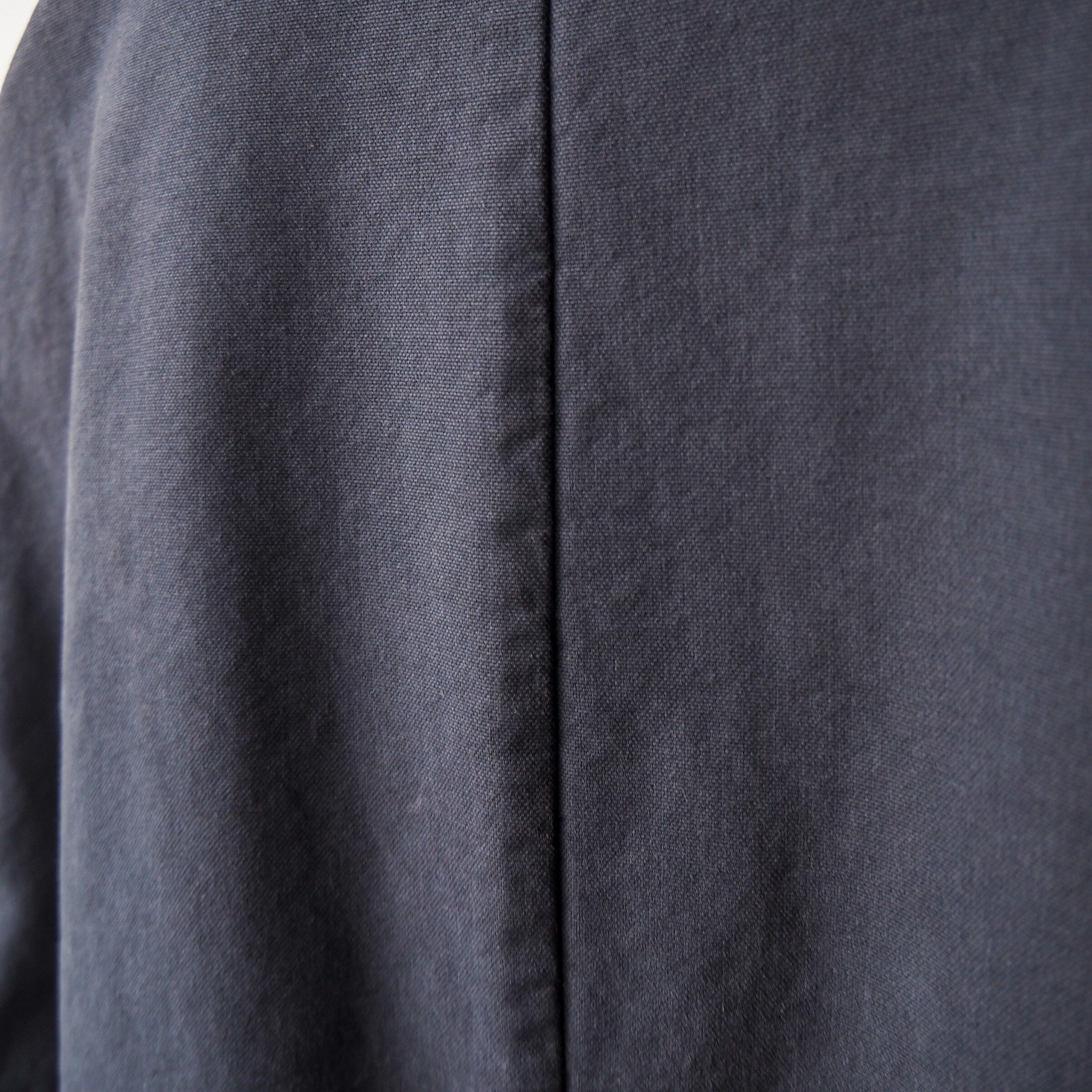 6万を超える染色パターンの中から選び抜かれたガーメントダイによる上品な艶感を湛えたネイビーブラックがとてもクール。これから着用していくに従ってじんわりと経年が出てくる良い生地、良い染色です。