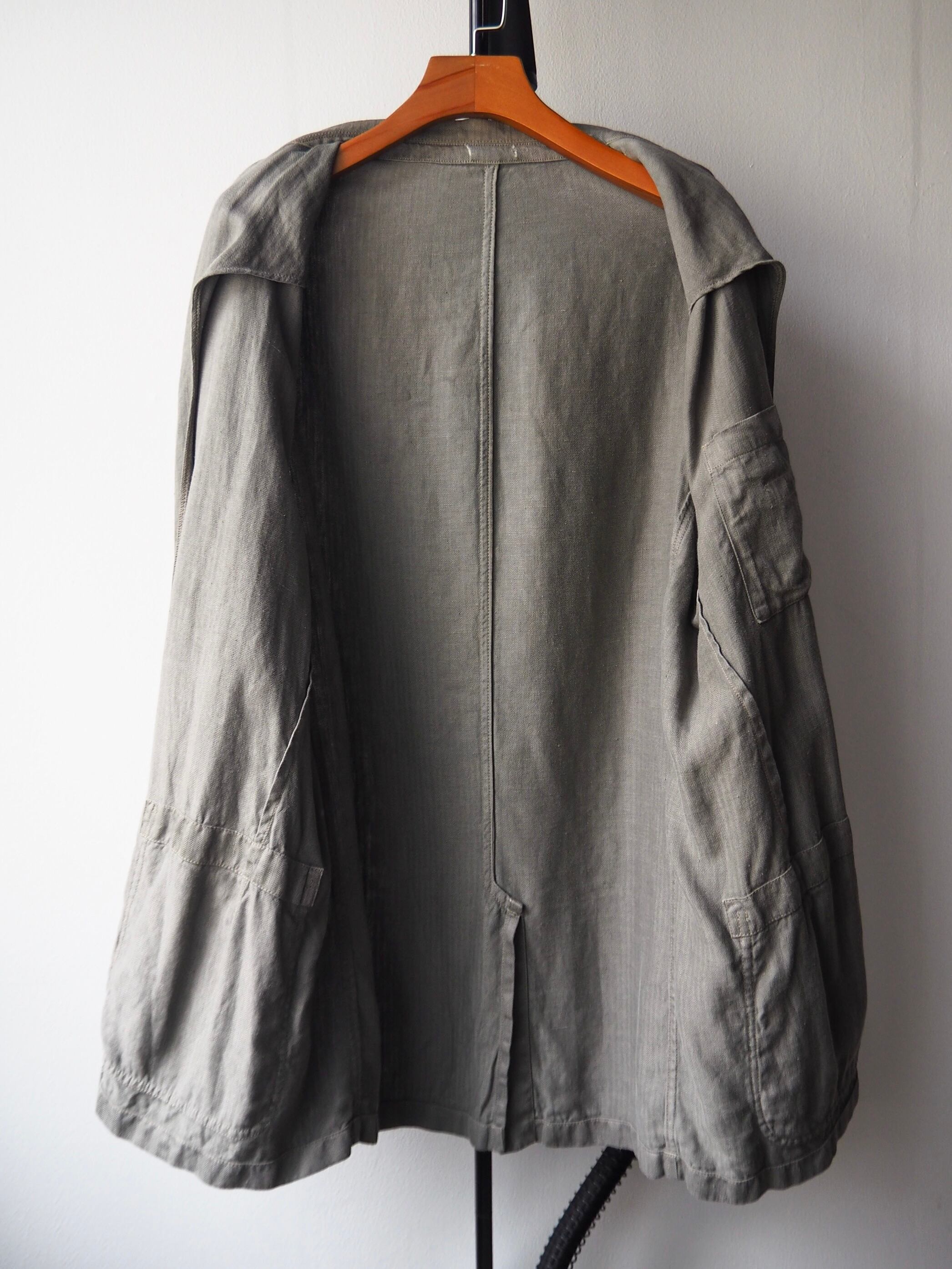 ボディはドイツ語で"Drillich"と呼称されるHBT織のリネンの素材。その多くはこちらの1着と同様にカーキグリーンに染め上げられ、ナチスドイツ海軍の制服として使用されていました。