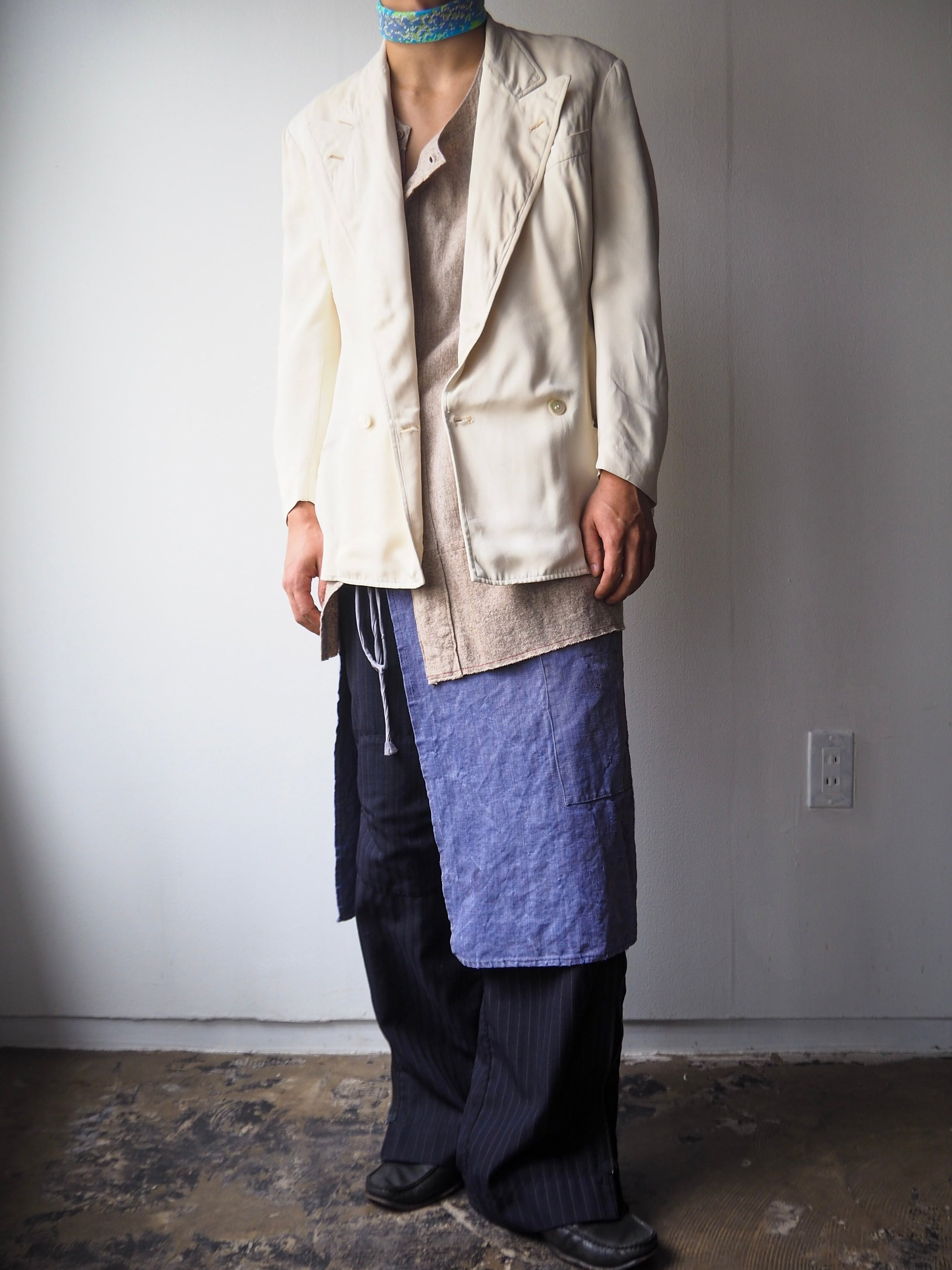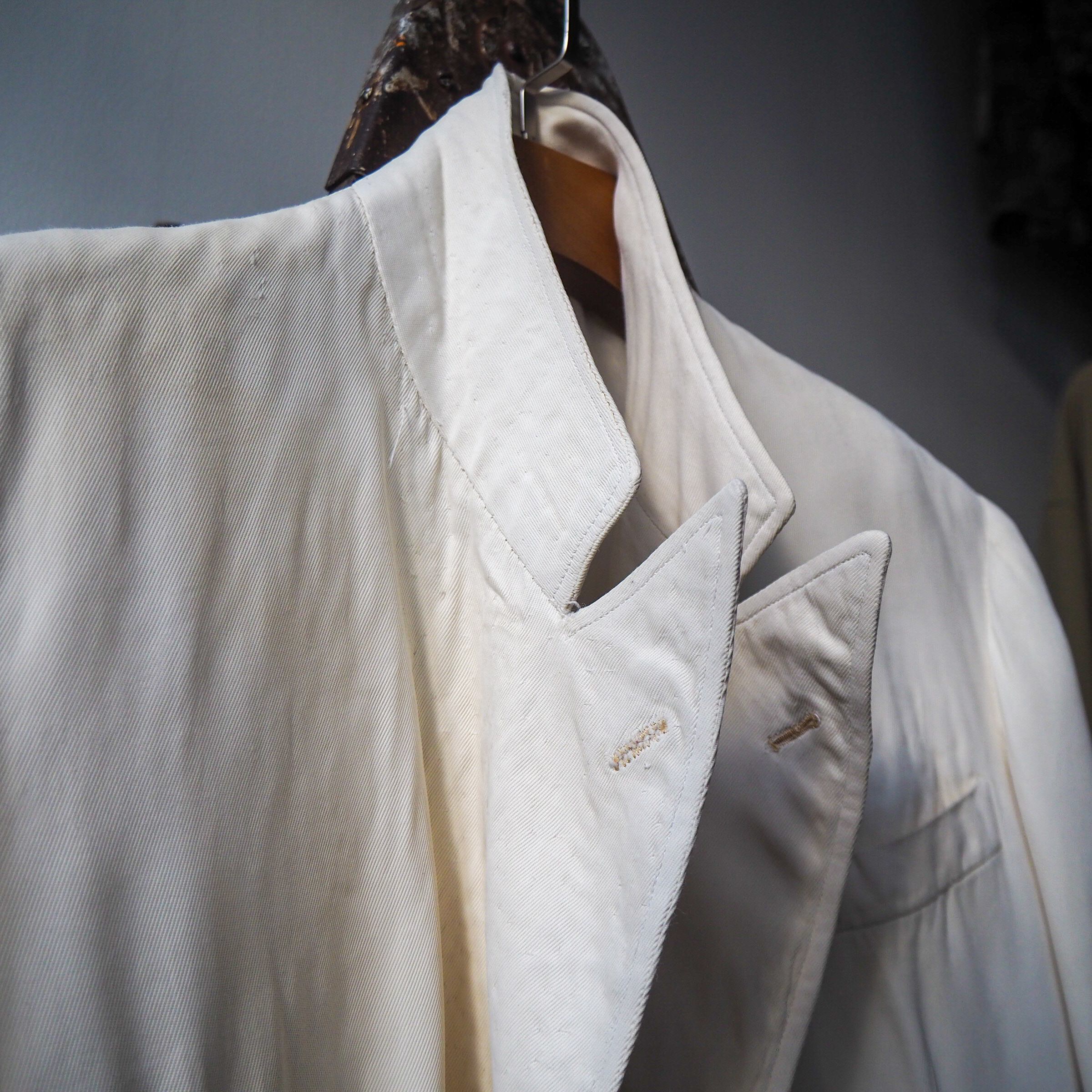 状態は襟内部、ライニングにお直しの跡。背面肩周りに見られるように各所に小さなキズがございます。また古くて繊細な生地、アクティブを想定しない設計ですので着用の際はどうぞお気をつけて。