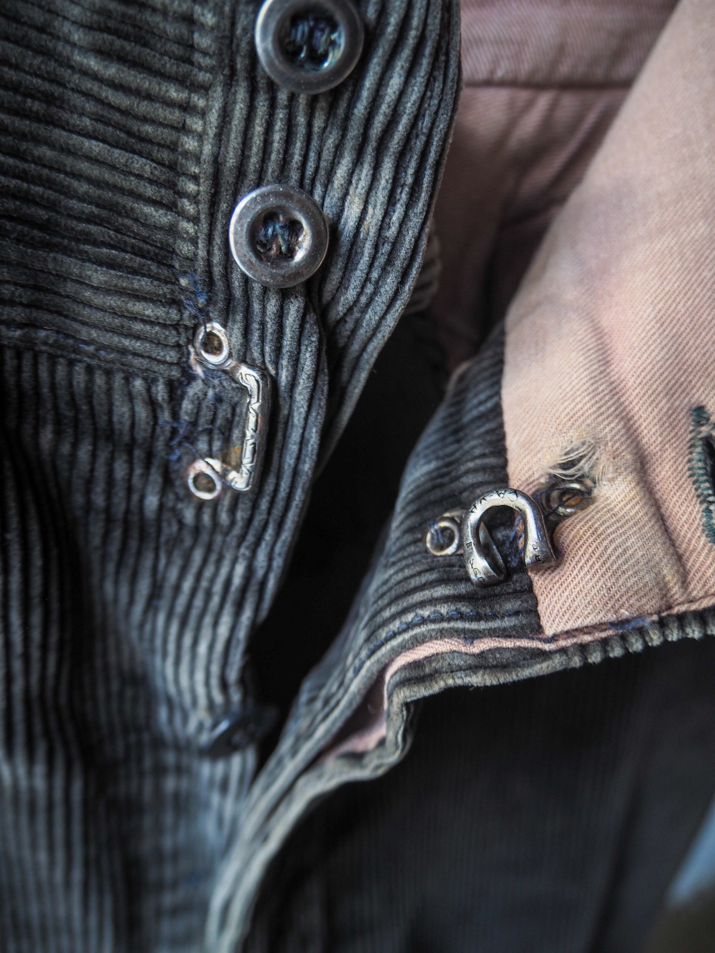 現在でこそ気軽に手に取ることの出来るようになったコーデュロイですが20世紀初頭では王朝に献上されるほど高級な生地だったそうで、やはり近年に製造されたモノと比べると当時の年代の”Corde-du-Roi” 生地は別格の質感、面構えです。