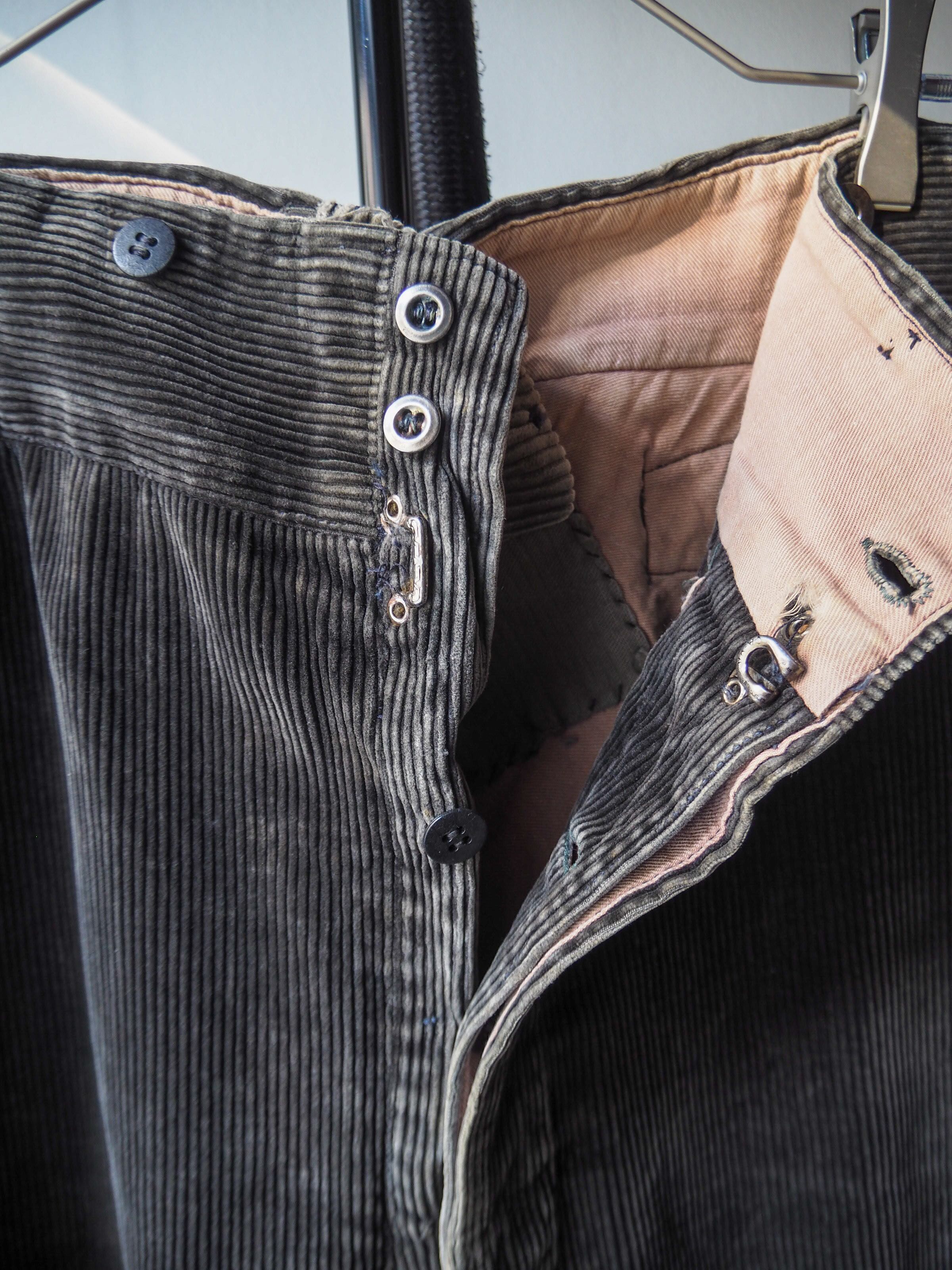 1930-40年代頃にフランスで着用されていたコーデュロイ生地のワークトラウザーズのご紹介です。