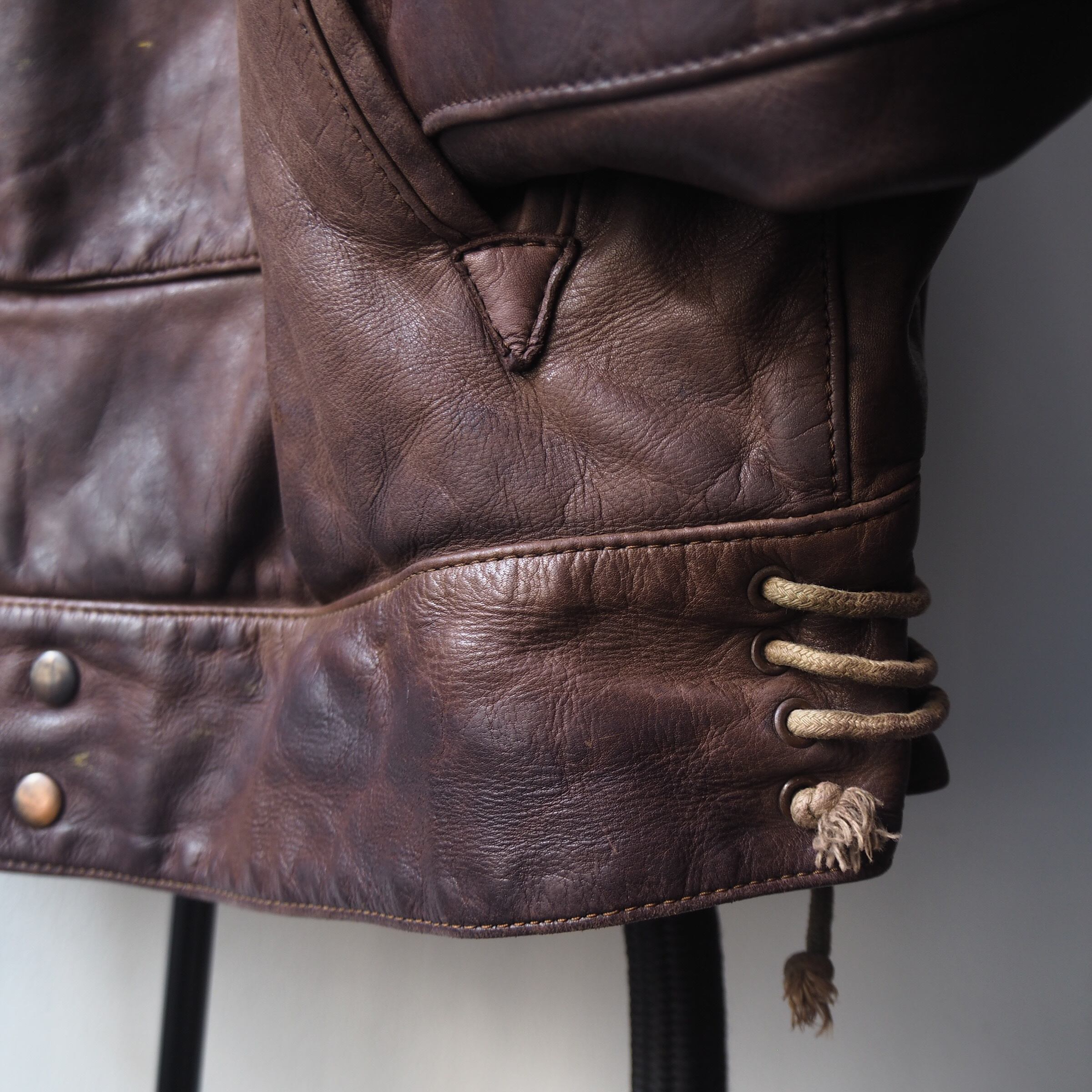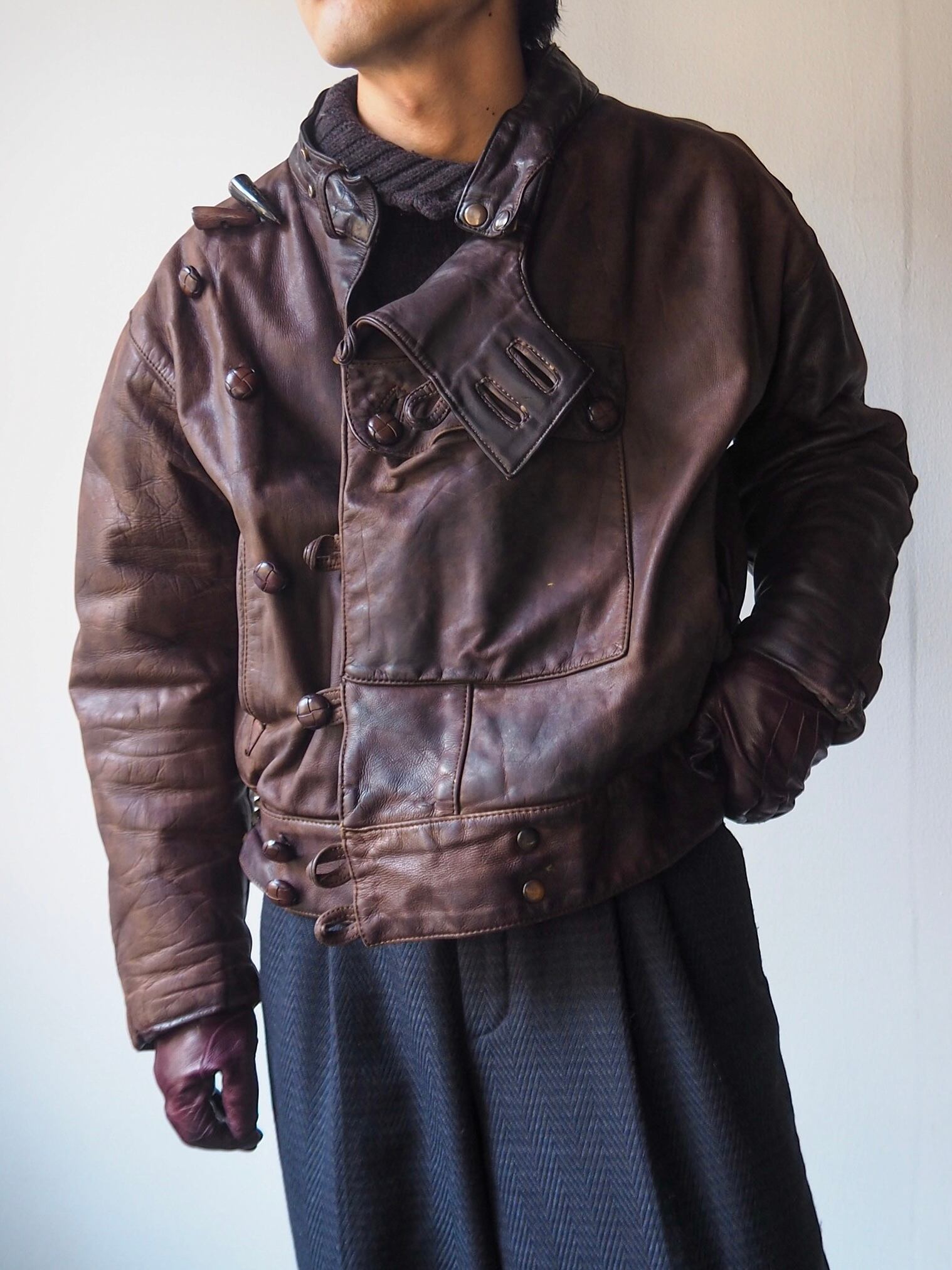 この手のモディファイはレザーの質、フィッティングが難しいところですがこちらはオールクリア。気負わずバサッと羽織って頂けます。