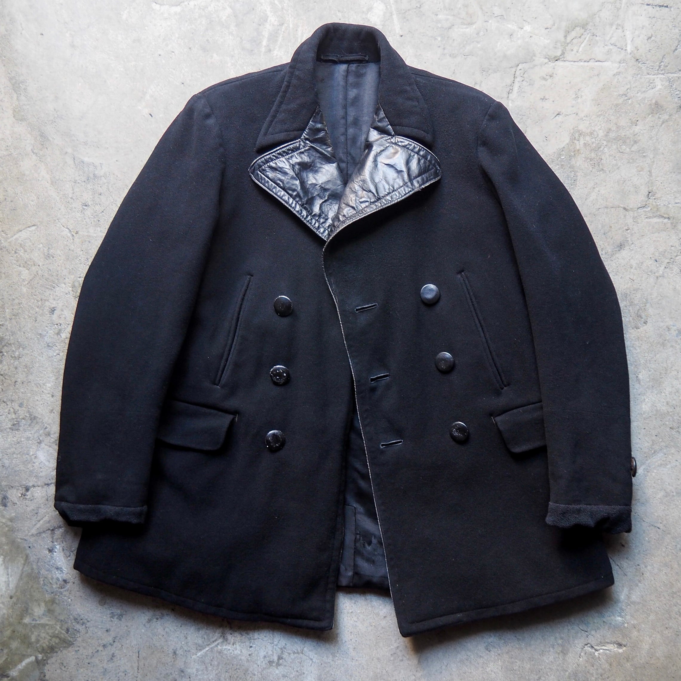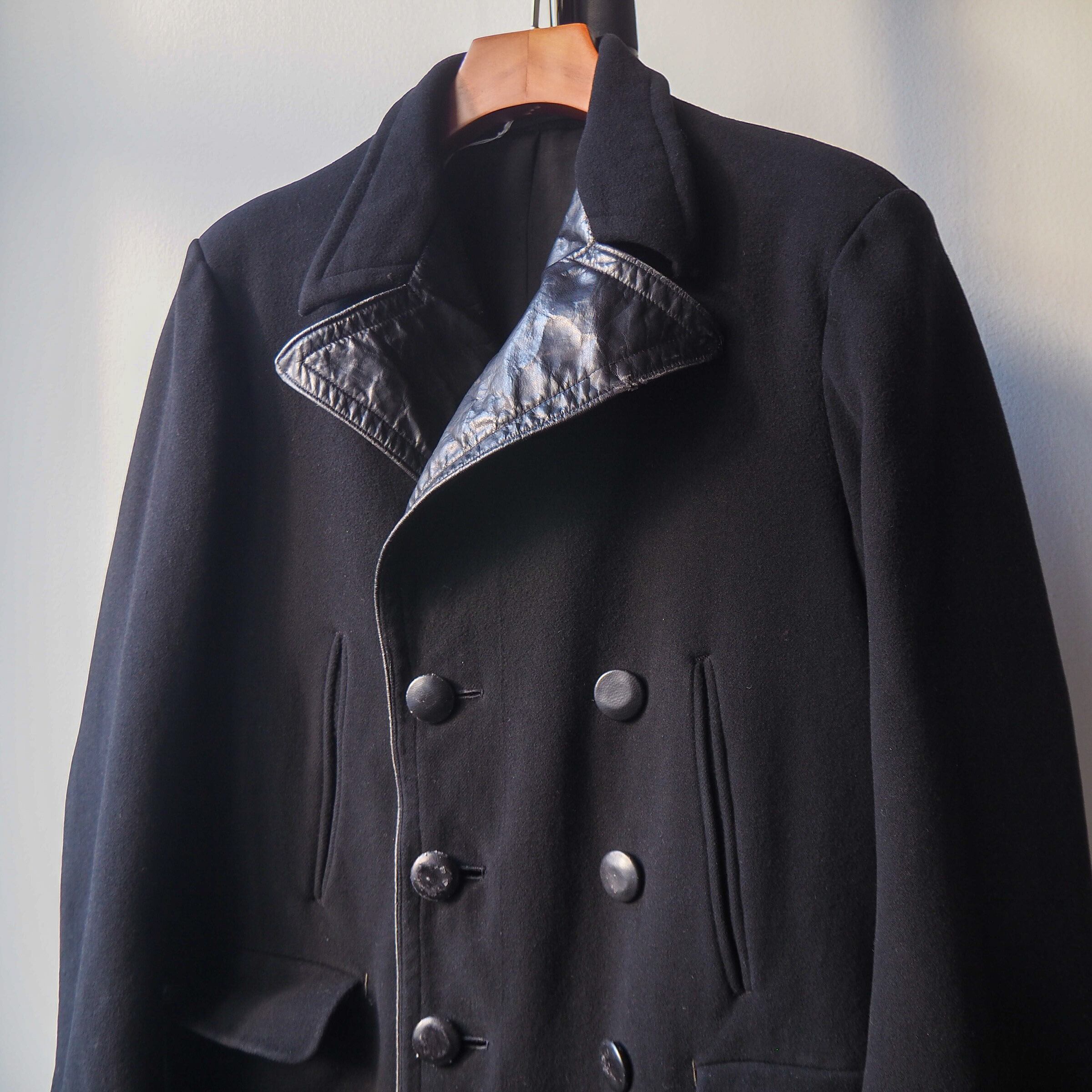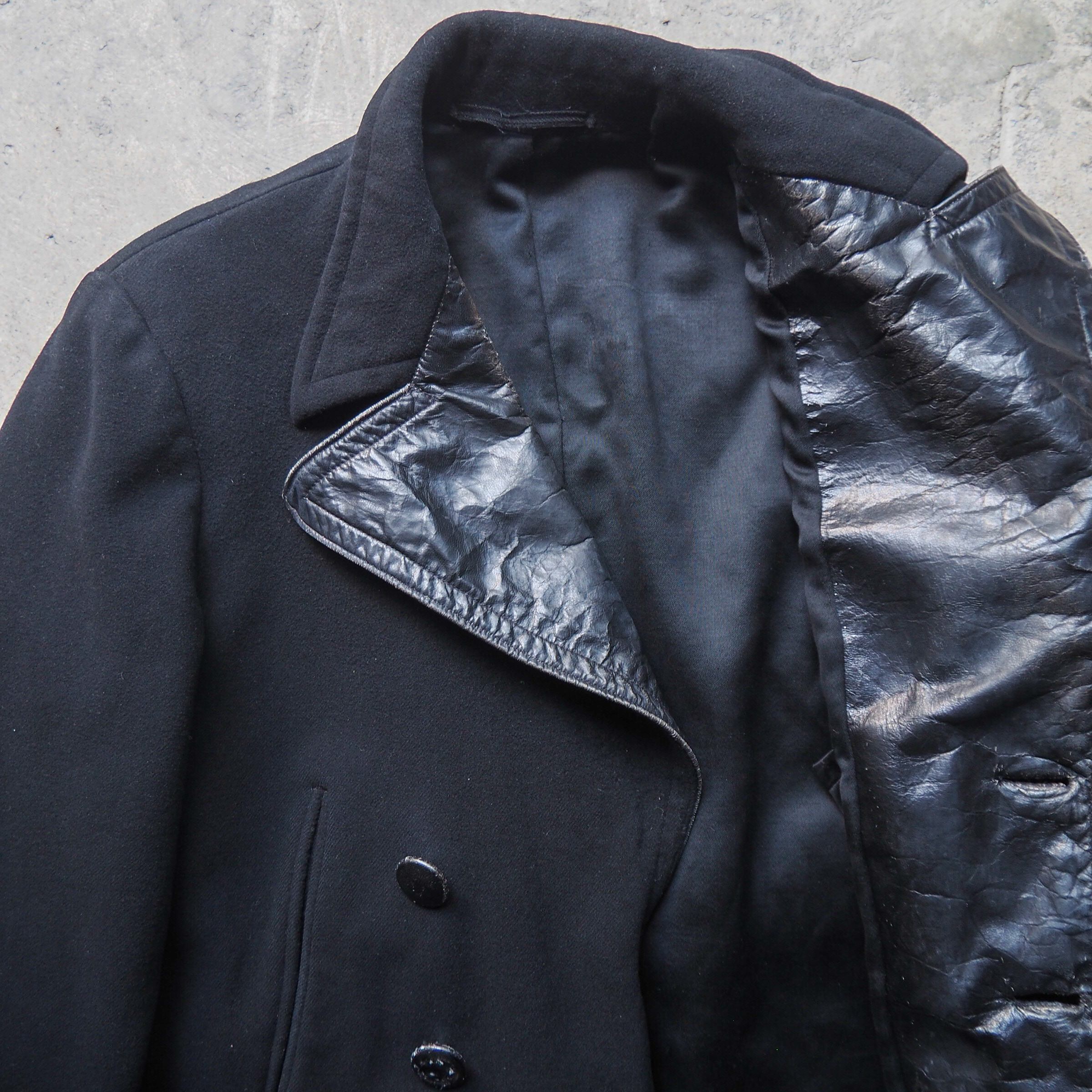1930s British Bespoke Leather Switching Double Breasted Wool Jacket