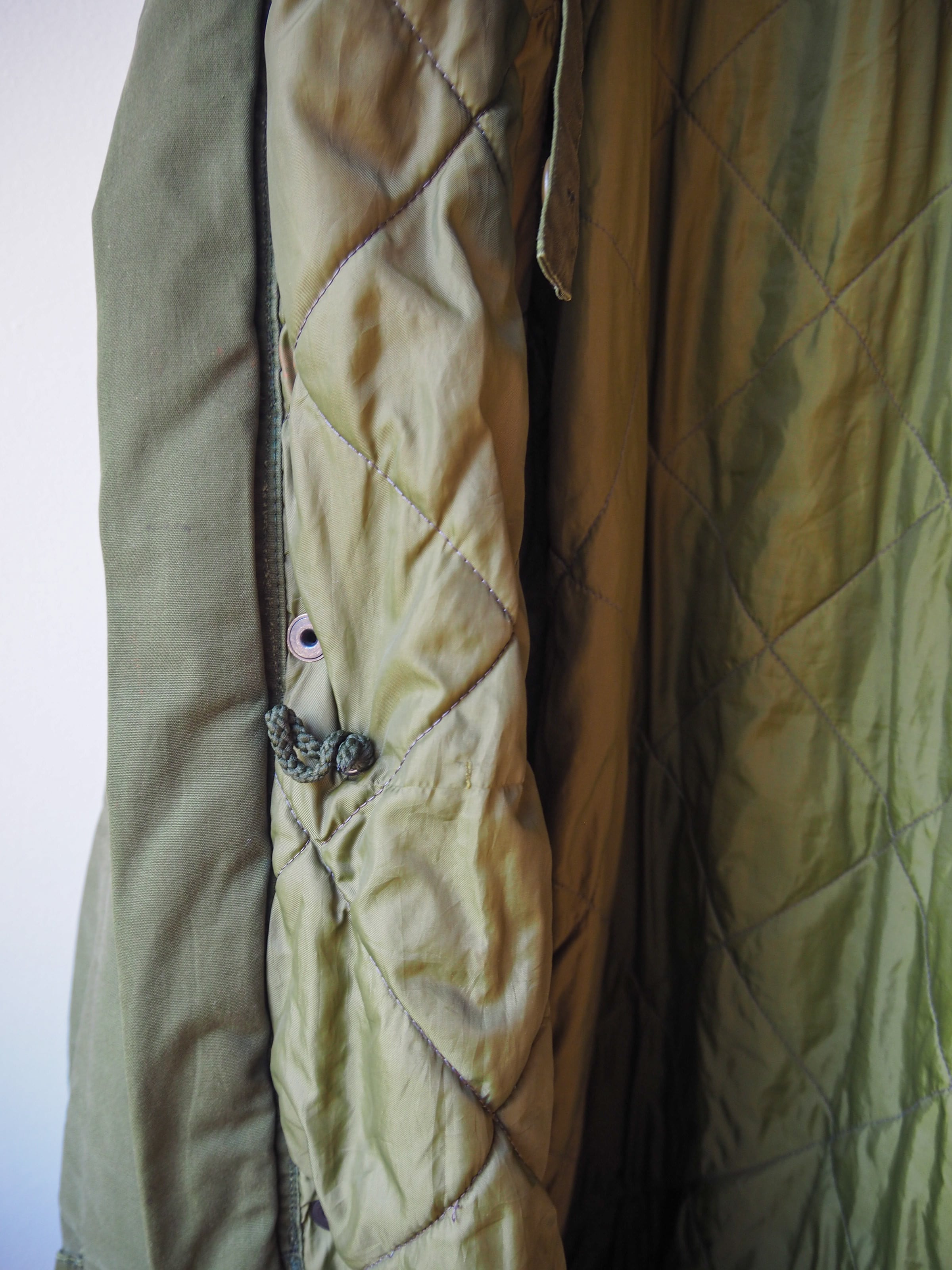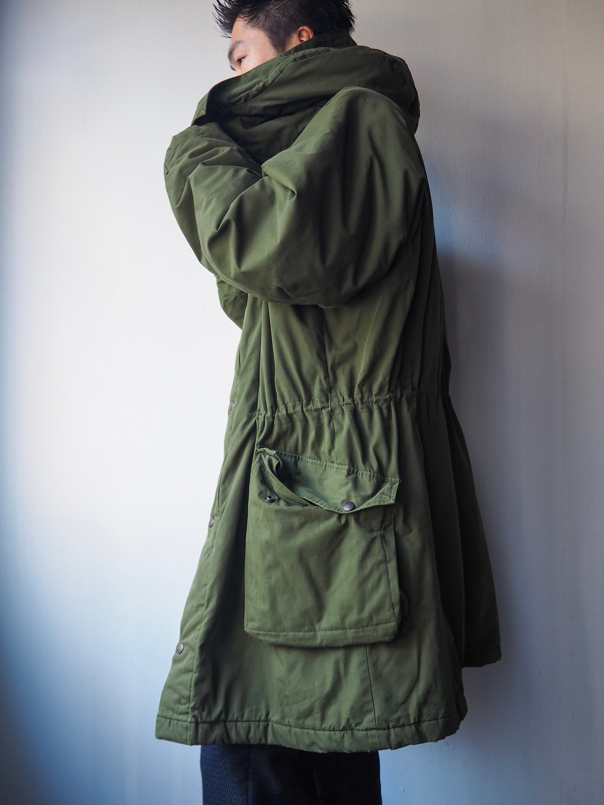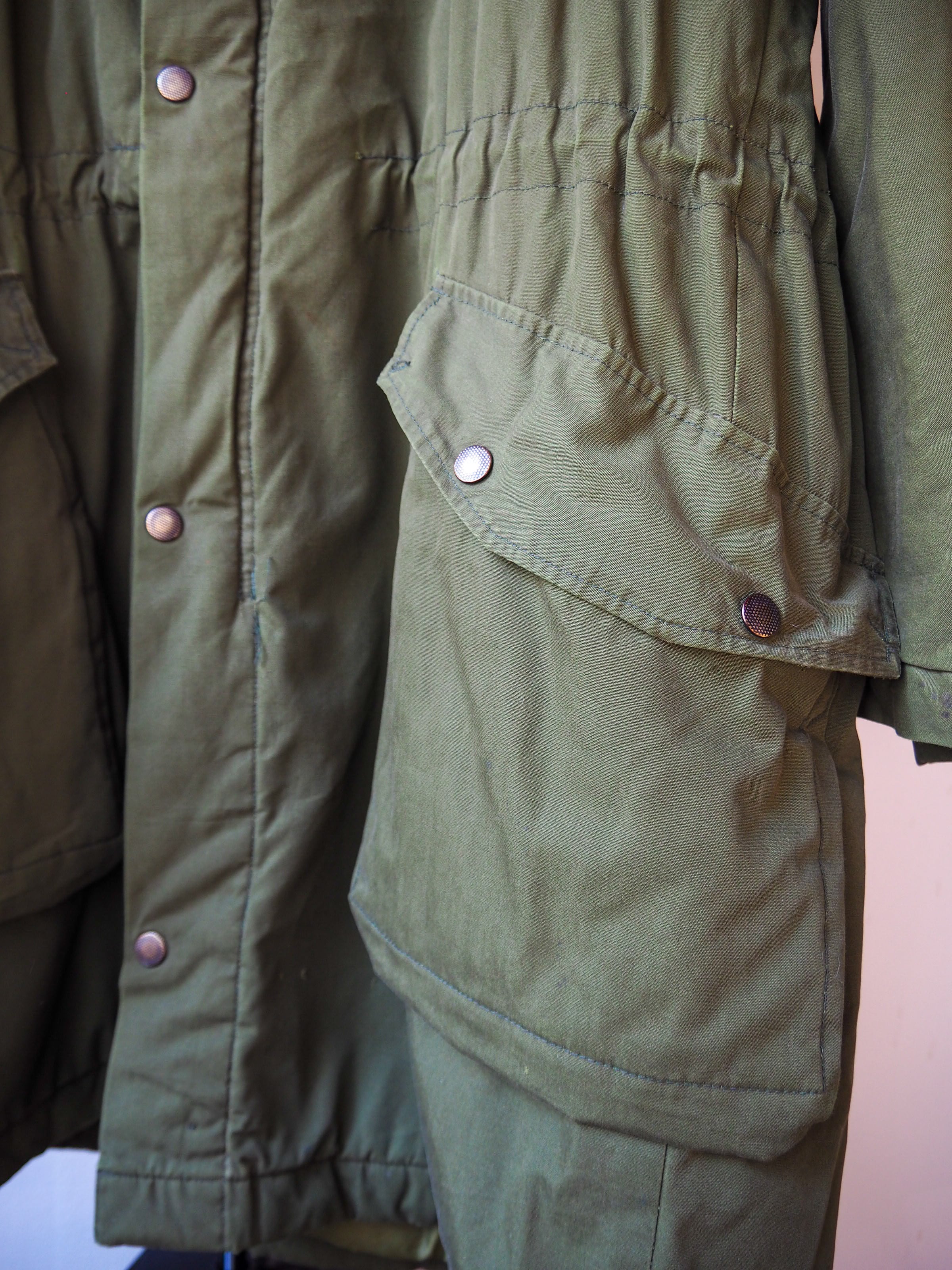 表地は高密度に織り込まれたコットンポリエステル素材のポプリン生地を採用。極寒地での着用を想定されたパーカーですのでポリエステルの中綿にはキルティングが施されており、防寒性に非常に優れた作りとなっております。日本の気候であれば冬にはこれ一枚で保温性を確保できる最高峰の防寒性を誇るヘヴィーアウターです。