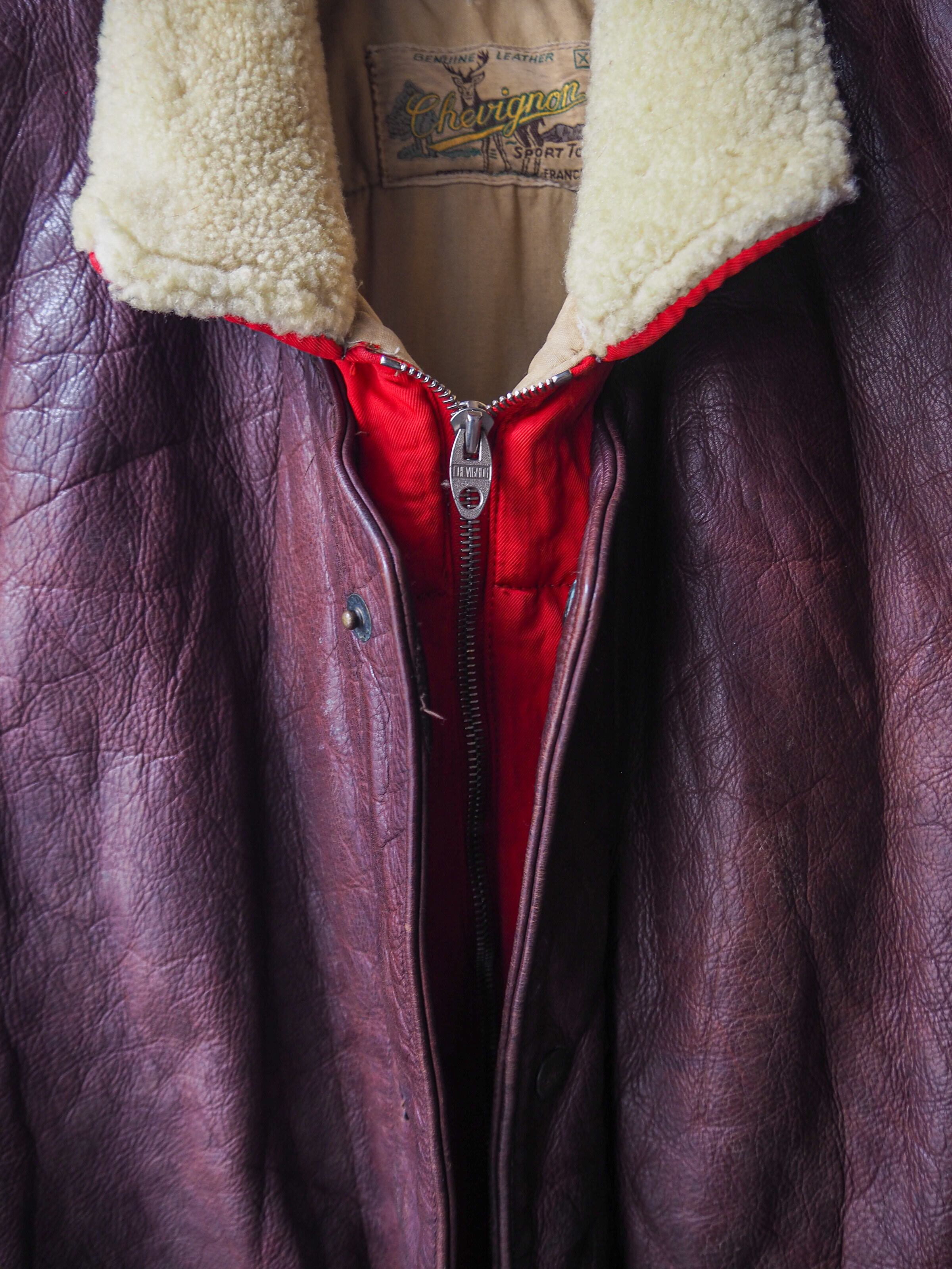 グッドオールドなコットン生地にレザーのシェル。襟周りにはシープムートン。鮮烈な赤がとにかく格好良い。ロッキーマウンテンを思わせる背面のバックヨークも良い。70年代フランス、まさしくその辺のアメリカの流れに影響を受けて製作されたものかと思います。