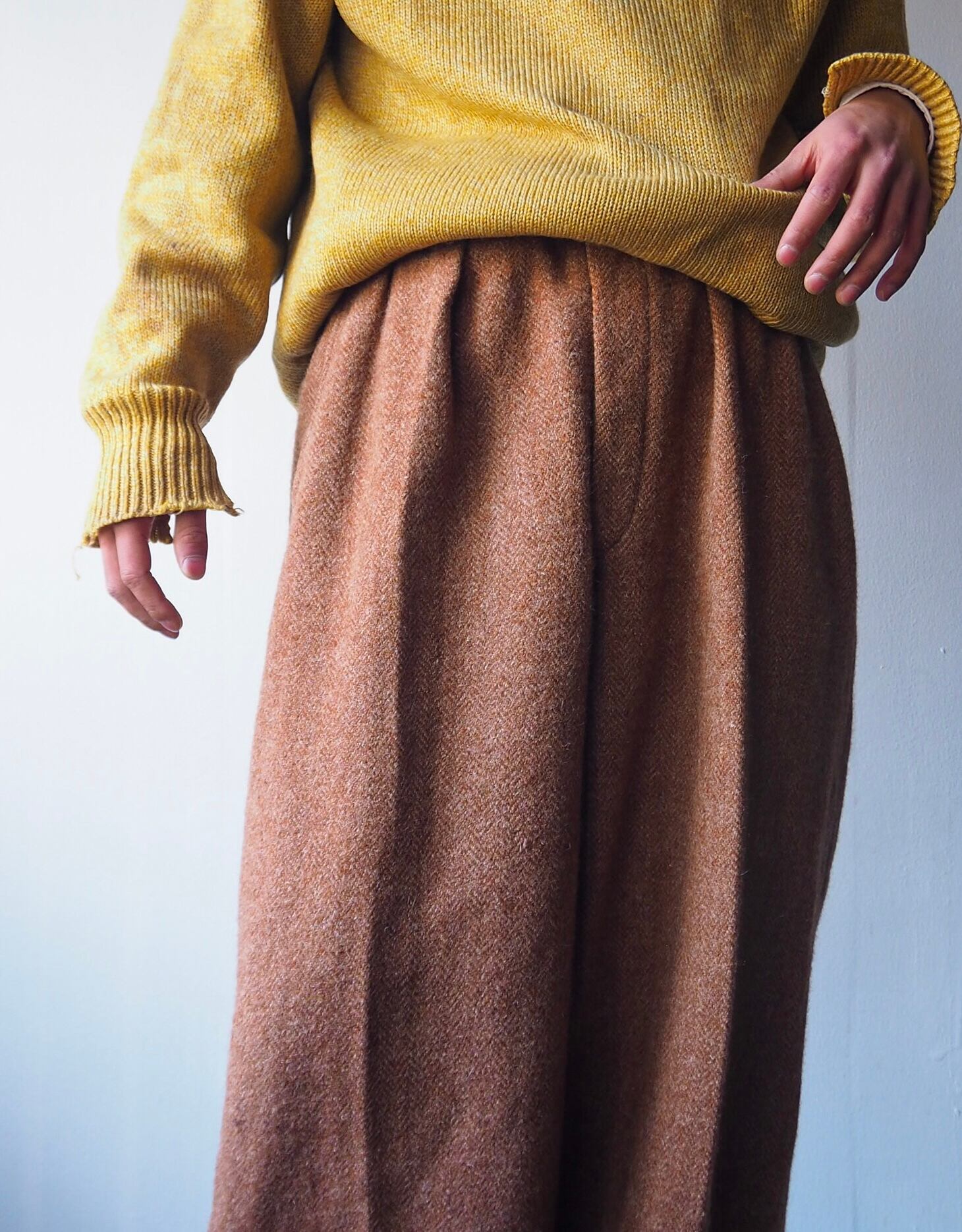 ヘリンボーン状にふんわりと織り込まれた肉厚でソフトなウール生地。