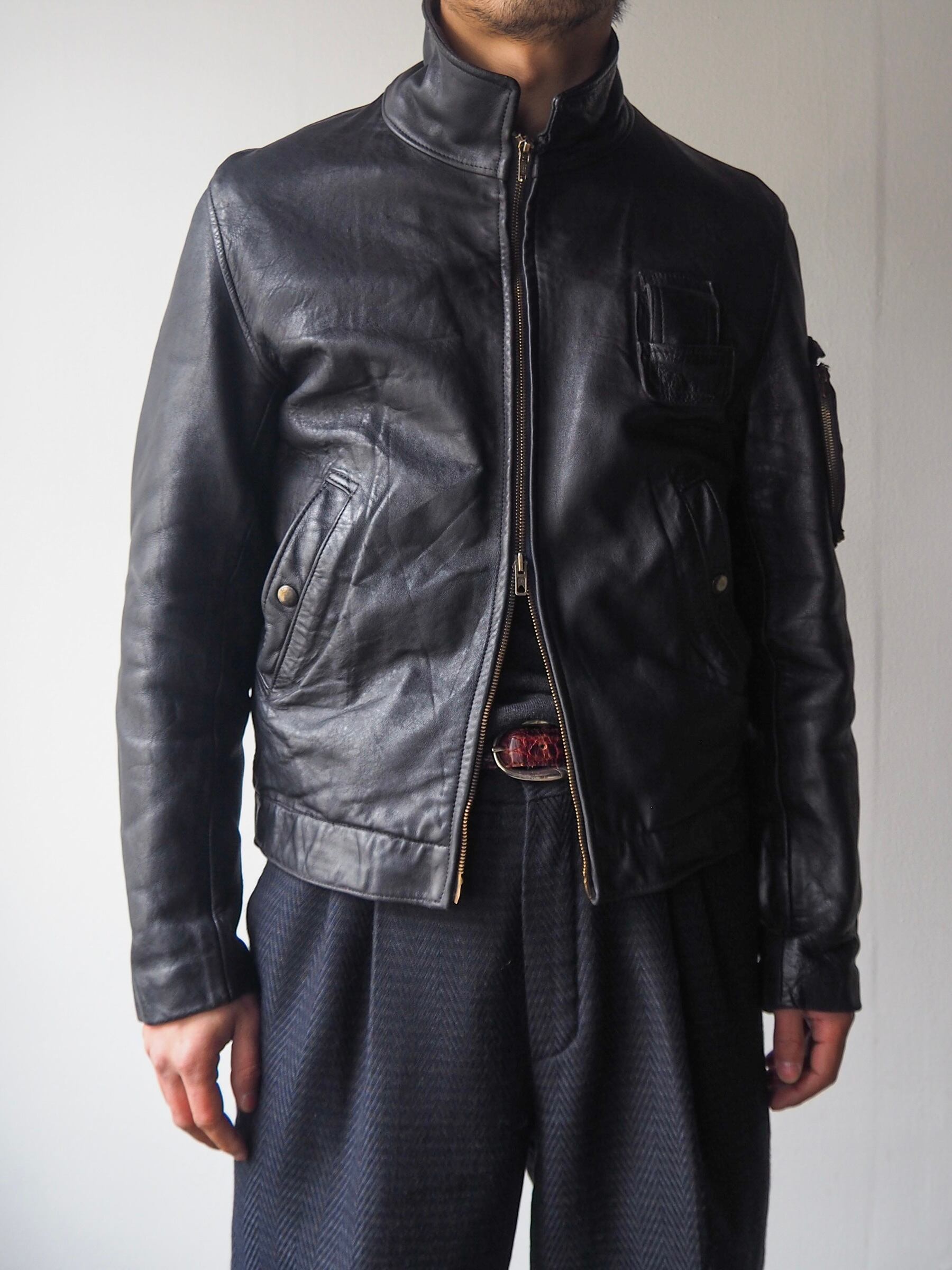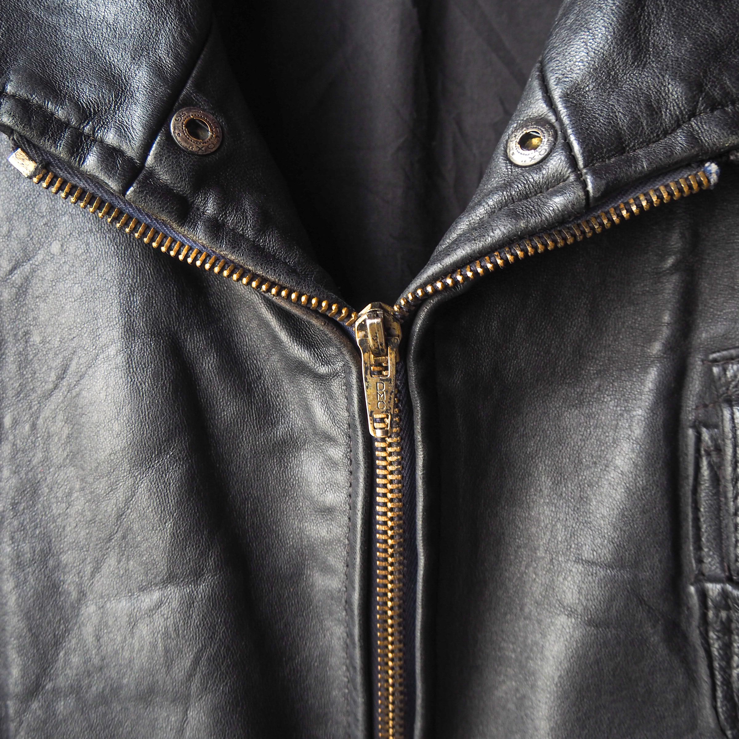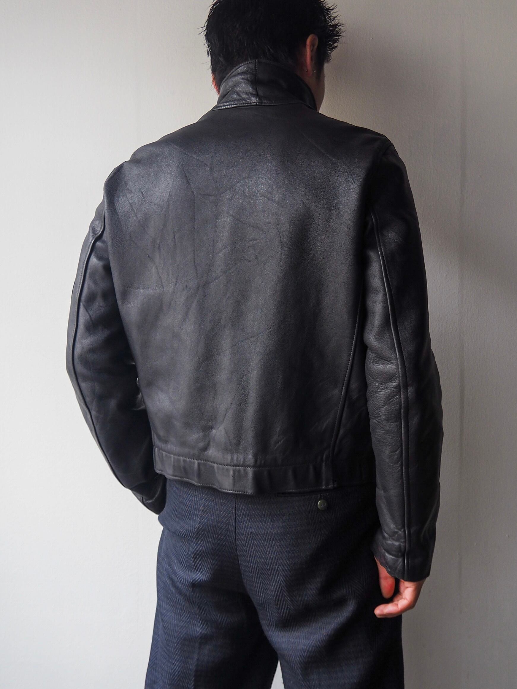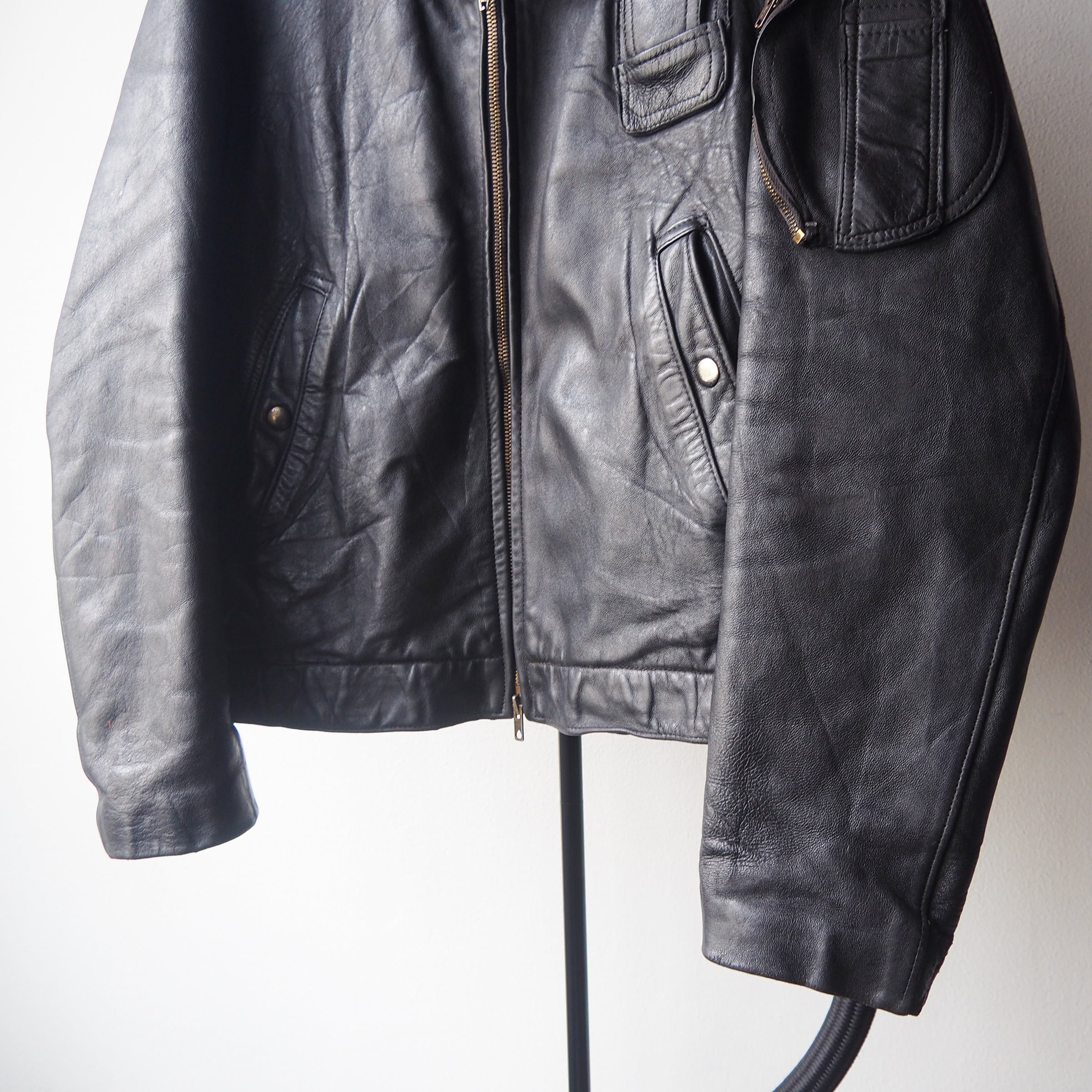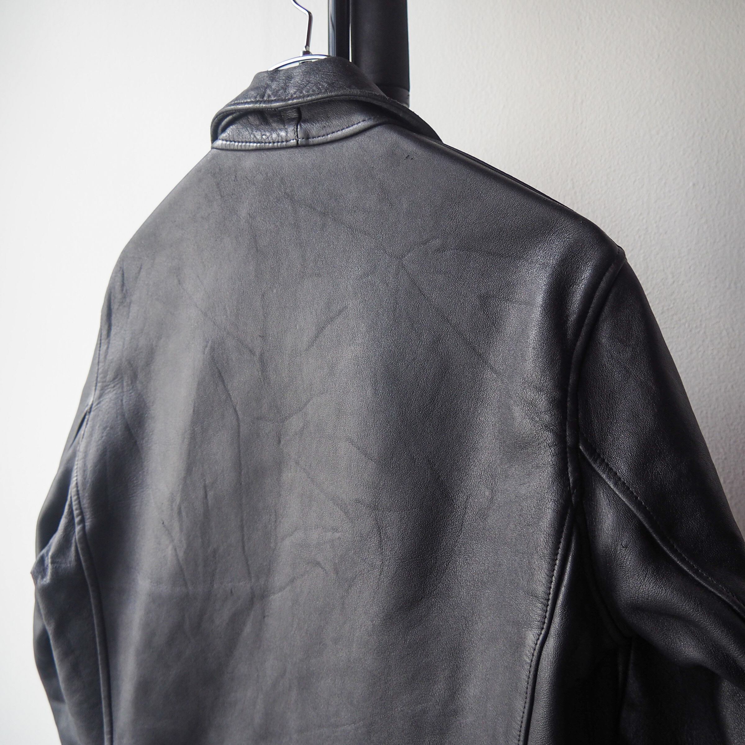ヴィンテージレザージャケットに特有の細かなキズがございますが全体を通して劣化の少ないグッドコンディション。こちらで一度クリーニングにかけたのちオイルアップ等メンテナンスを行っておりますのでこれからも末長くお付き合いして頂けるかと思います。