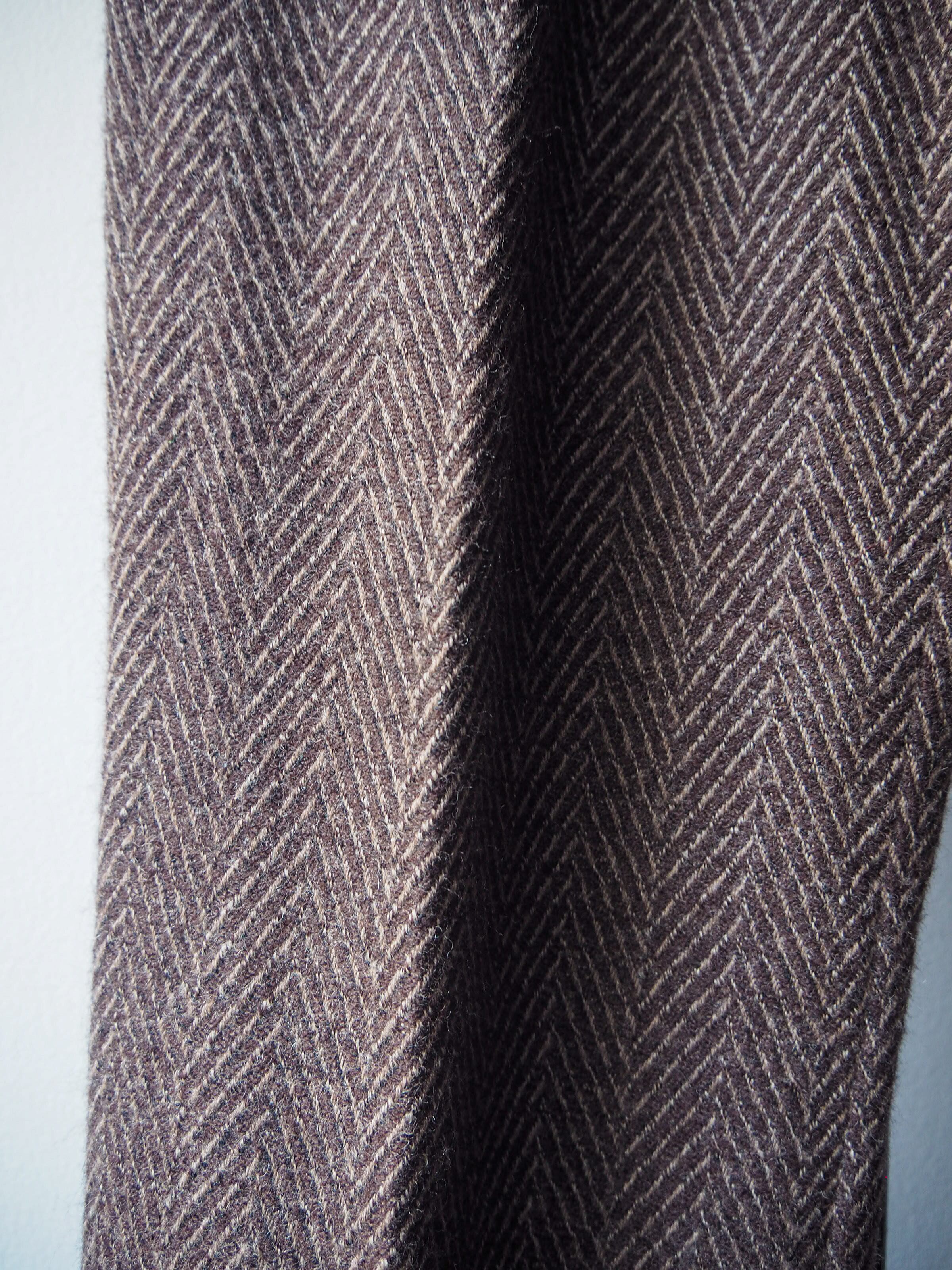 濃いブラウンをベースにHBT状のベージュのアクセントが入ることで絶妙な色調のバランスがとられたイタリアらしいとても良い生地です。