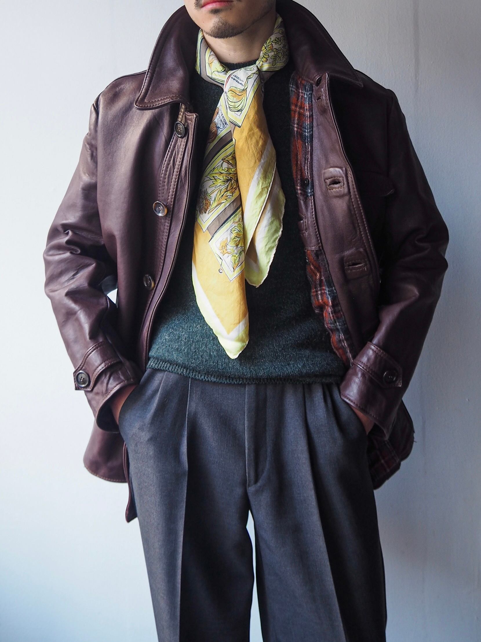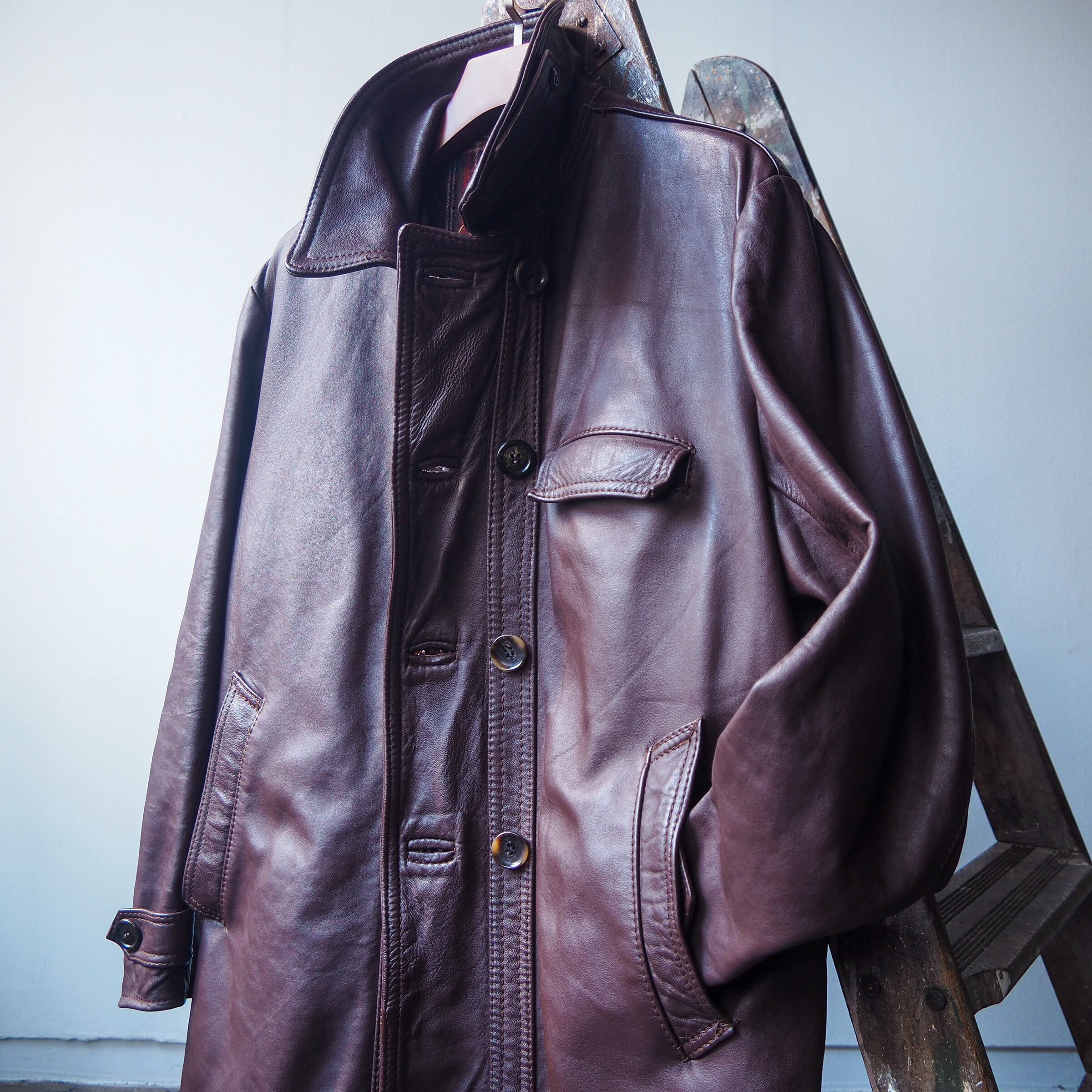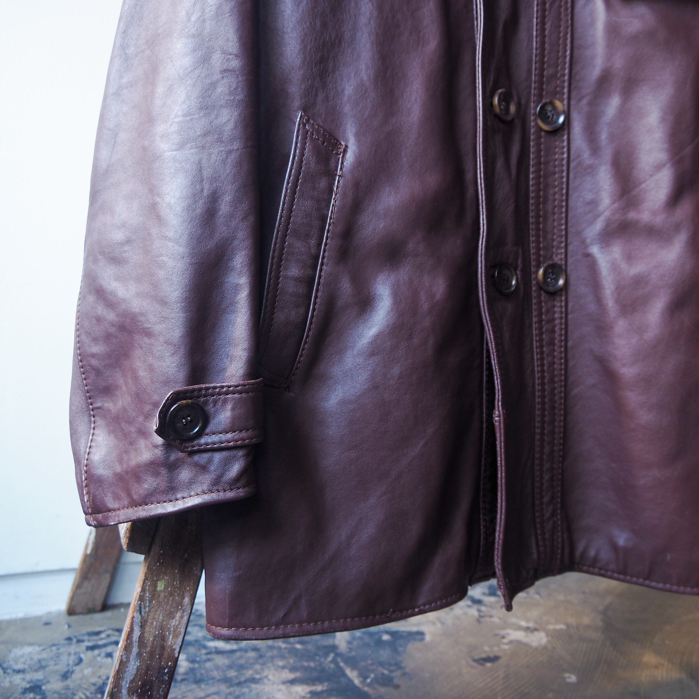 1970年代頃にフランスで着用されていたダブルブレスト仕様のレザージャケットのご紹介です。