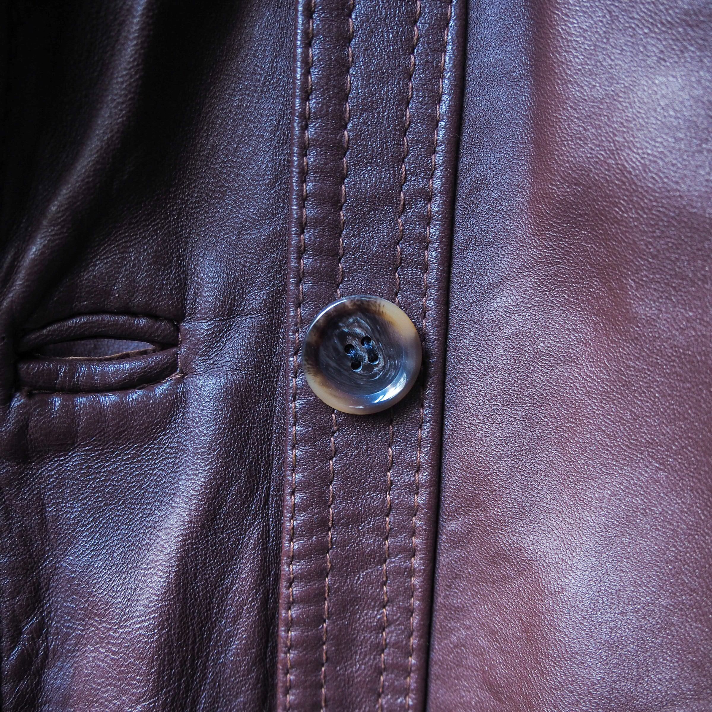 閉めたスタイルももちろん良いですが、フロントのボタンを外して開けて着た時に時折りチラッと見える裏地の華やかさは、無骨なレザーの雰囲気を鮮やかに魅せてくれます。タグの面も良いですね。