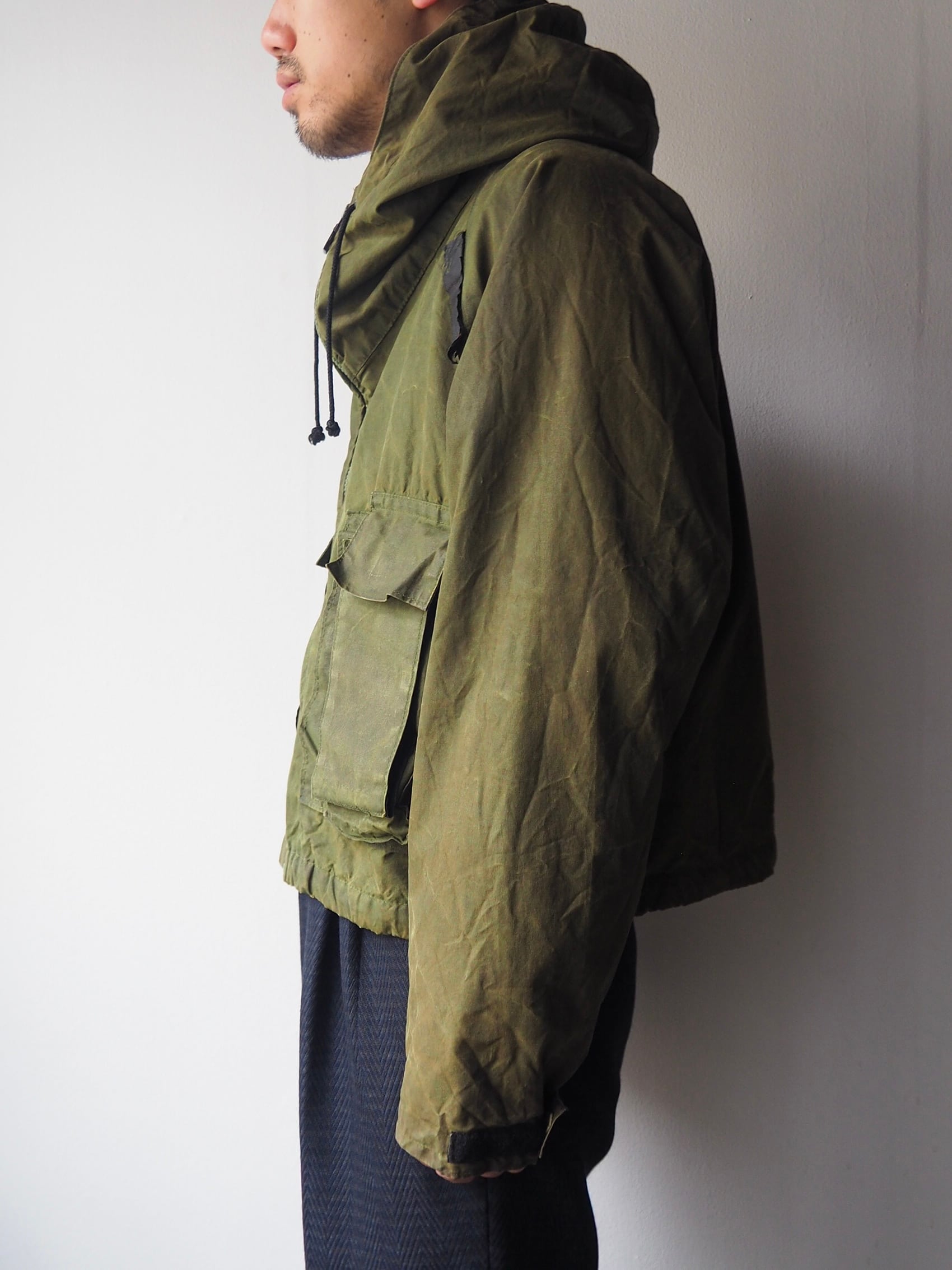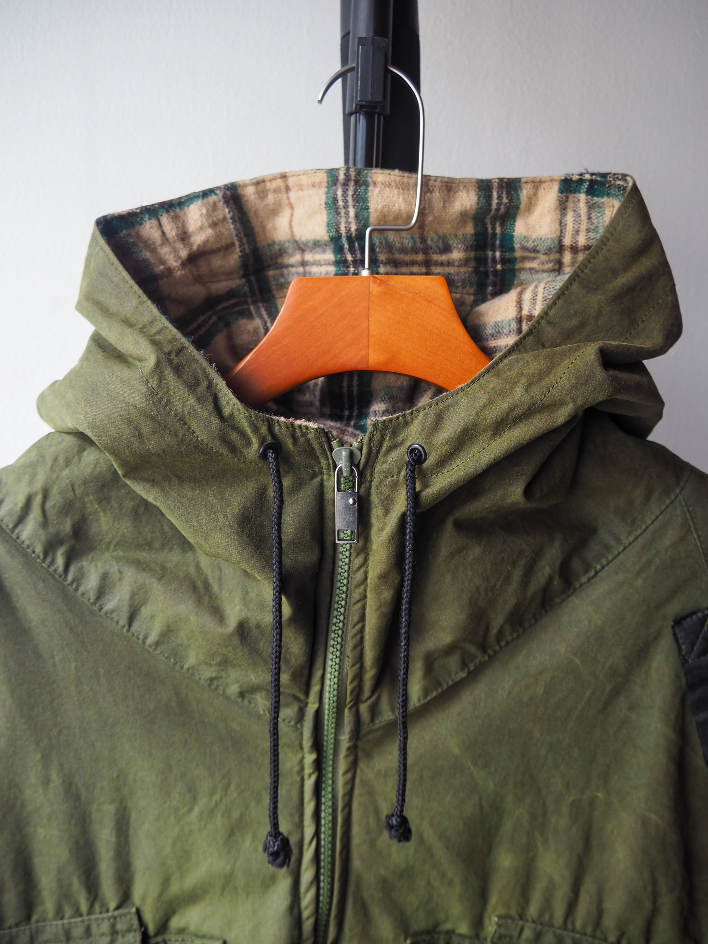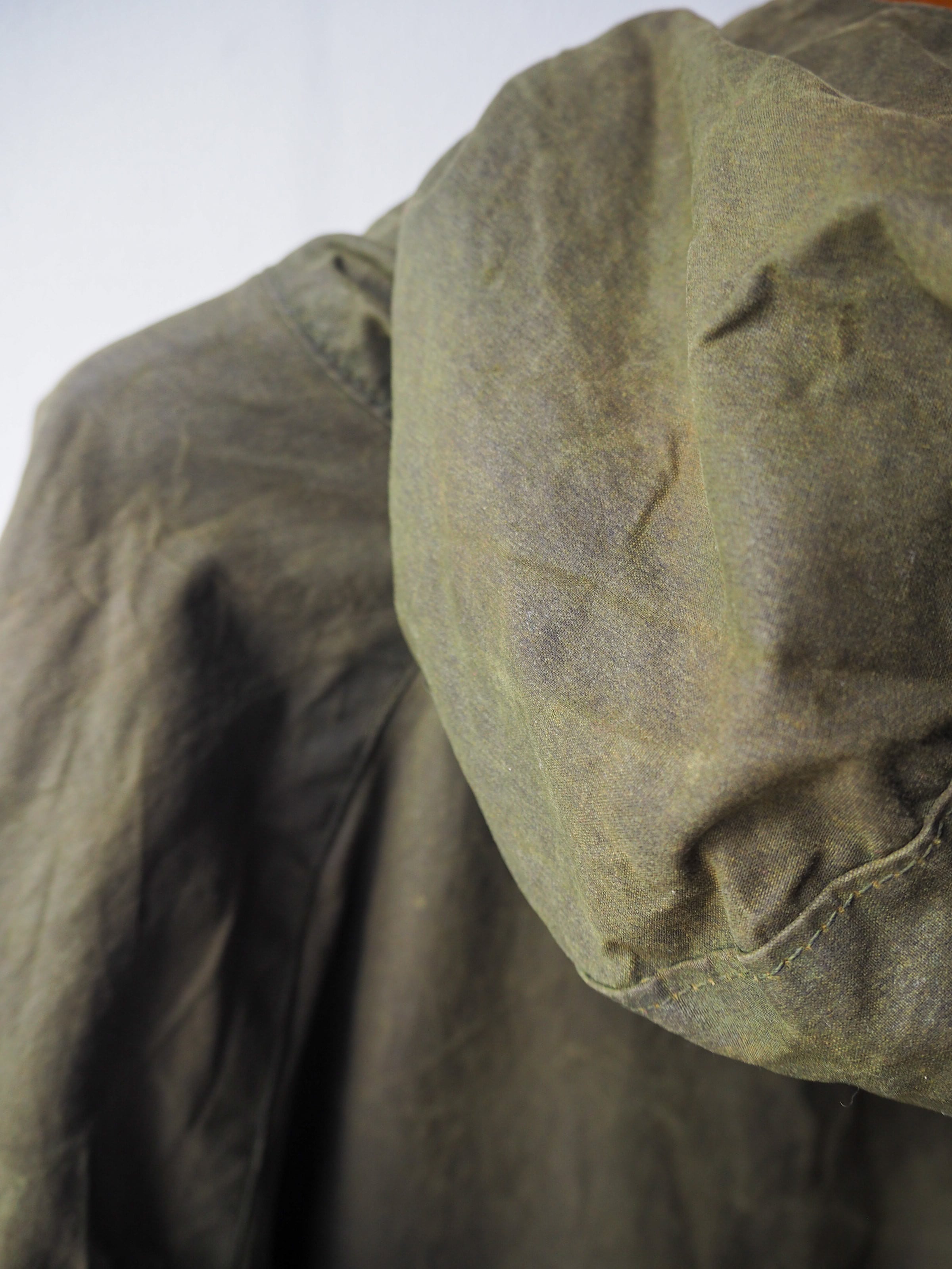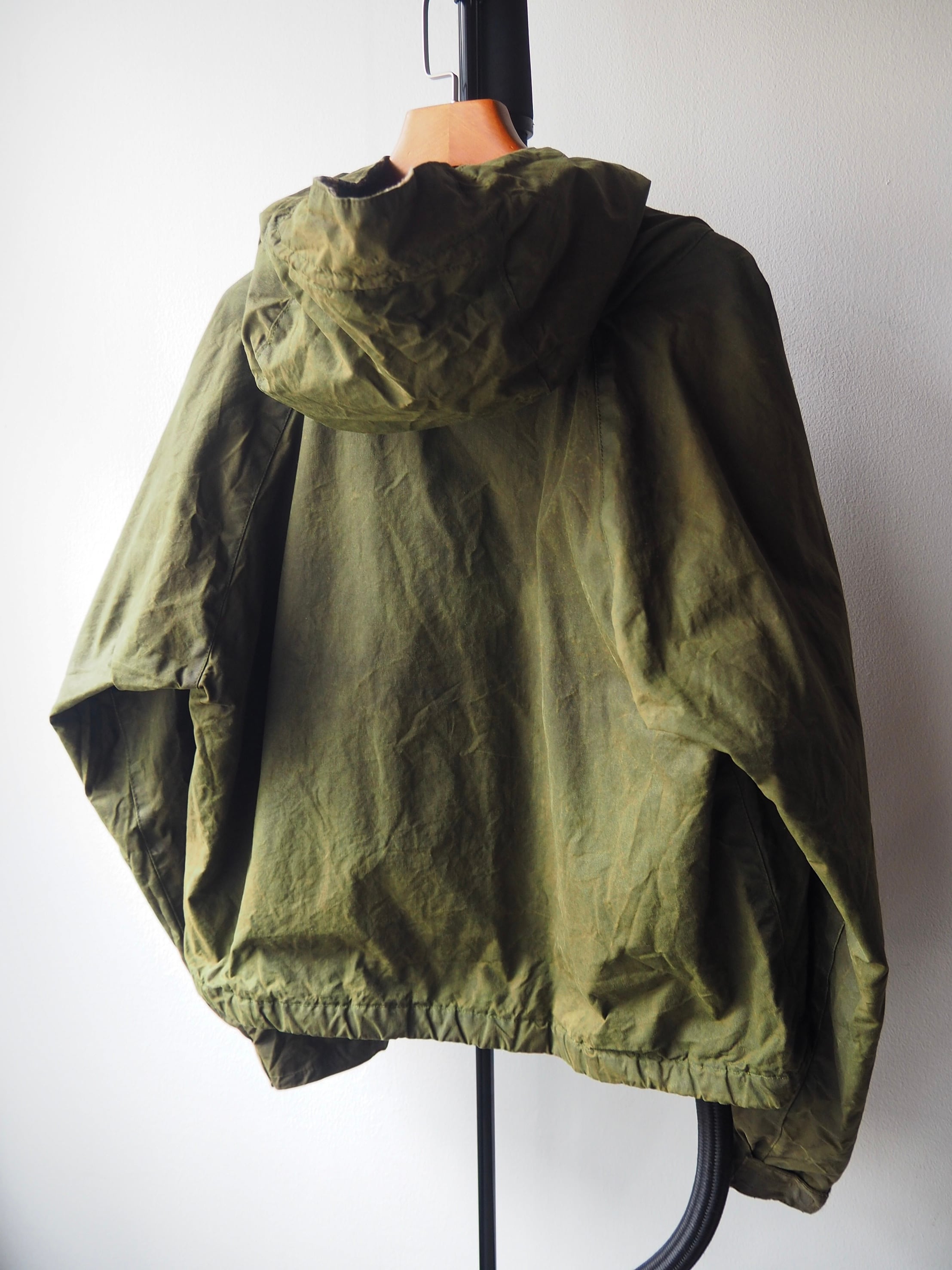 ボディは防水性、防風性向上のためオイルド加工が施されたワックスドコットンを採用。経年により程よくオイルが抜けムラのある表情が格好良いです。